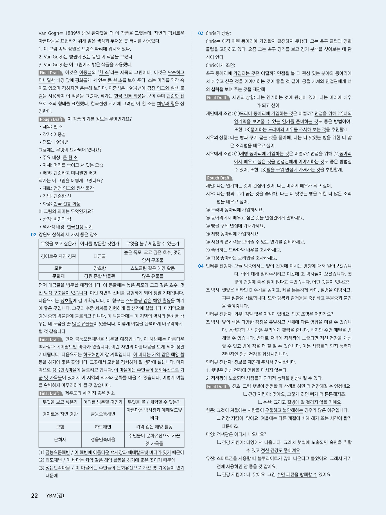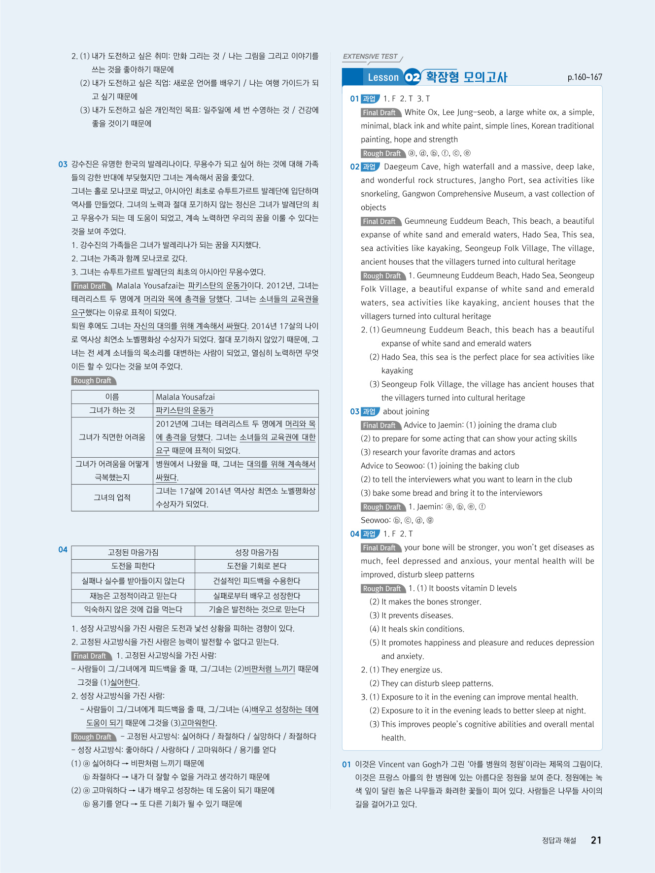 - 언어 기능별 다양한 평가 방법을 제시하여 내신 평가, 서술형 수행평가까지 대비 가능