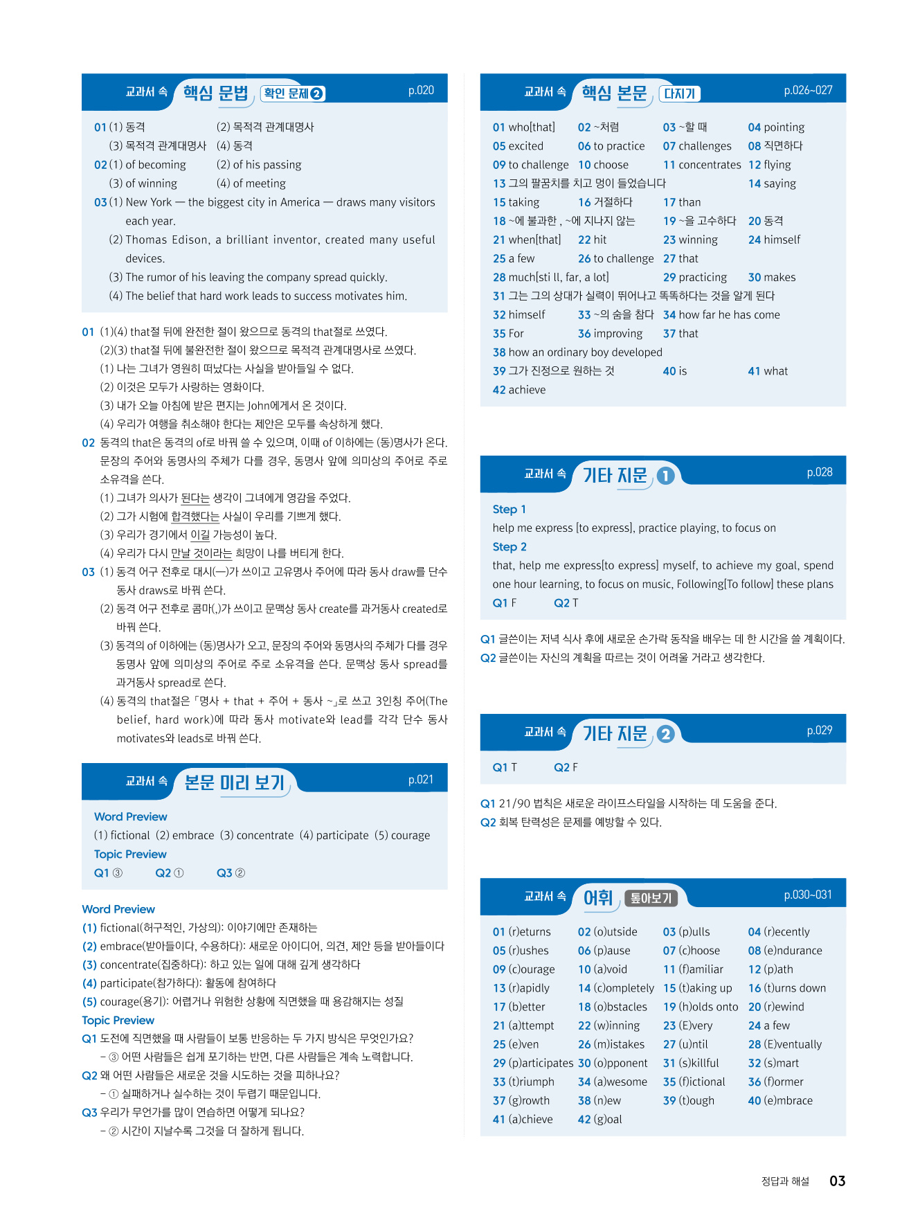 2. 교과서 기본 확인 문제 : 어휘, 문법 영역 기초 실력 확인 문제 수록, 주요 내용 자기주도 학습