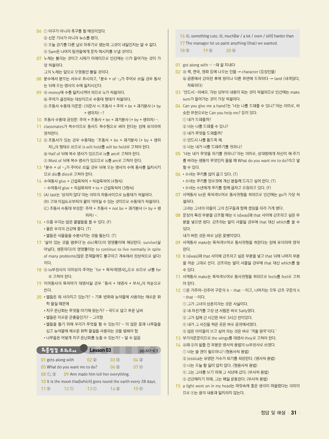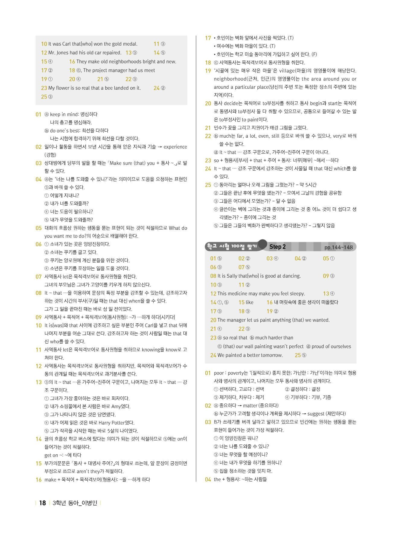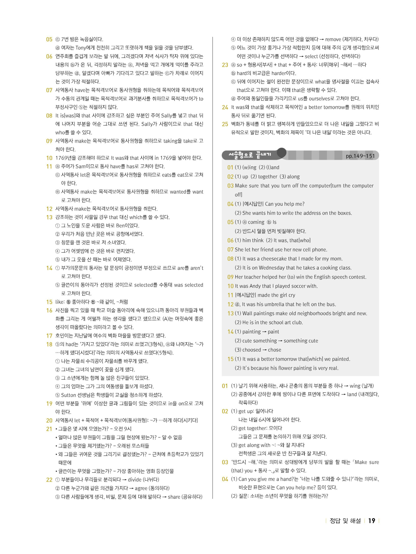- 시험에 나올 만한 교과서 핵심 문장 복습 코너 수록