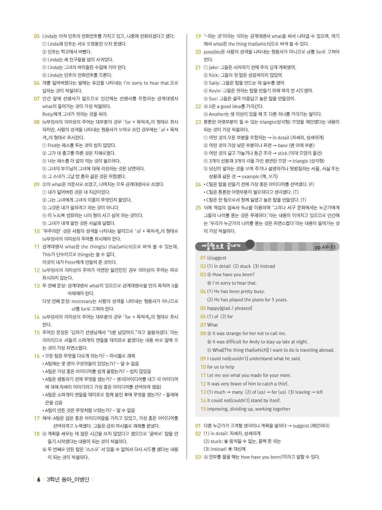 - 시험에 나올 만한 교과서 핵심 문장 복습 코너 수록