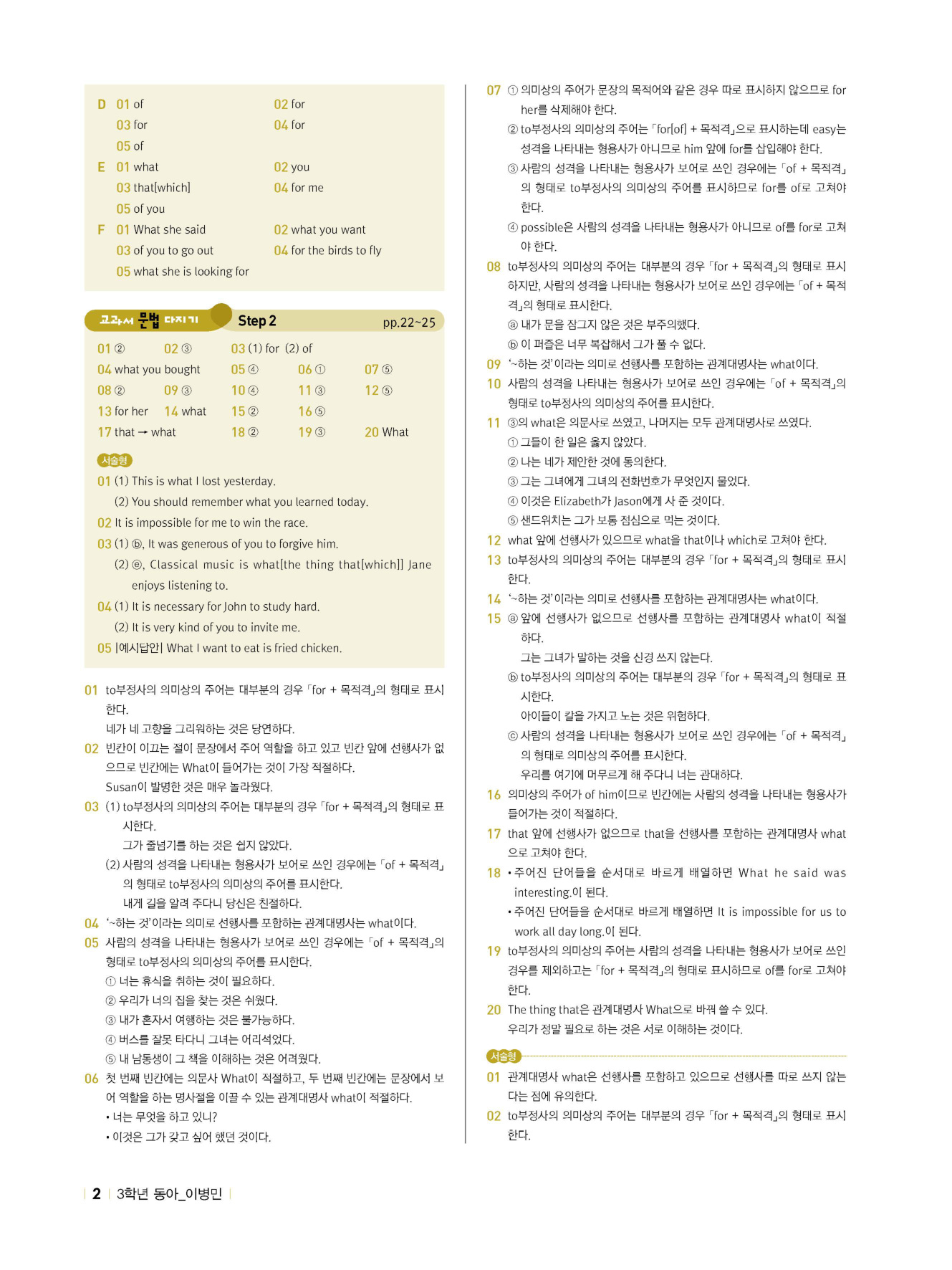 - 교과서 문법 다지기 : STEP 1 & 2 & 서술형