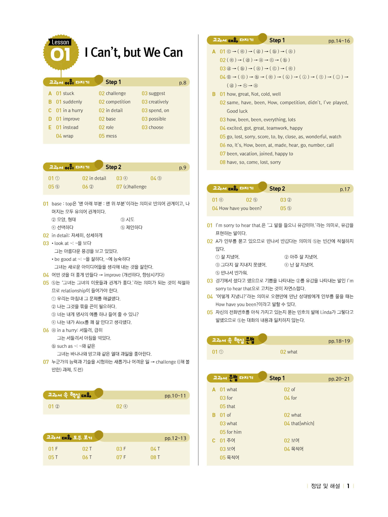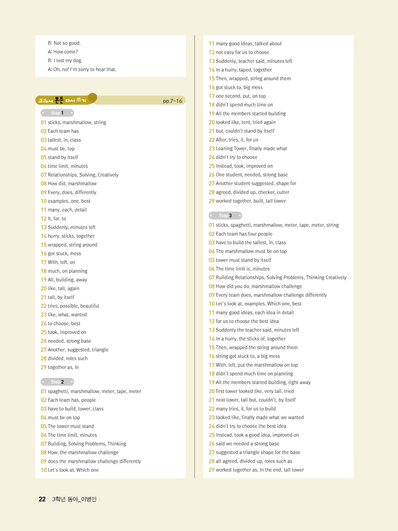 - 교과서 대화 다지기 : STEP 1 & 2