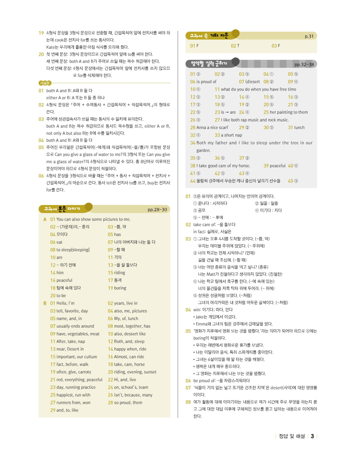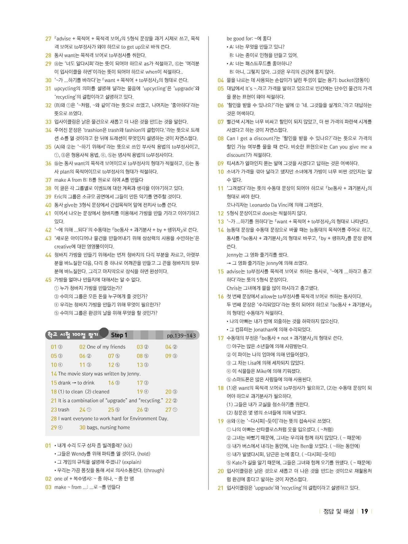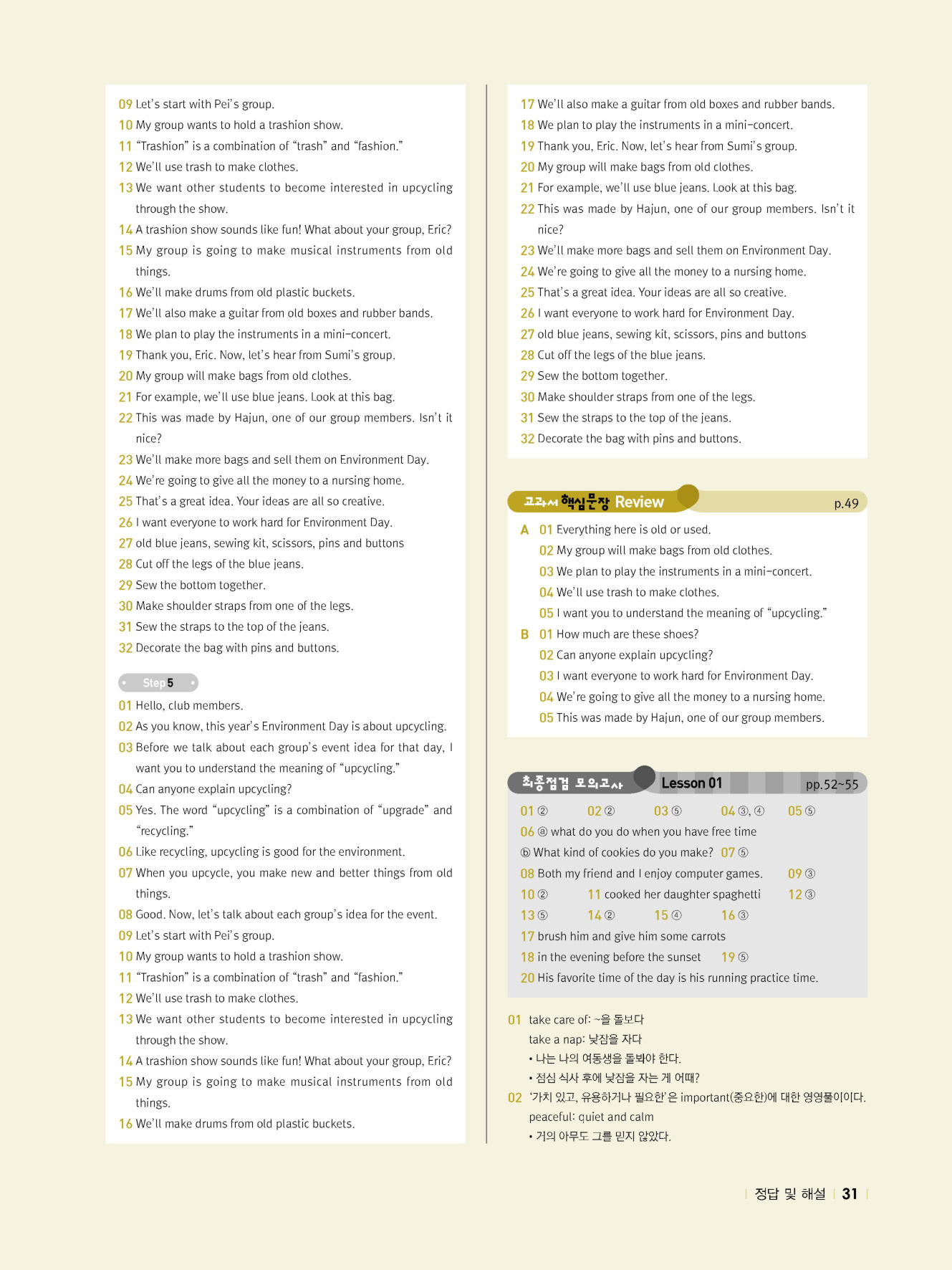 - 시험에 나올 만한 교과서 핵심 문장 복습 코너 수록