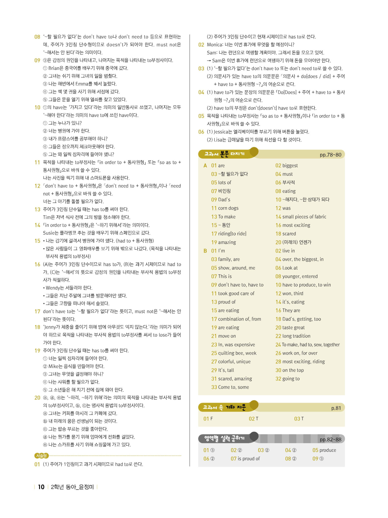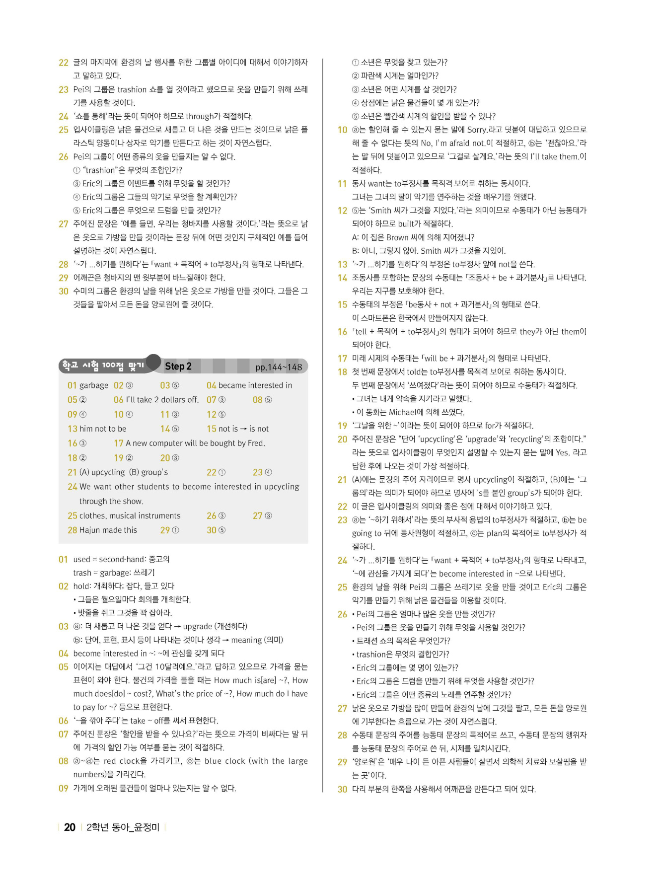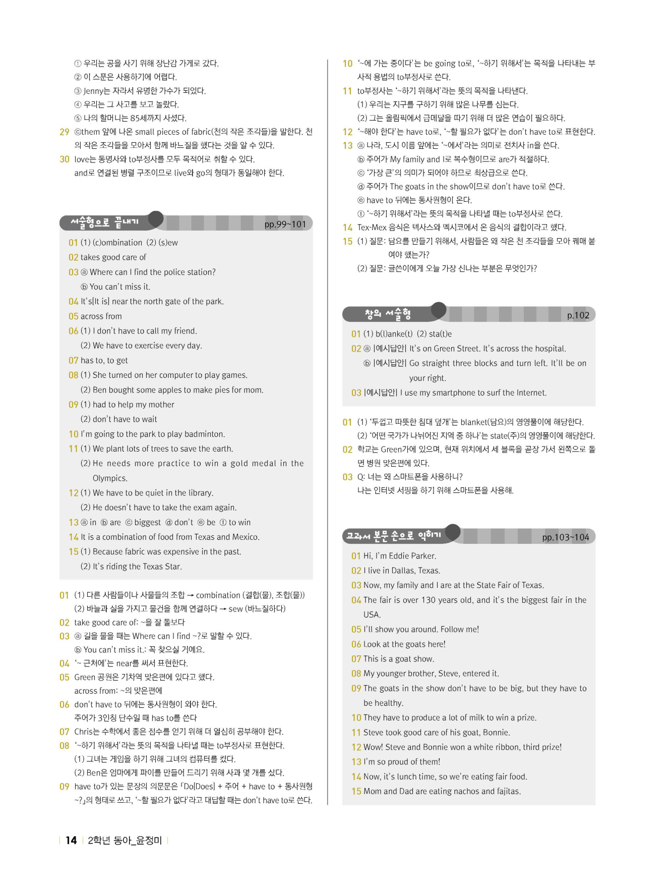 - 시험에 나올 만한 교과서 핵심 문장 복습 코너 수록