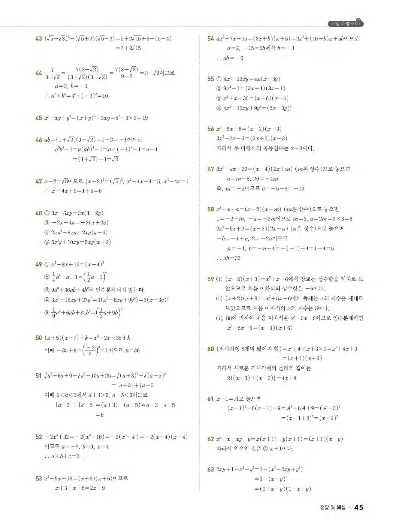 Ⅱ. 다항식의 곱셈과 인수분해