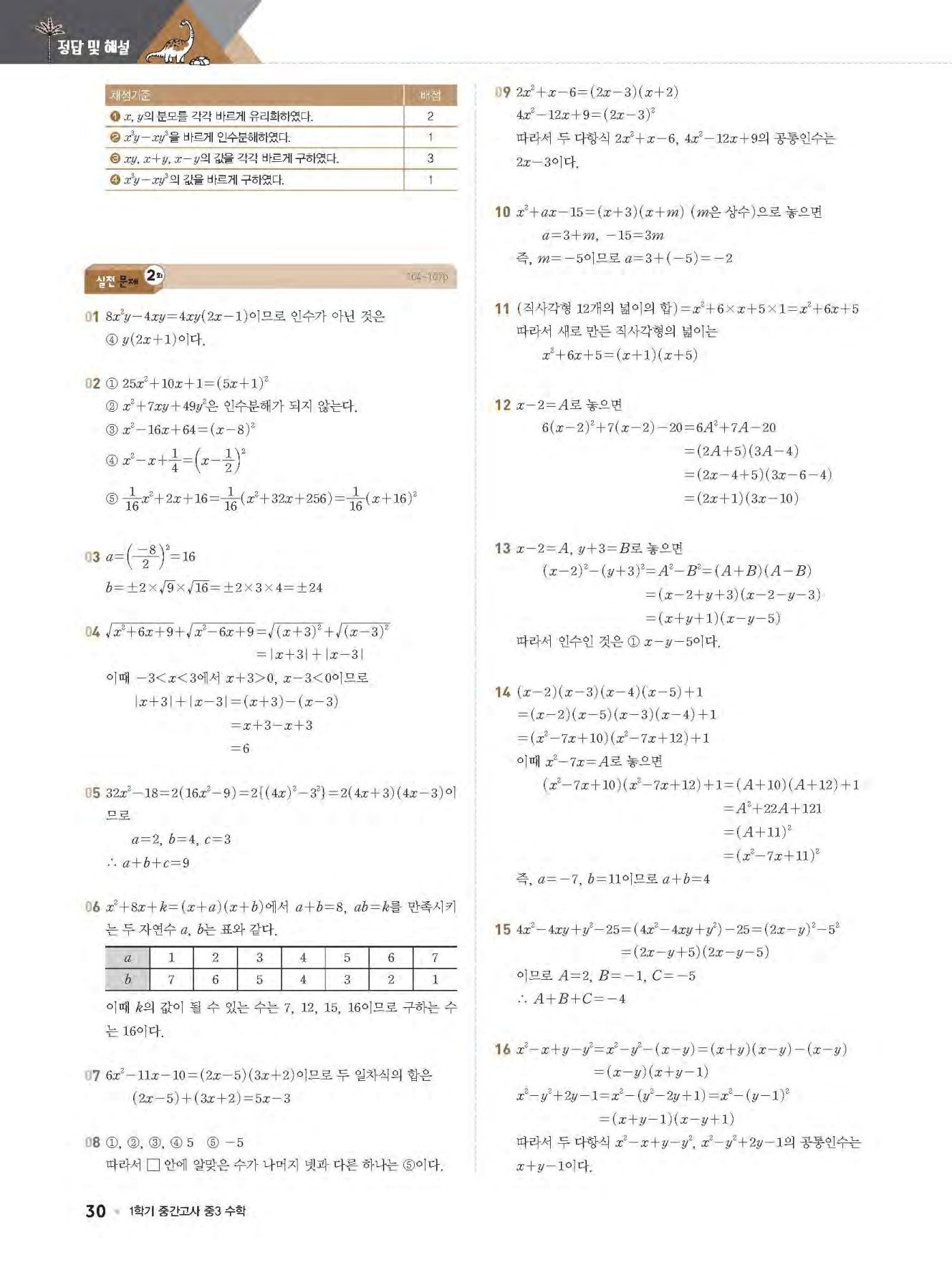 - 학생들이 쉽게 따라서 쓸 수 있도록 서술형을 쌍둥이 문제로 구성