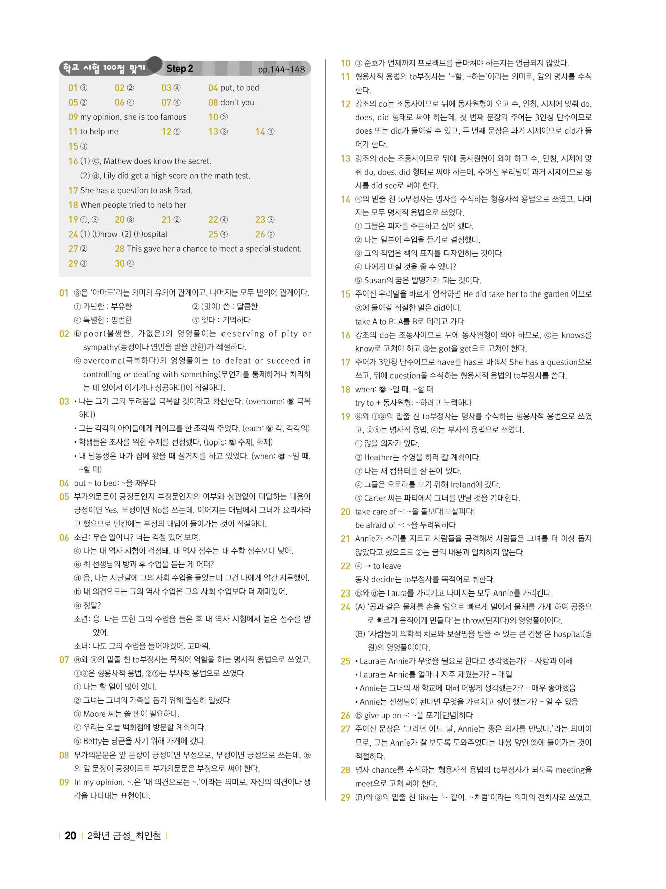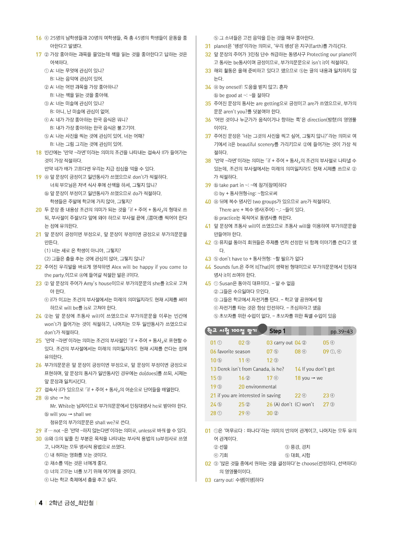 - 시험에 나올 만한 교과서 핵심 문장 복습 코너 수록