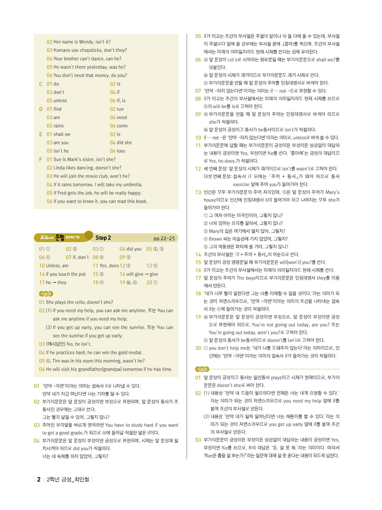 - 교과서 문법 다지기 : STEP 1 & 2 & 서술형