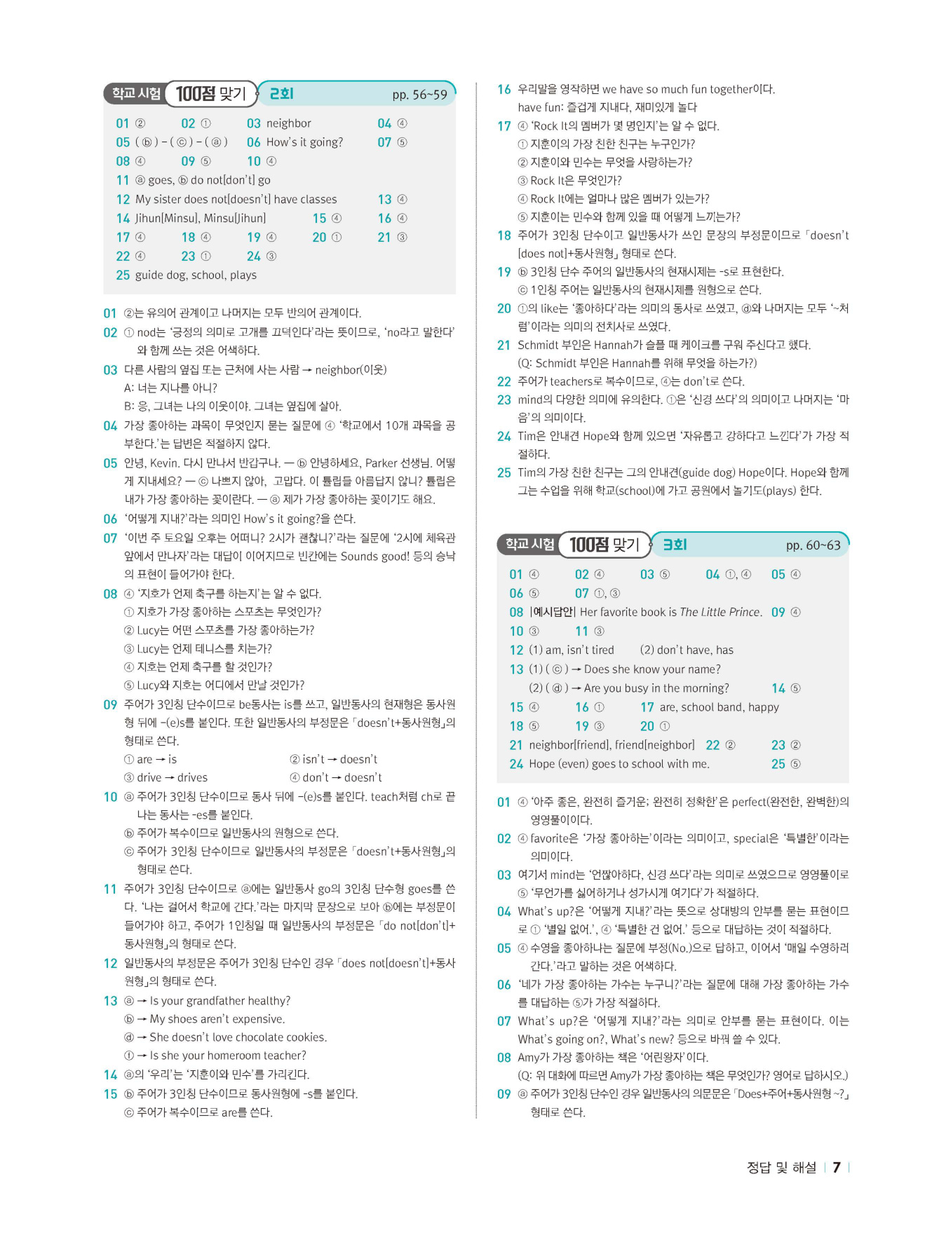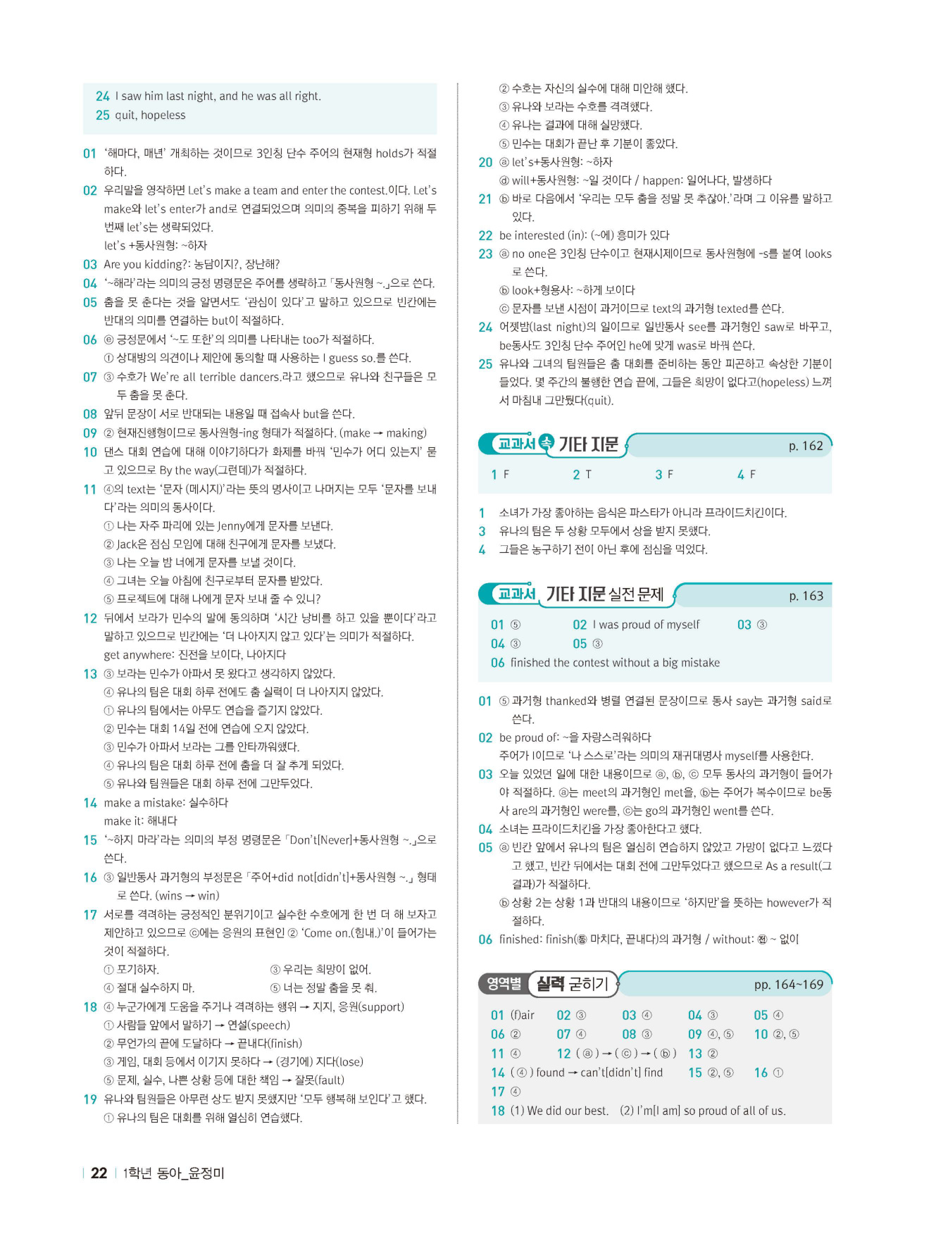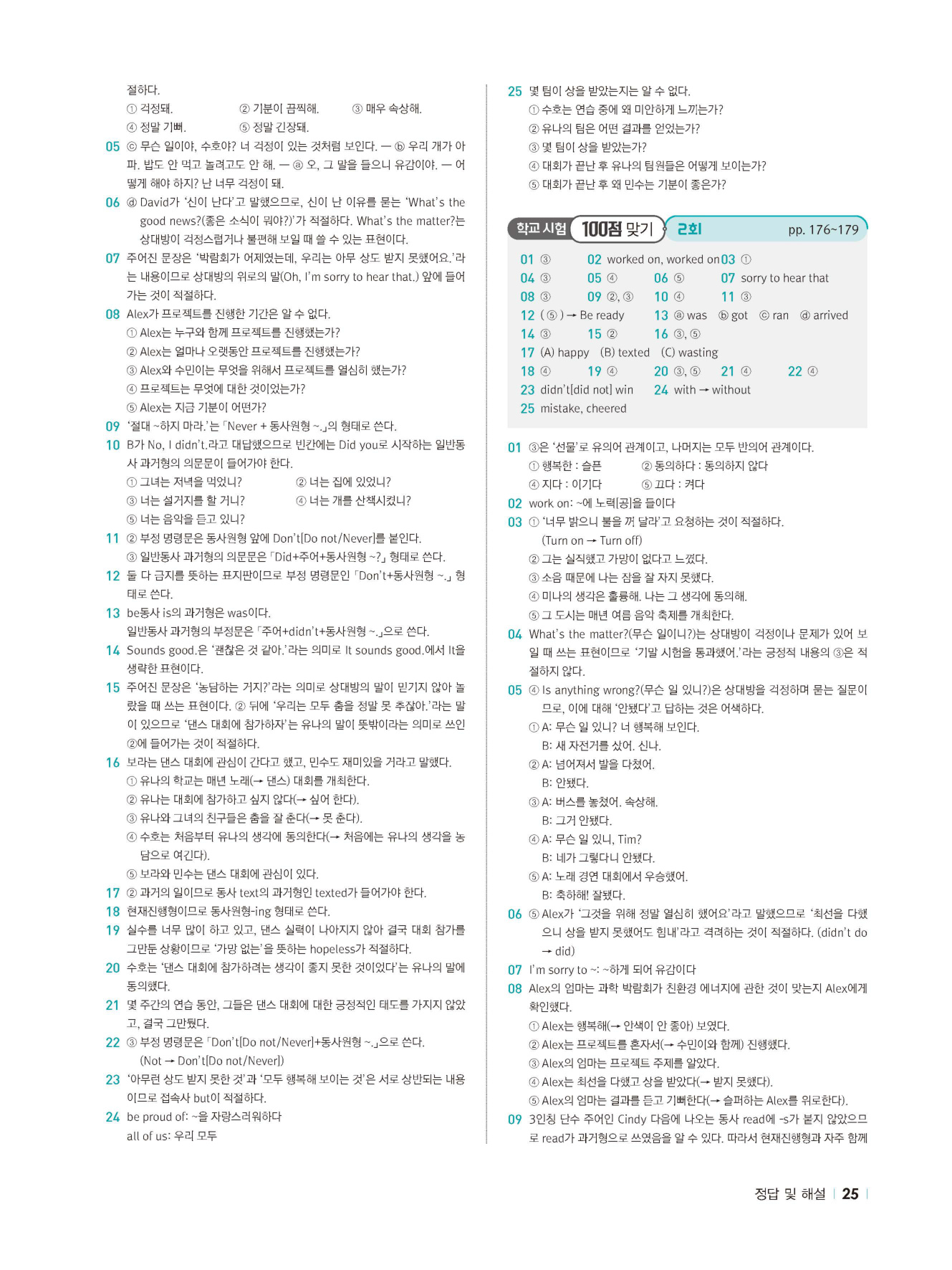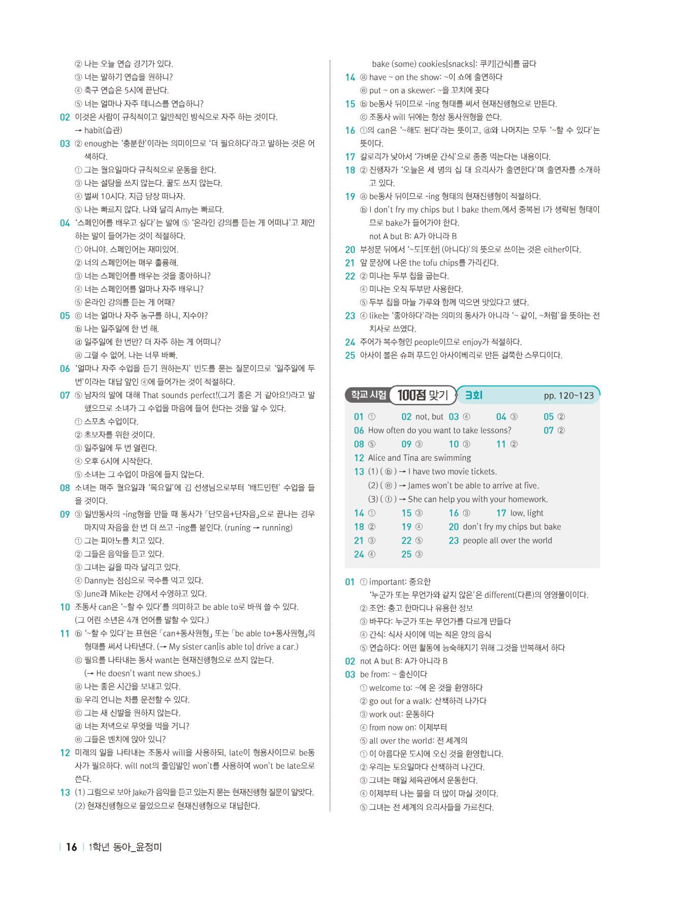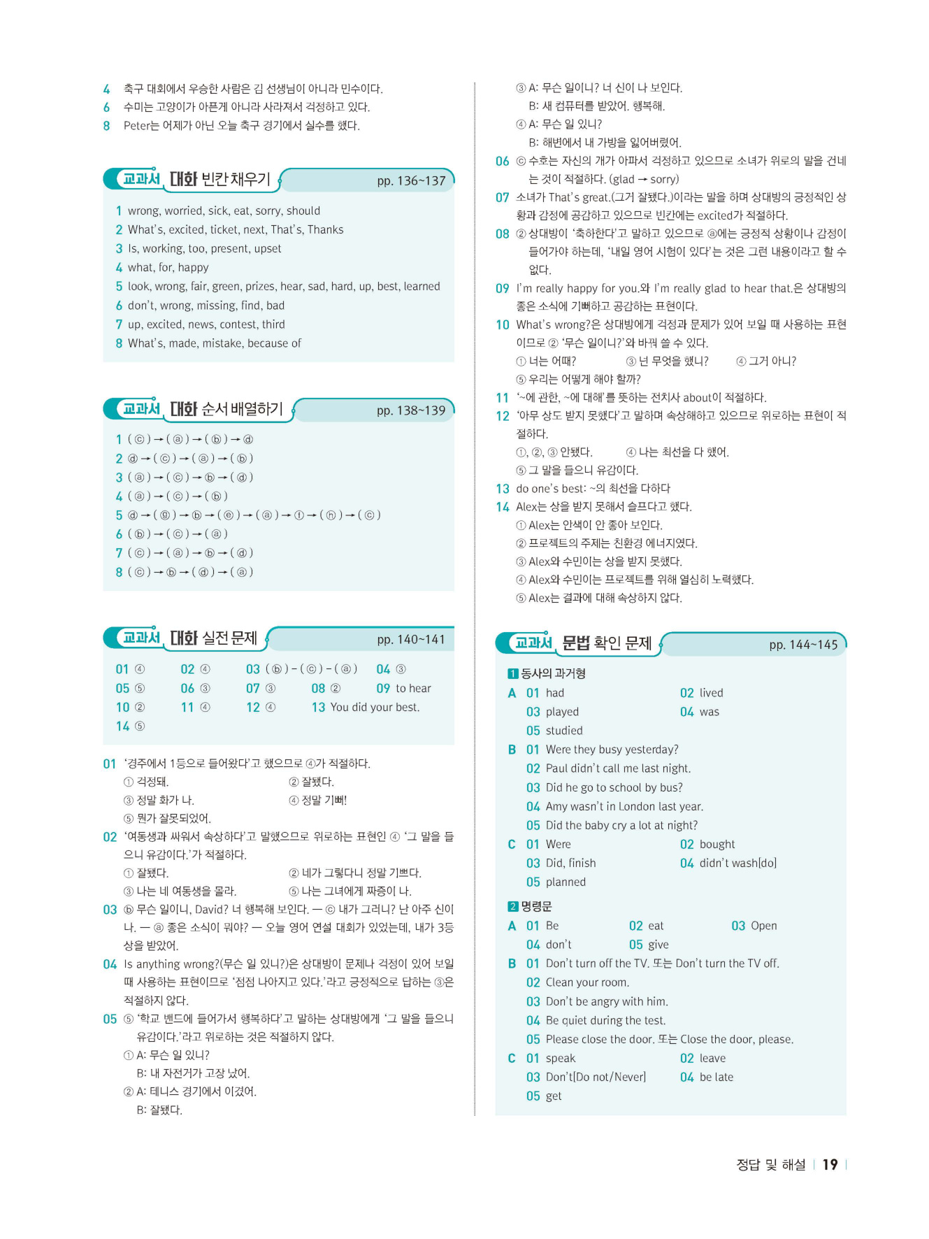 - 시험에 나올 만한 교과서 핵심 문장 복습 코너 수록