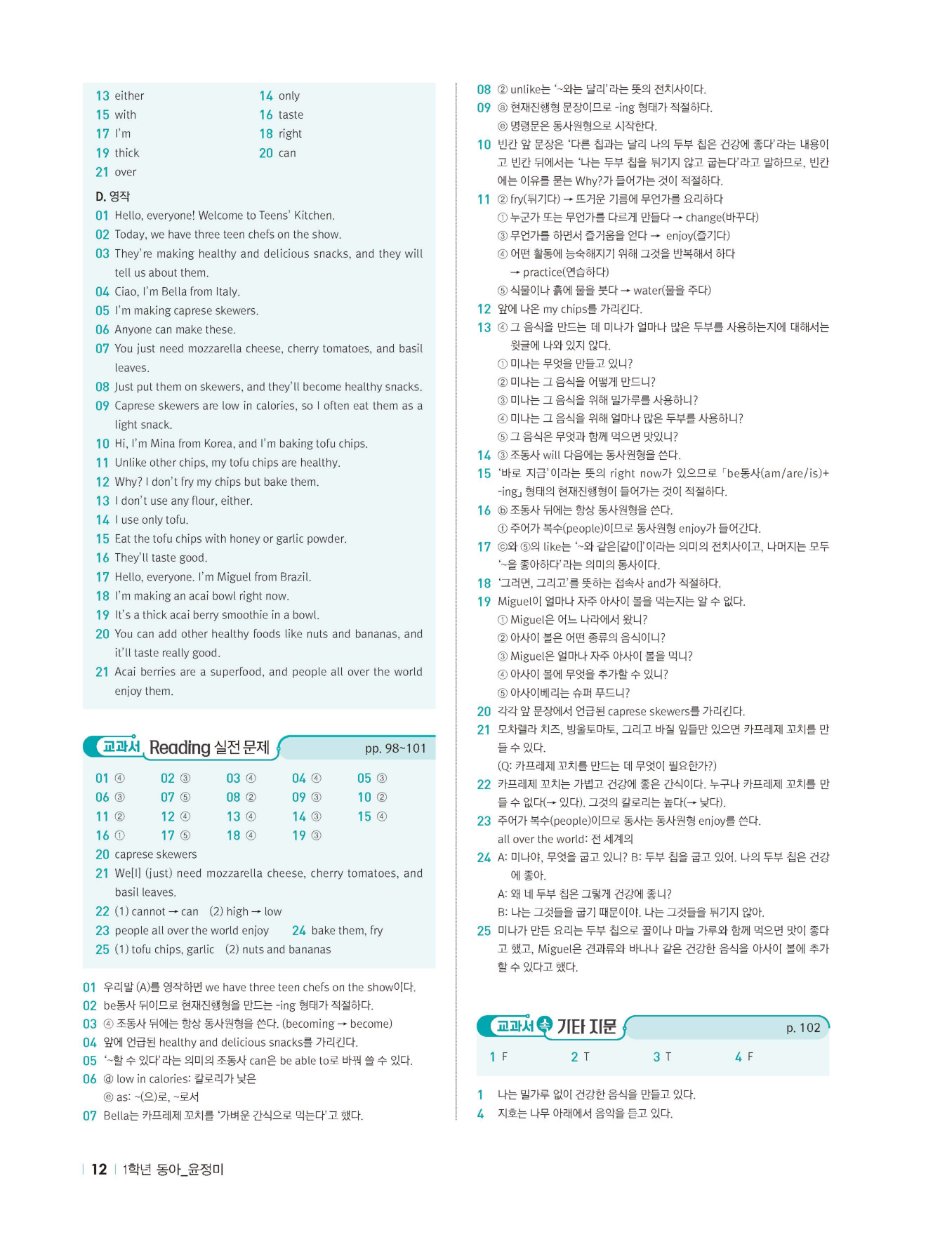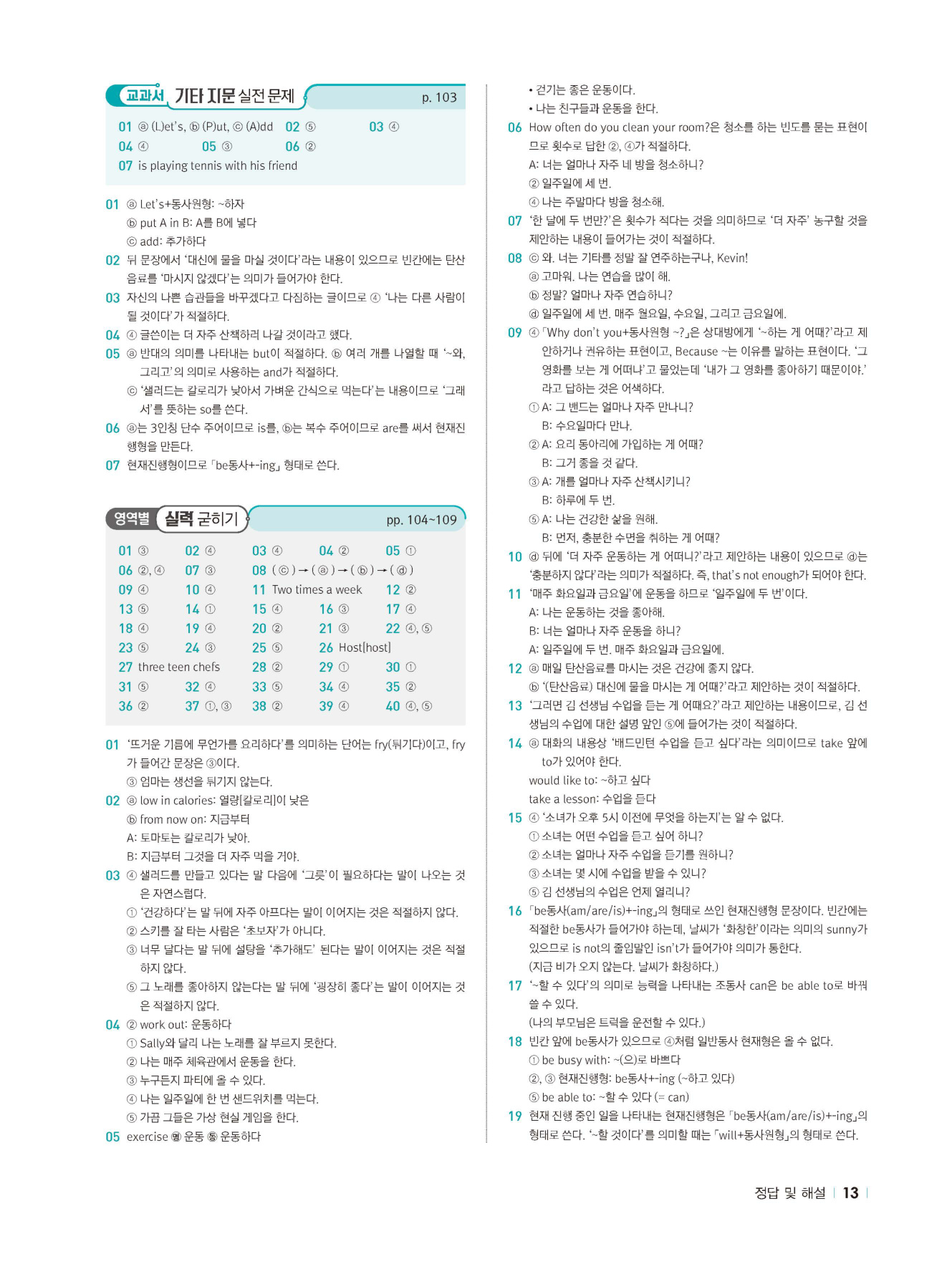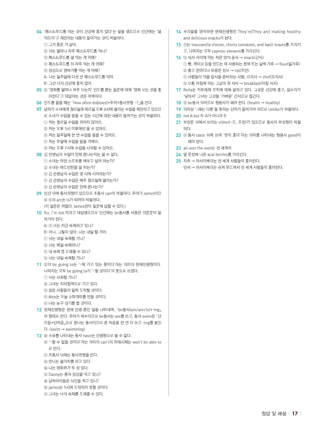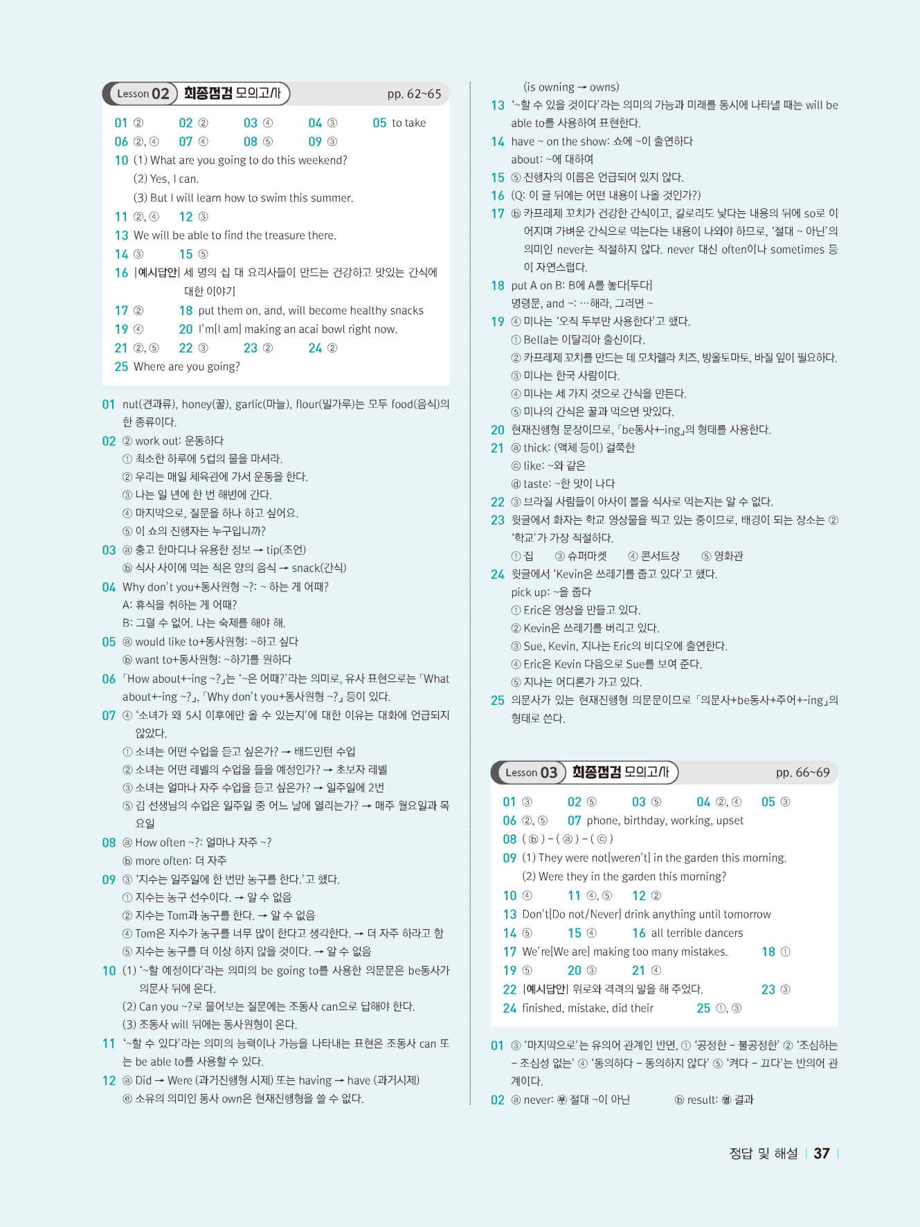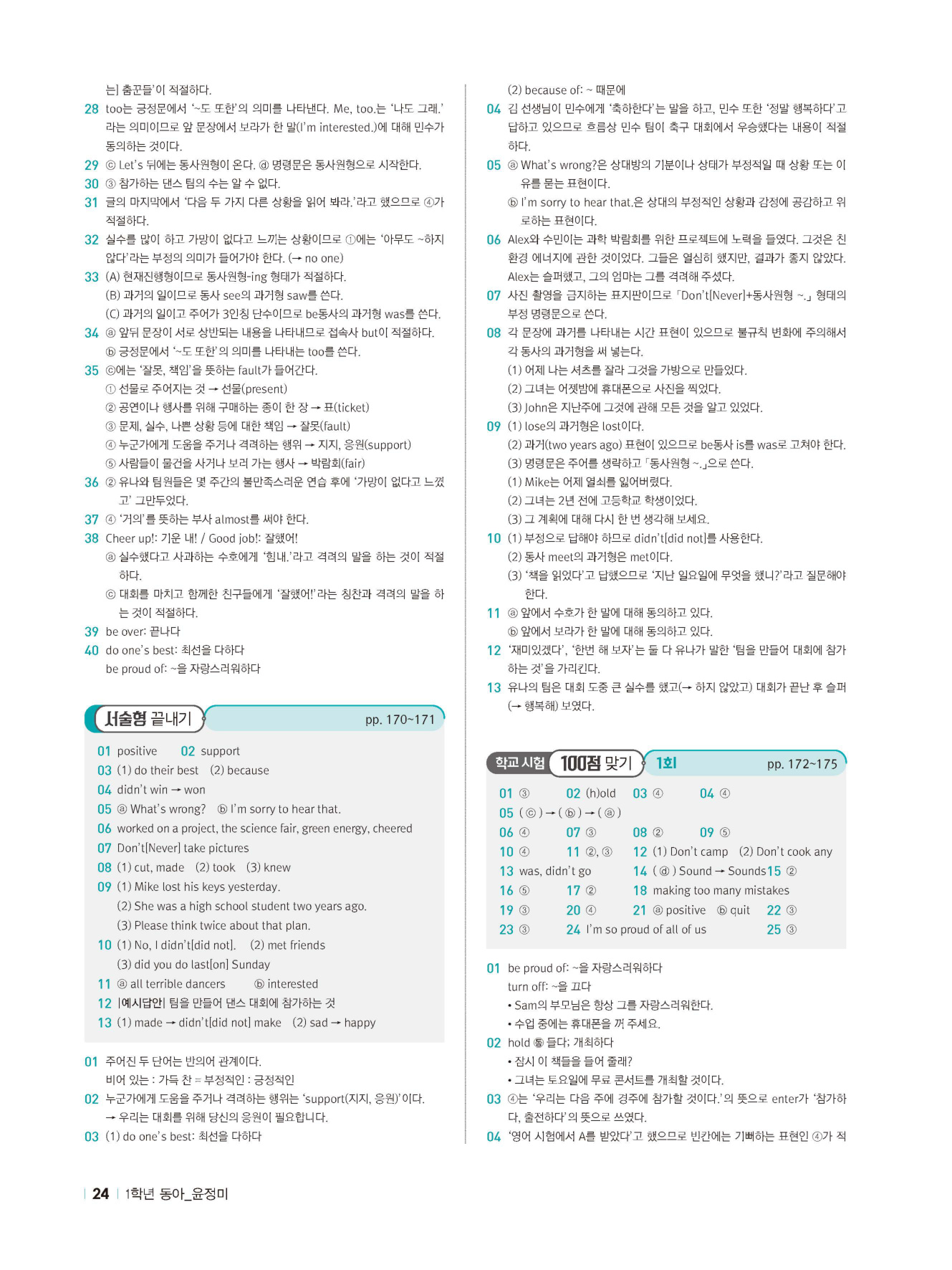 - 시험에 나올 만한 교과서 핵심 문장 복습 코너 수록