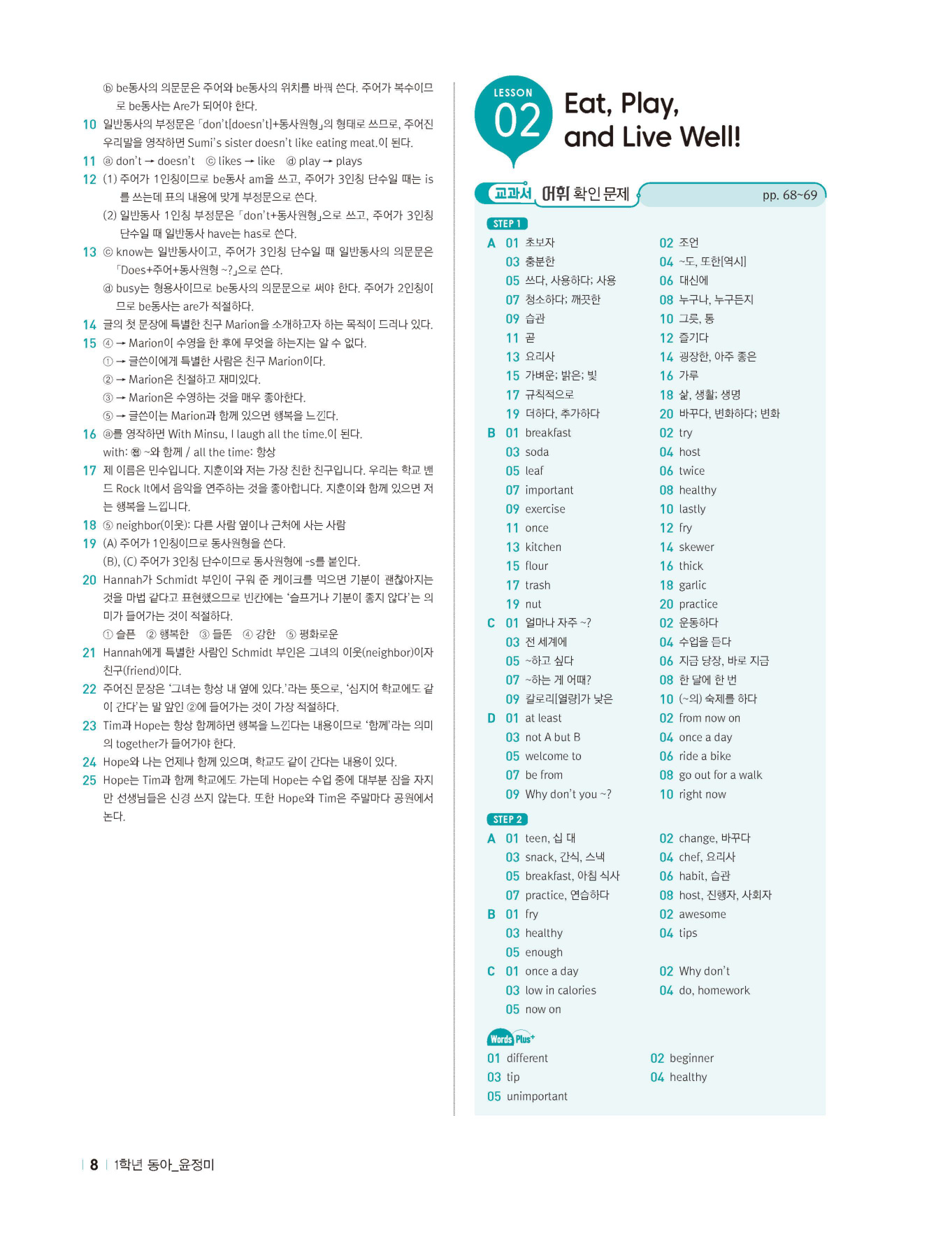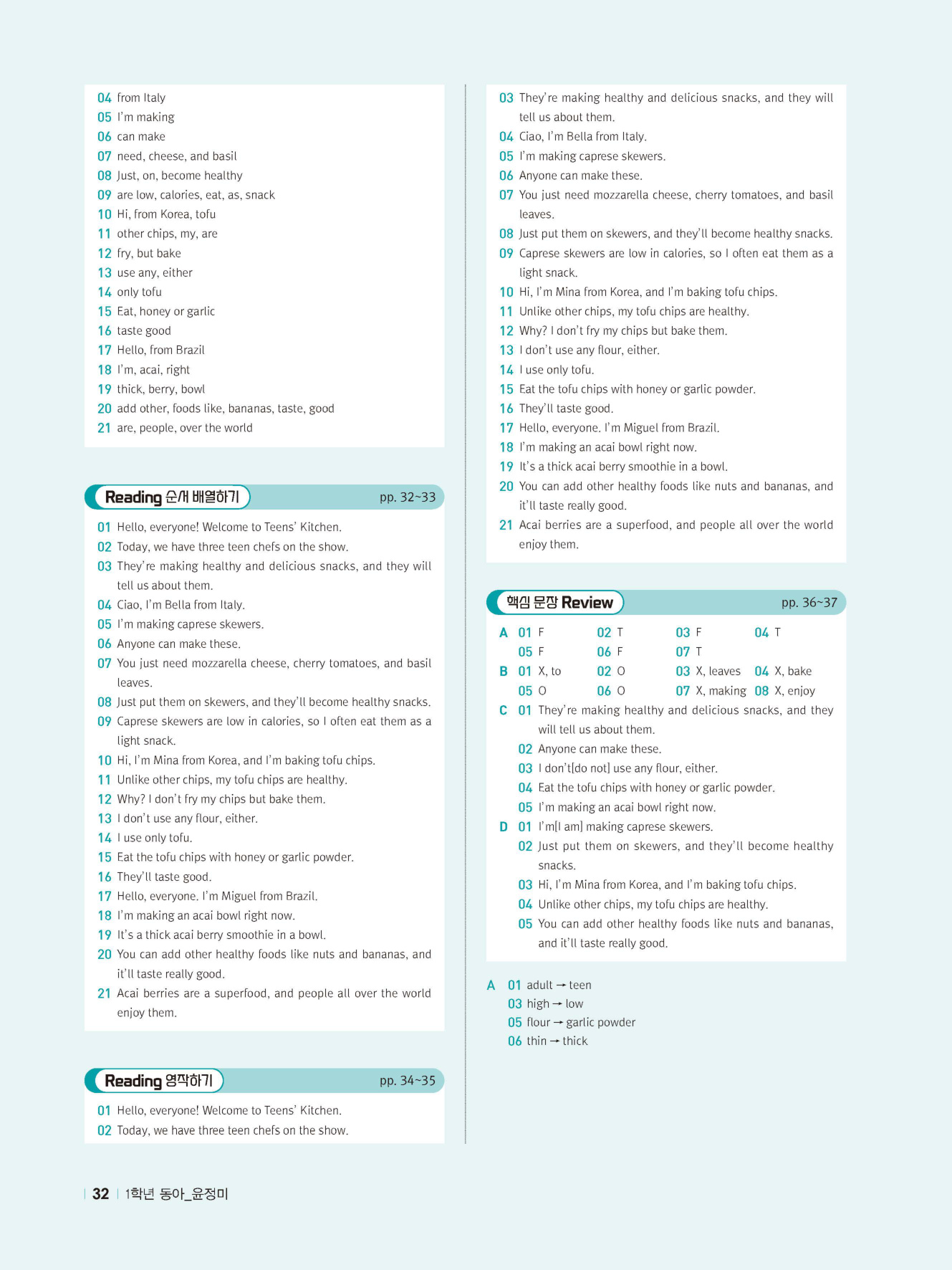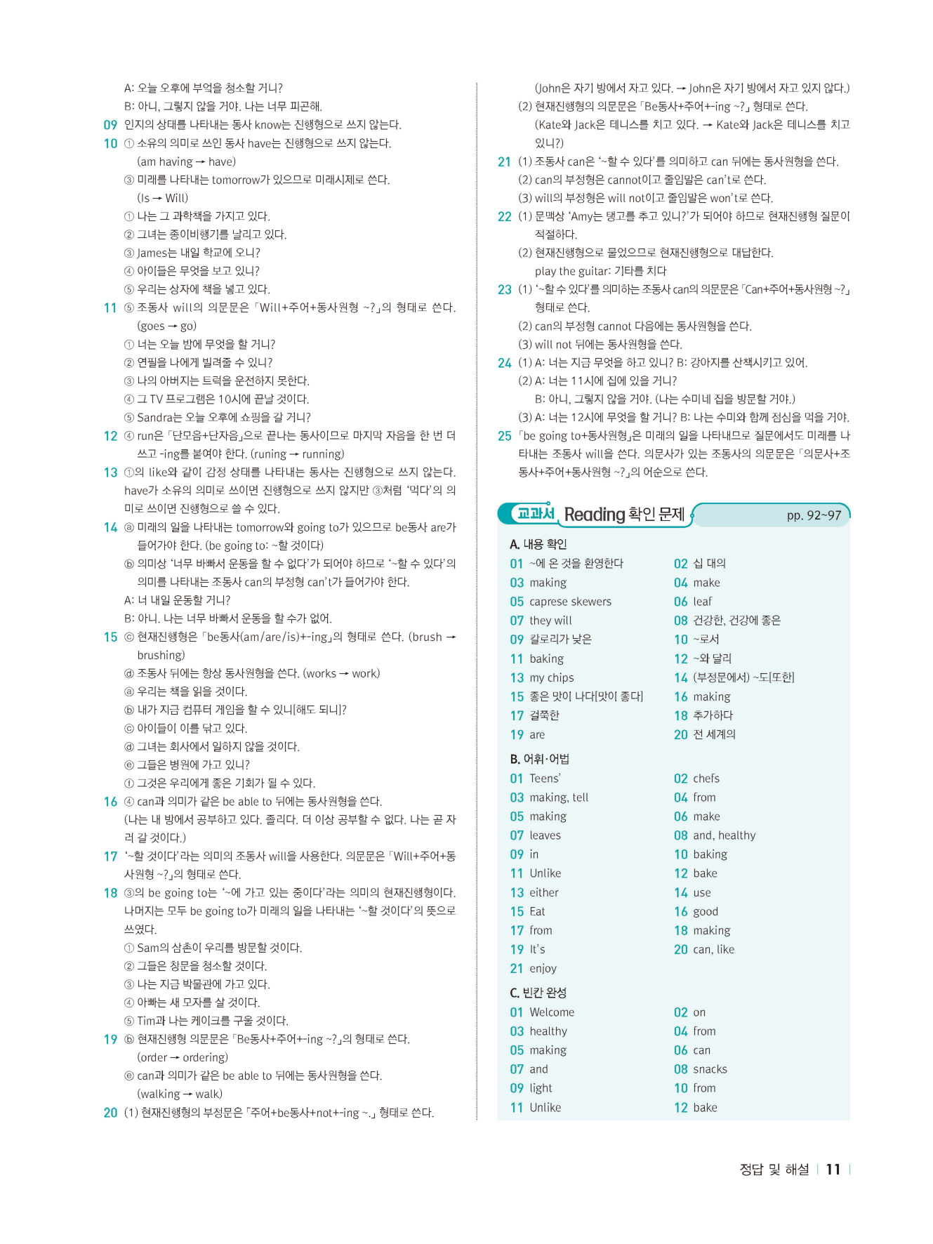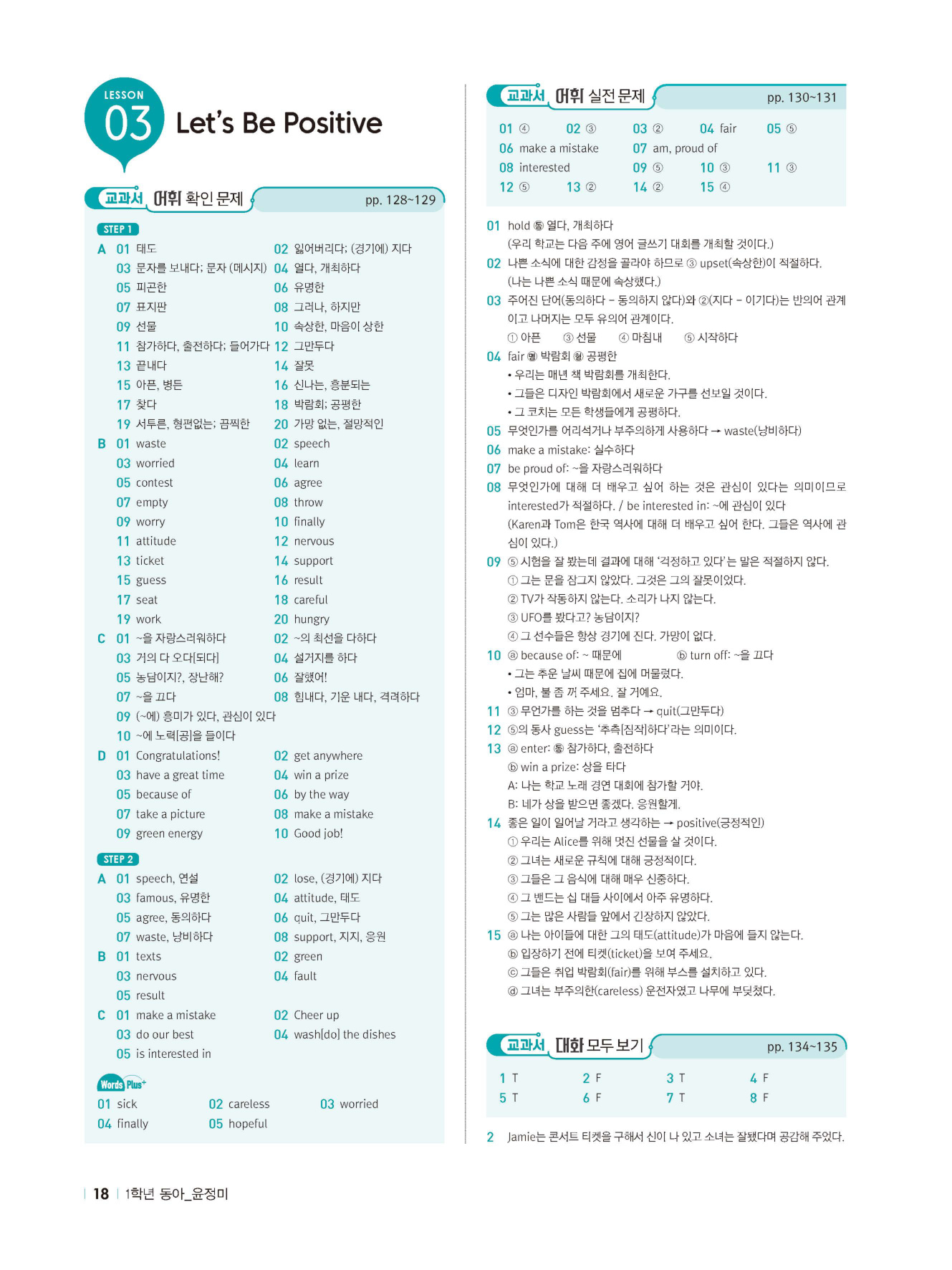 - 교과서 어휘 및 표현, 대화 2단계, Reading 5단계의 단계별 쓰기 강화 훈련 수록
