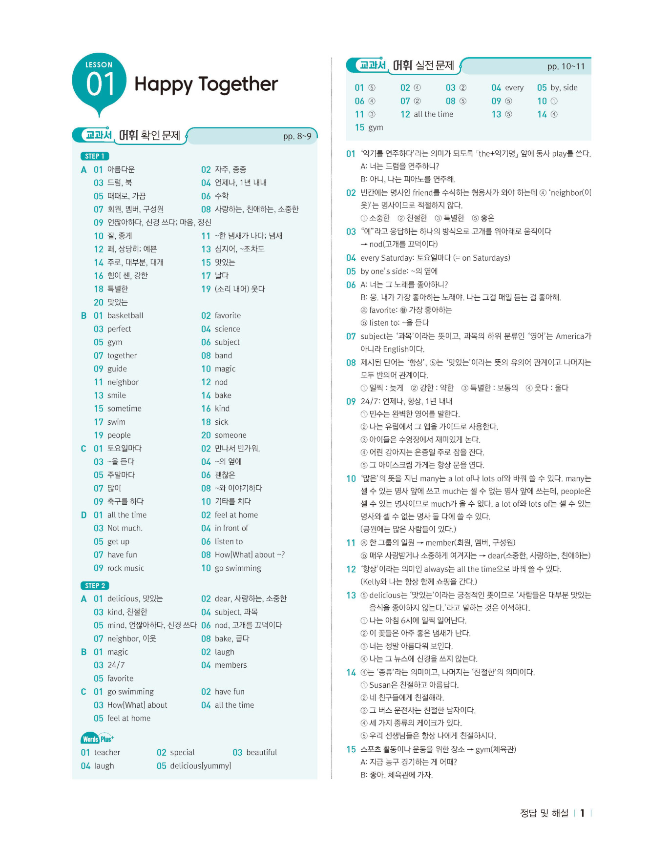 1. 교과서 속 핵심 어휘 / 교과서 어휘 확인 문제 / 교과서 어휘 실전 문제
