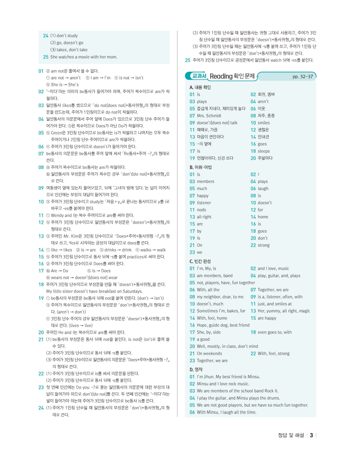 3. 교과서 속 핵심 문법 / 교과서 문법 확인 문제 / 교과서 문법 실전 문제 + 서술형