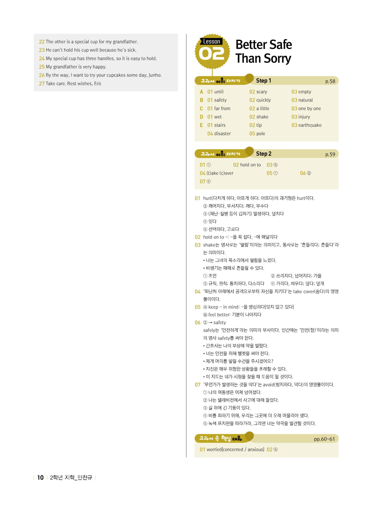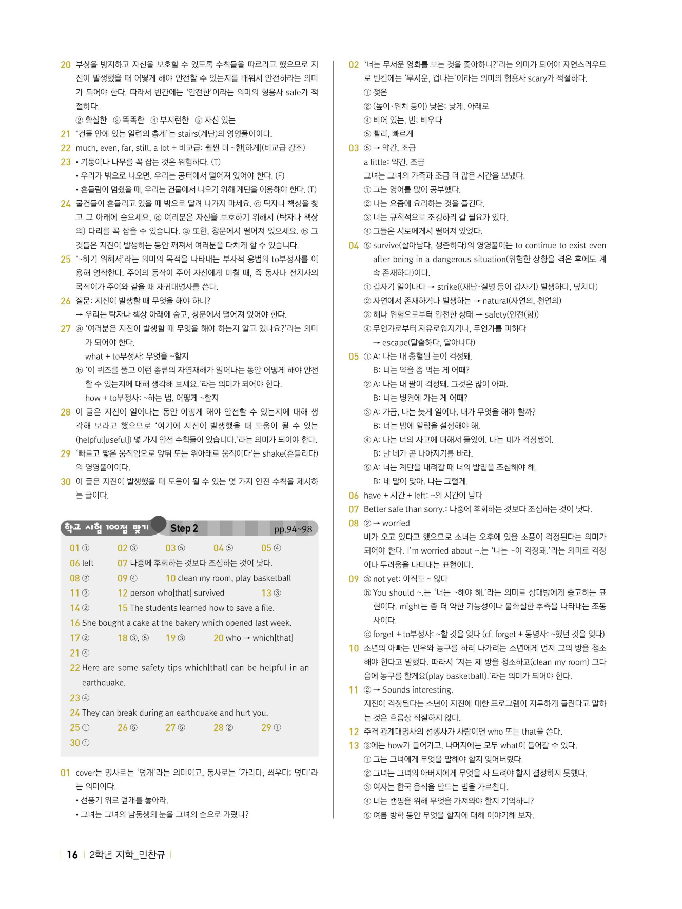 - 시험에 나올 만한 교과서 핵심 문장 복습 코너 수록