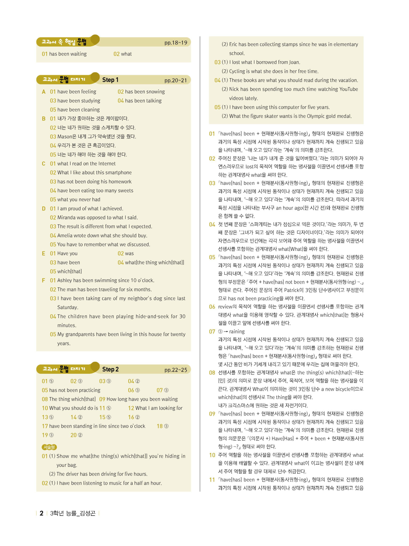 3. 교과서 속 핵심 문법 / 교과서 문법 다지기 Step 1, 2 / 서술형