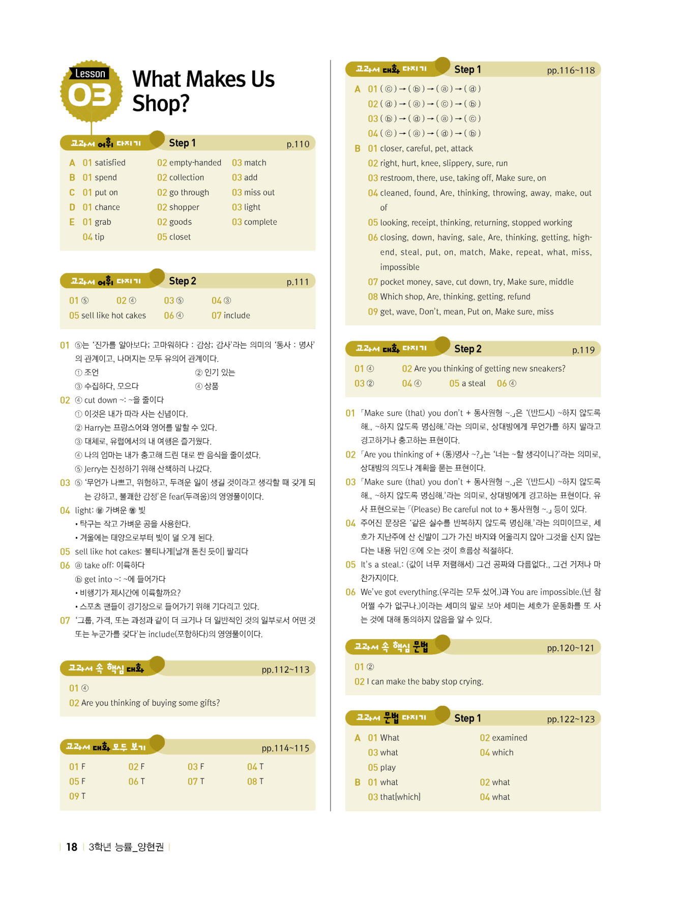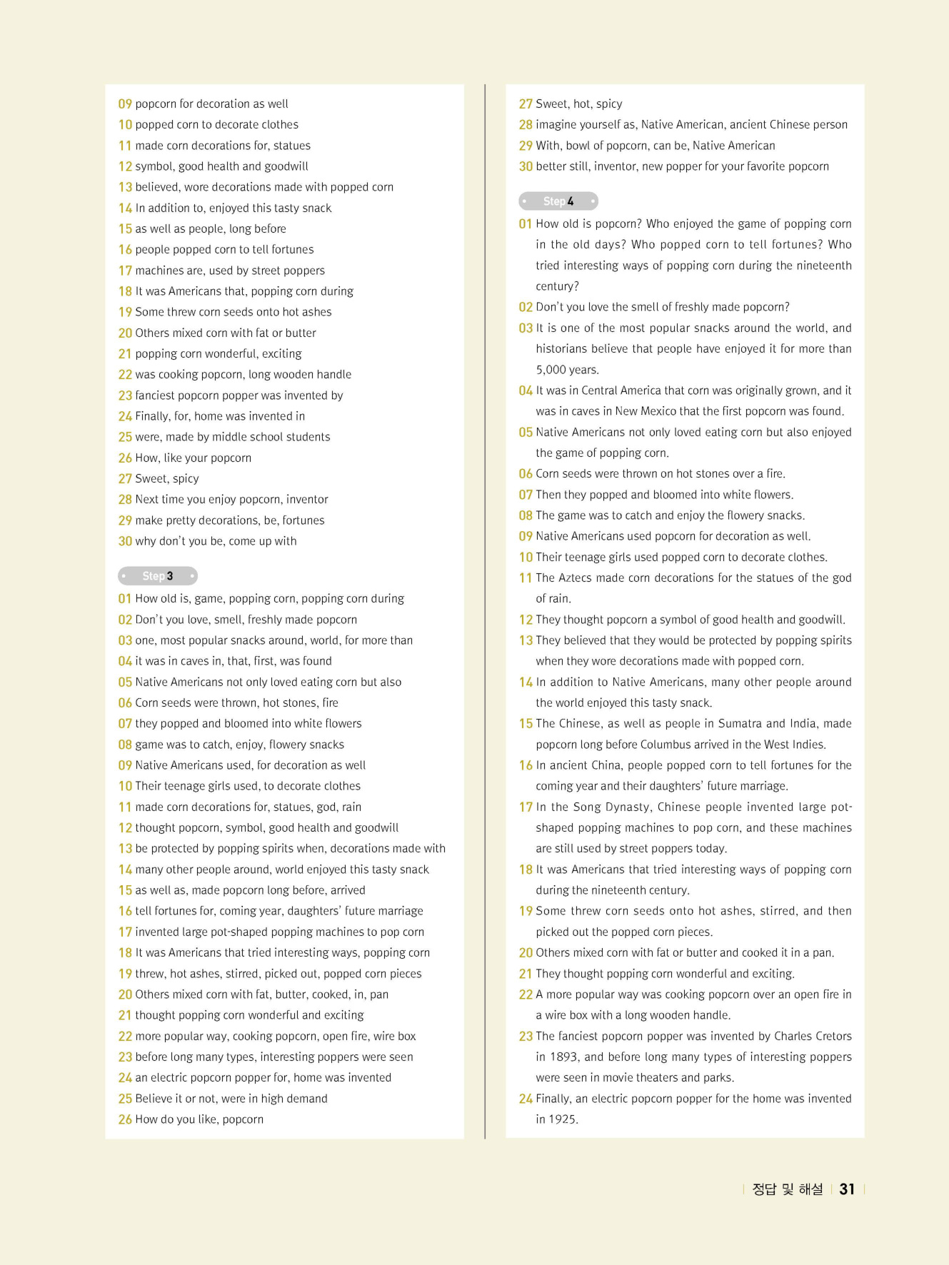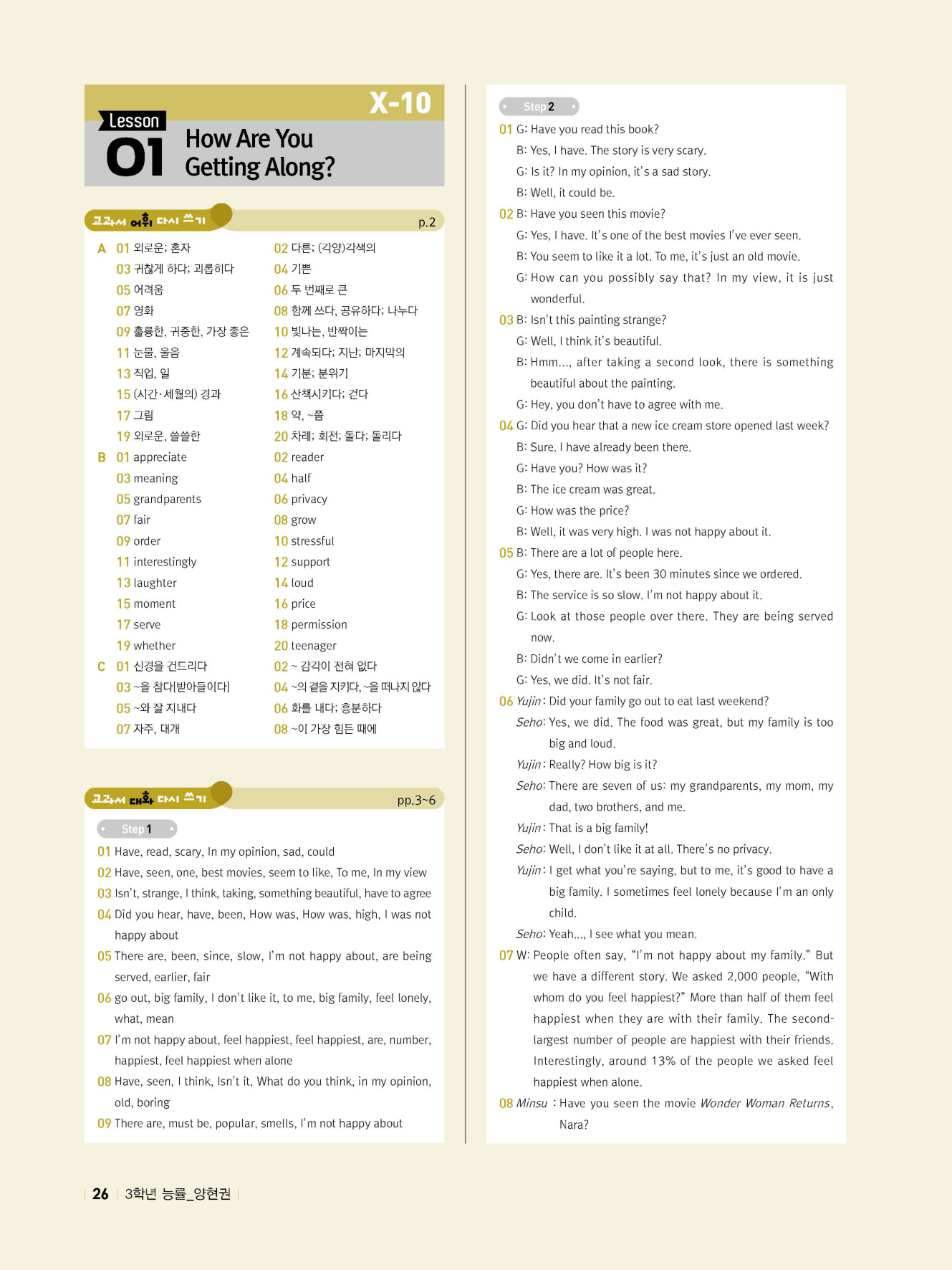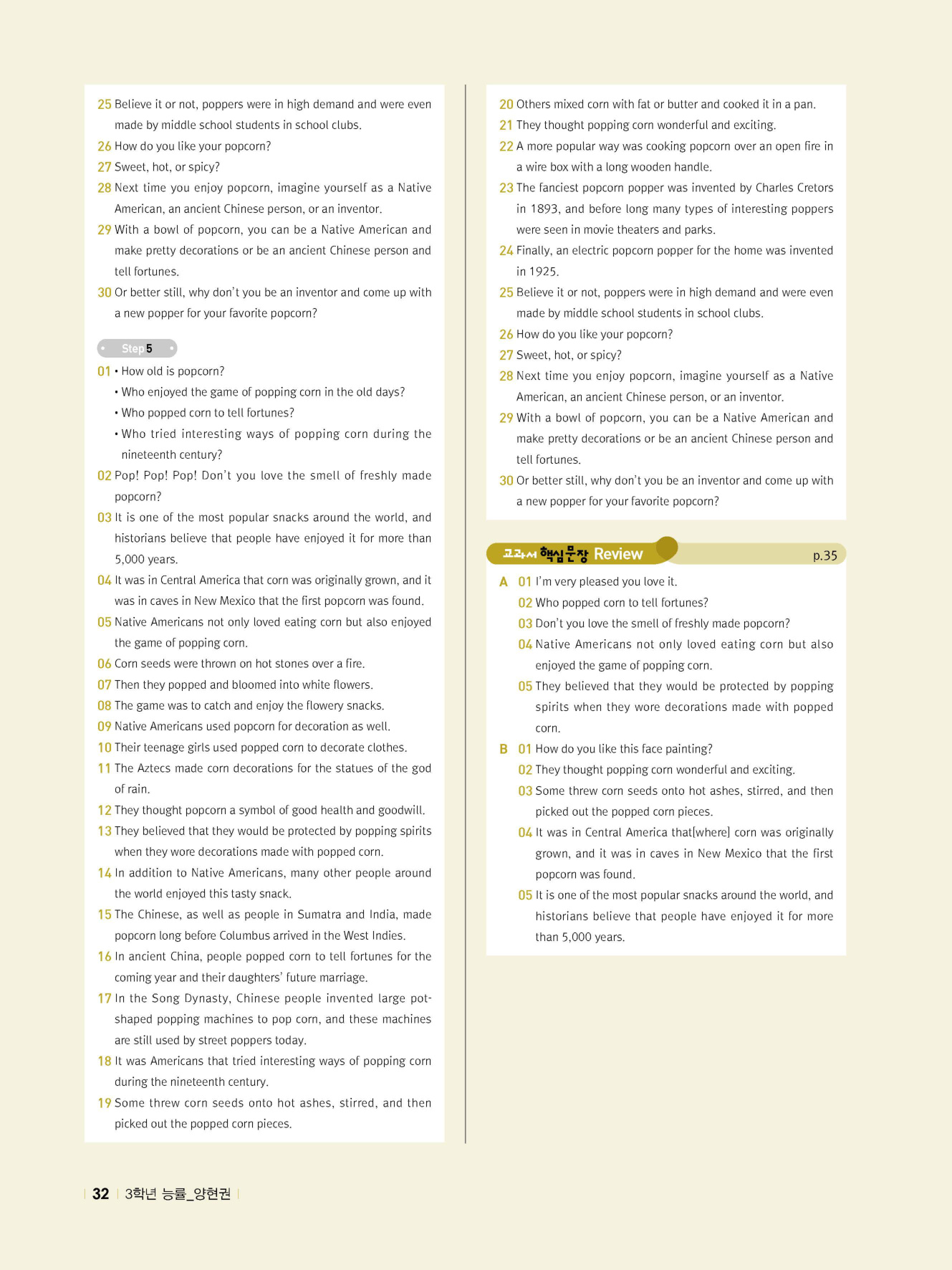 - 교과서 어휘 및 표현, 대화 2단계, 본문 5단계의 단계별 쓰기 강화 훈련 수록