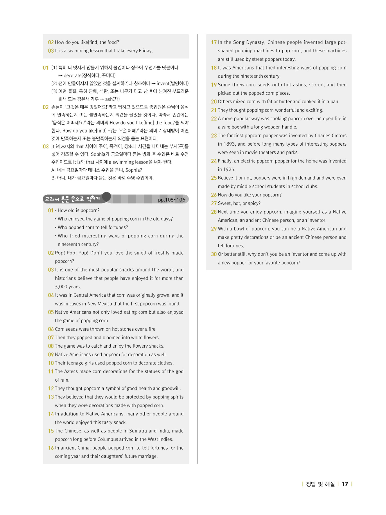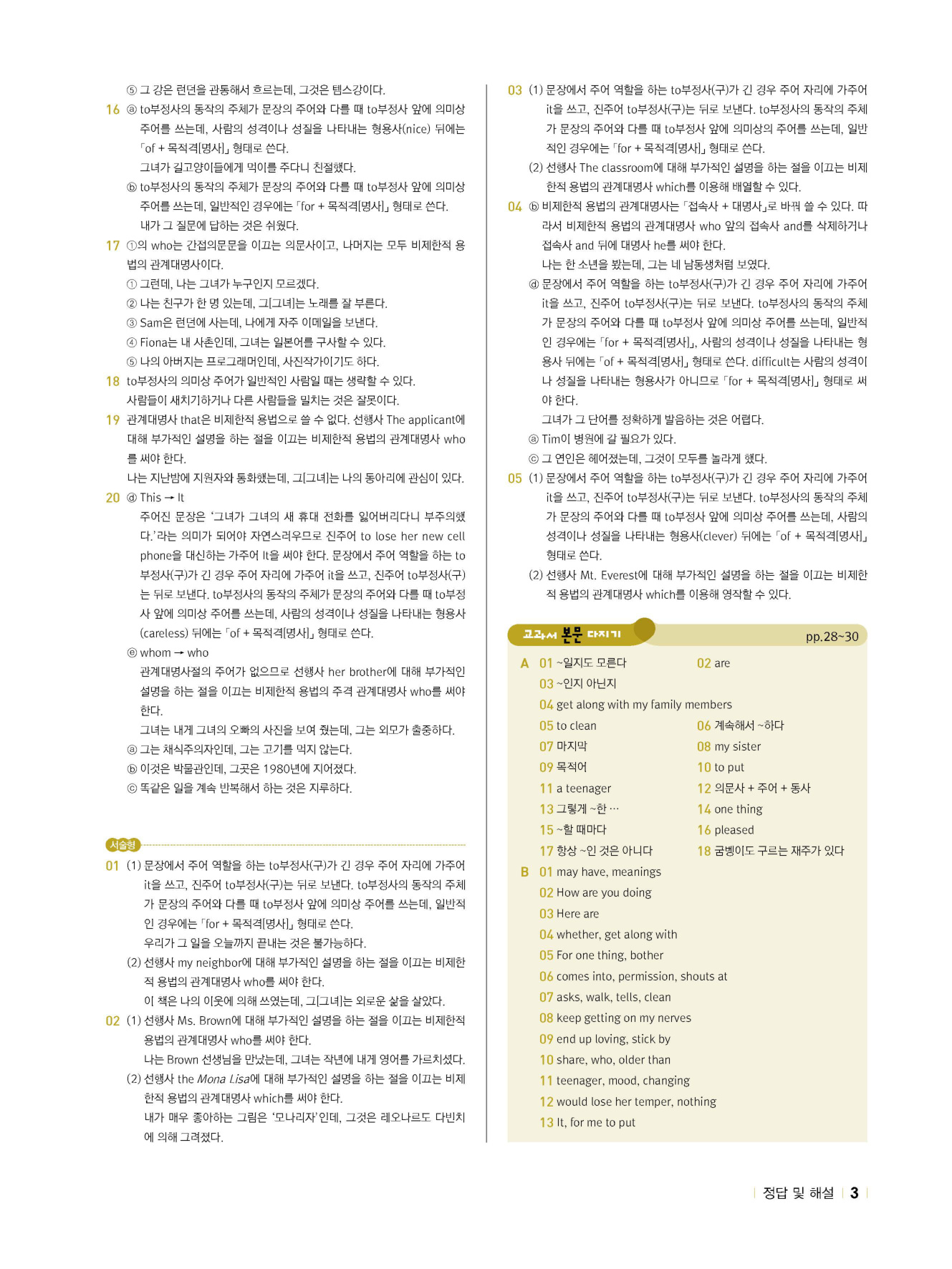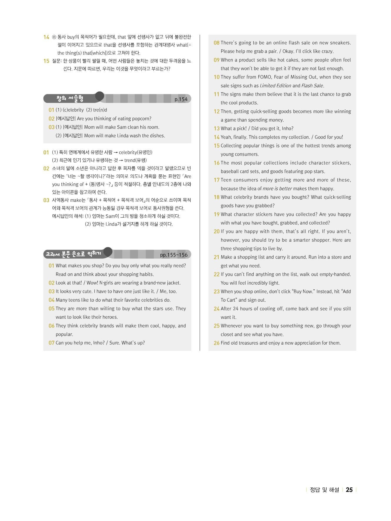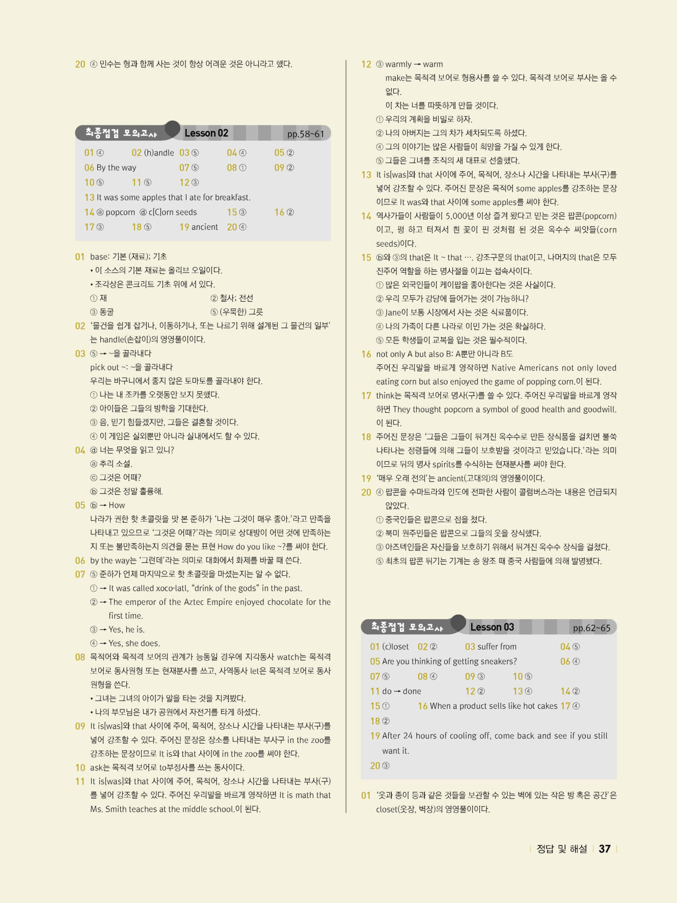 - 시험에 나올 만한 교과서 핵심 문장 복습 코너 수록