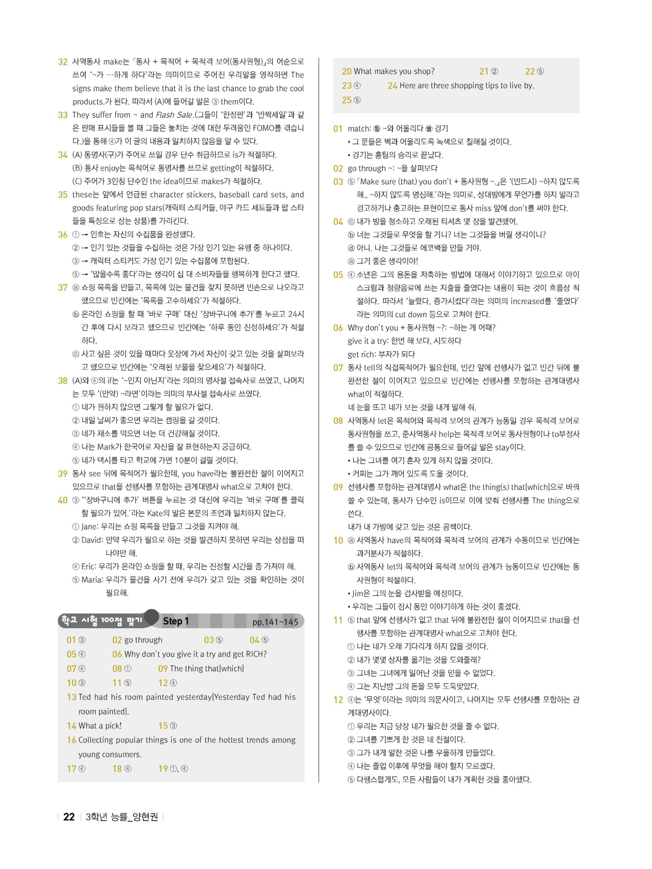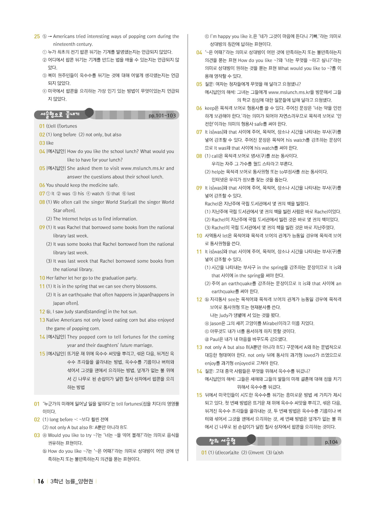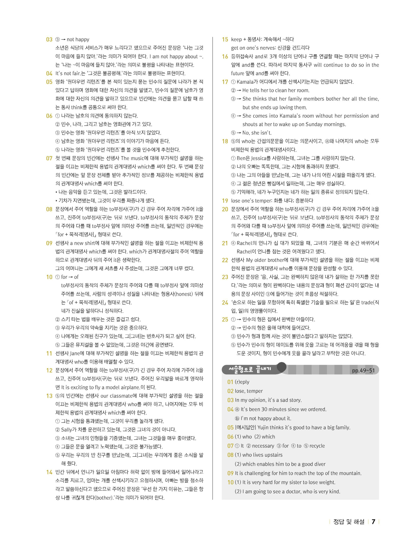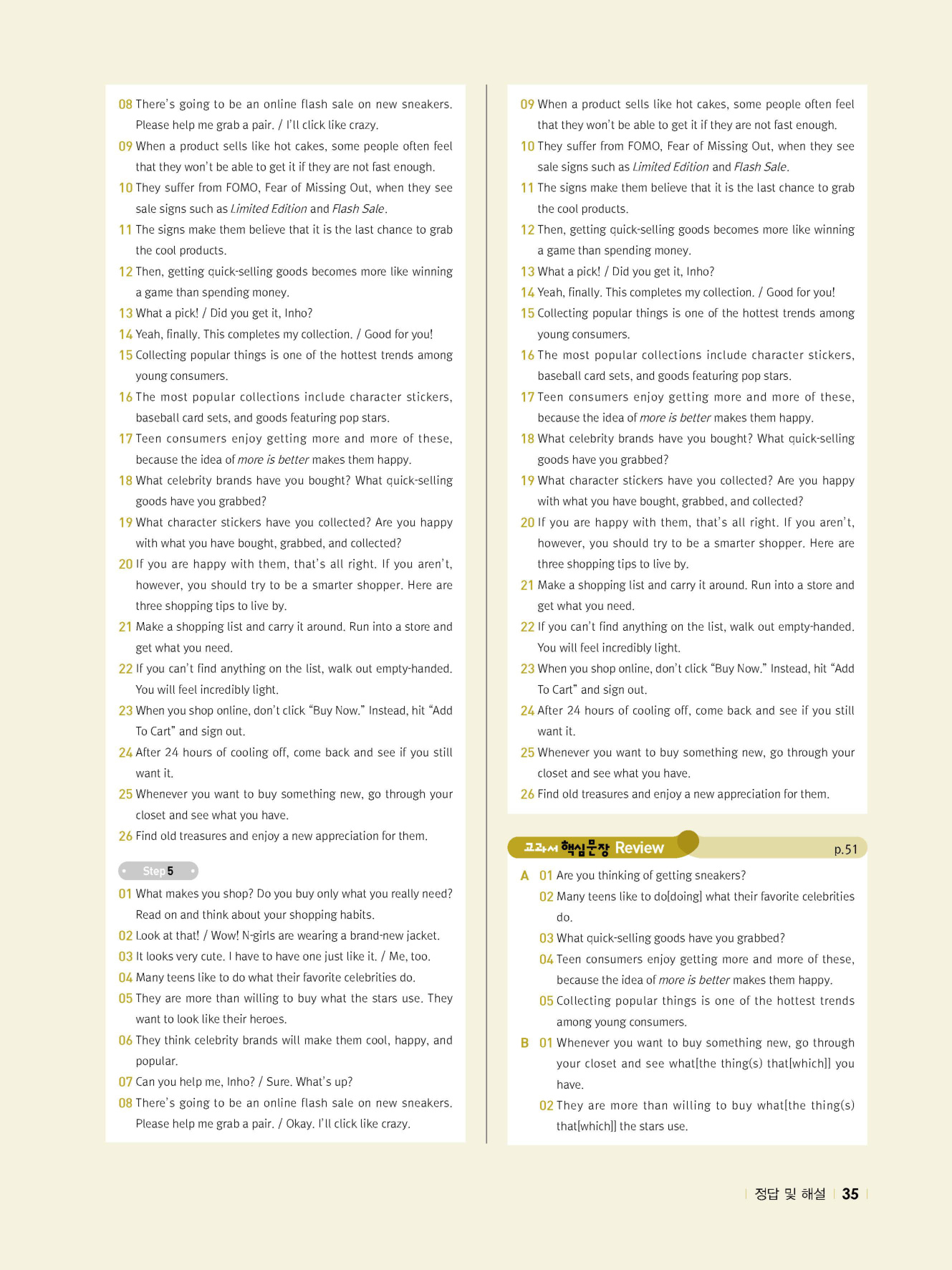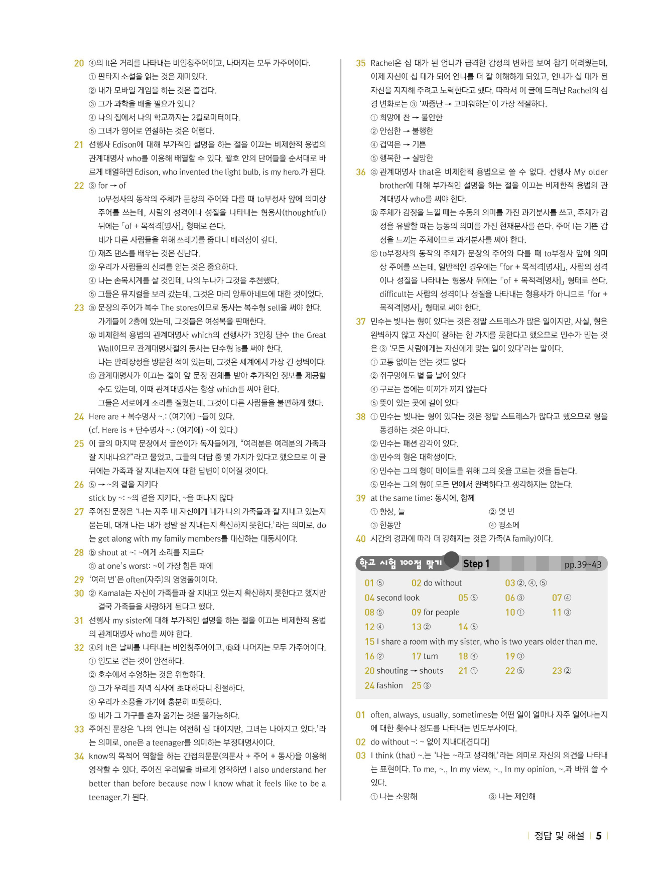 - 시험에 나올 만한 교과서 핵심 문장 복습 코너 수록