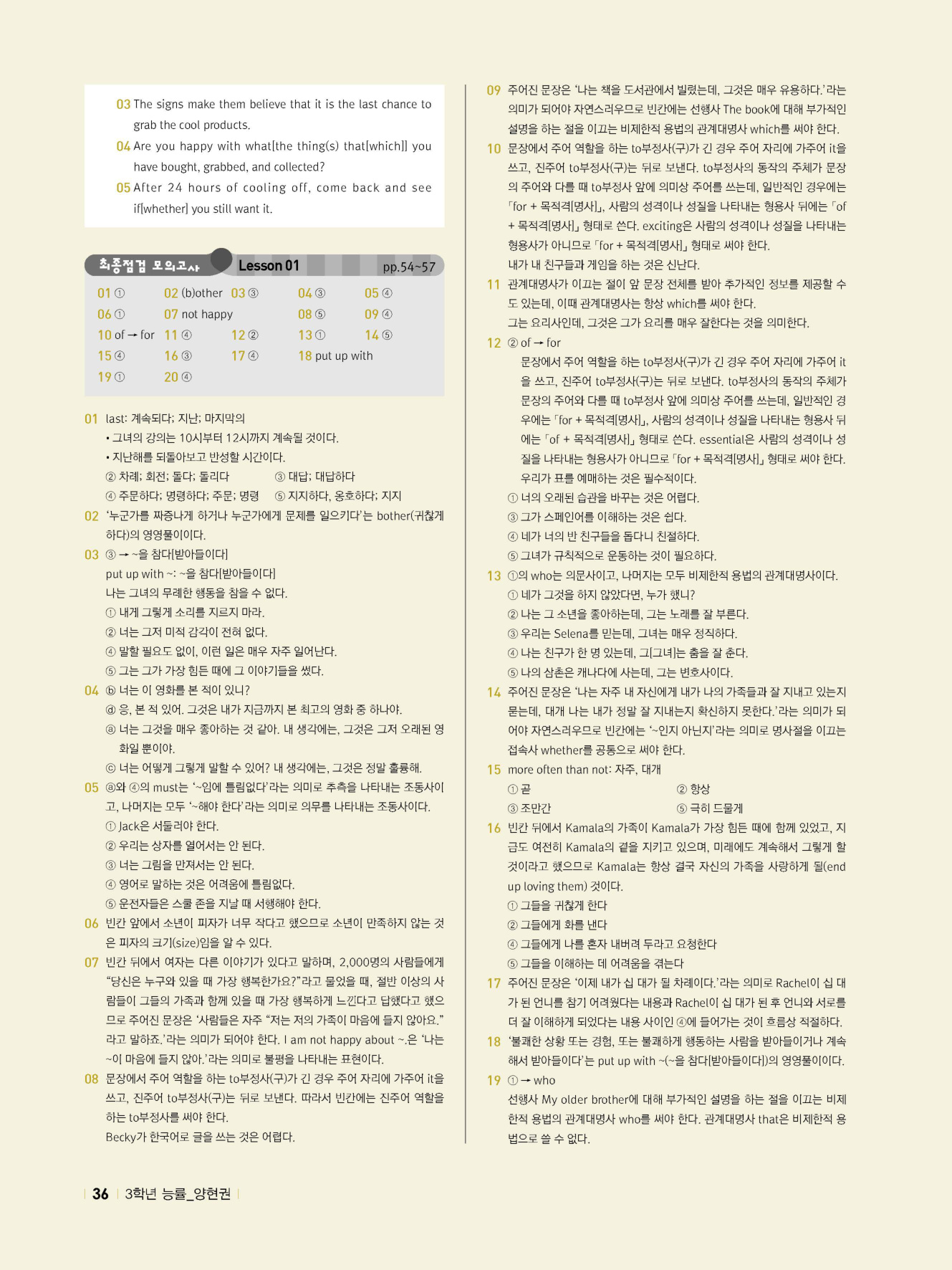 3. 교과서 속 핵심 문법 / 교과서 문법 다지기 Step 1, 2 / 서술형