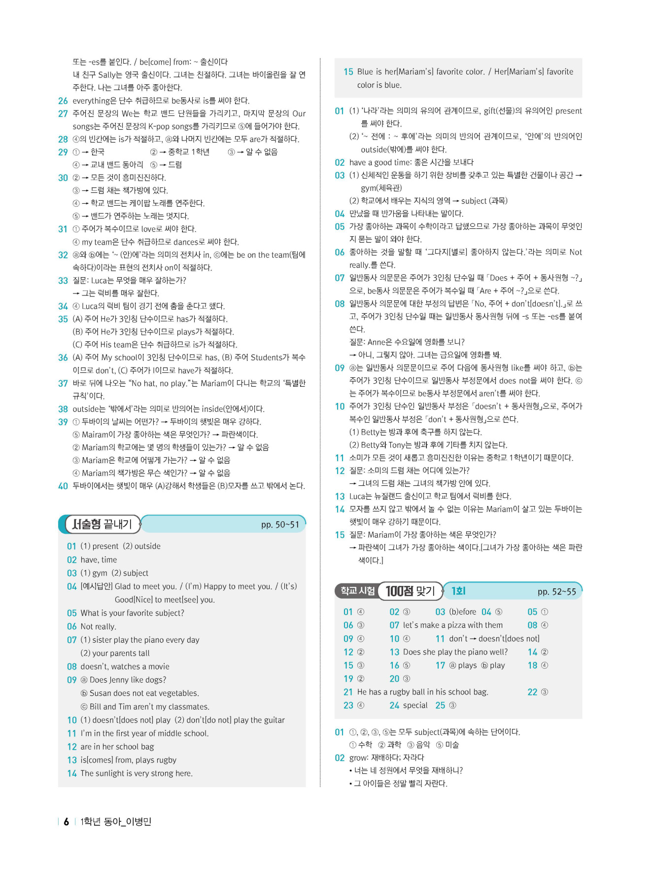어휘, 대화, 문법, 독해 영역별로 다양한 유형의 서술형 문제를 풀어봄으로써 학교 시험에서 비중이 확대되고 있는 서술형 평가에 완벽히 대비할 수 있도록 함