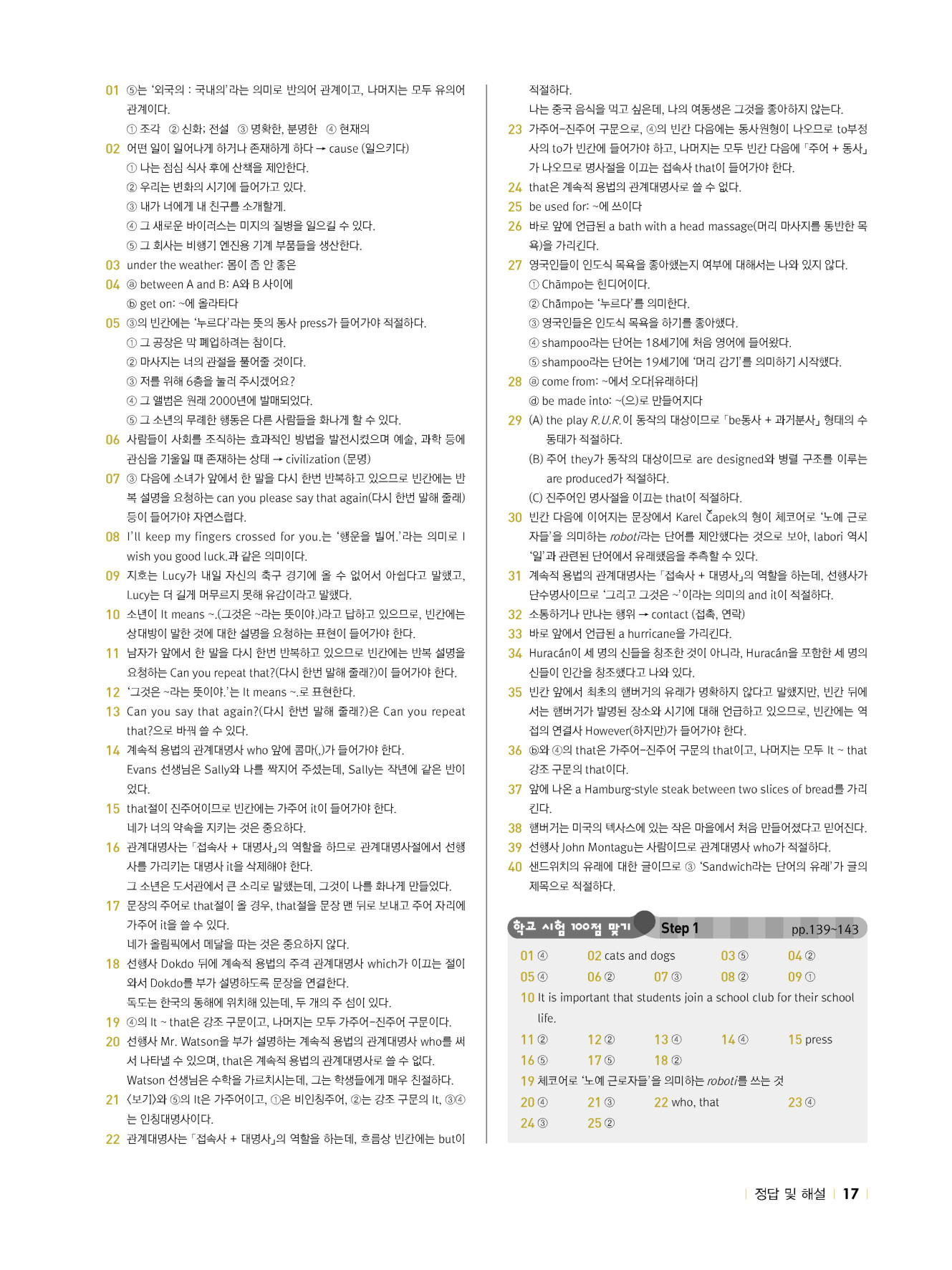 - 시험에 나올 만한 교과서 핵심 문장 복습 코너 수록