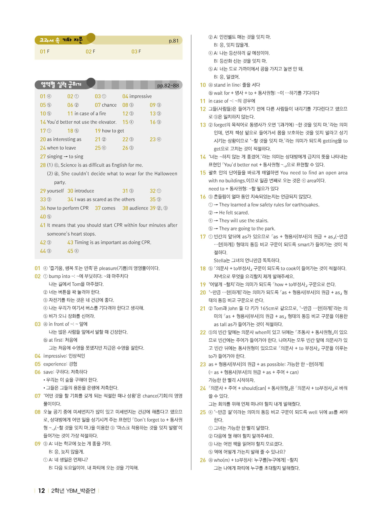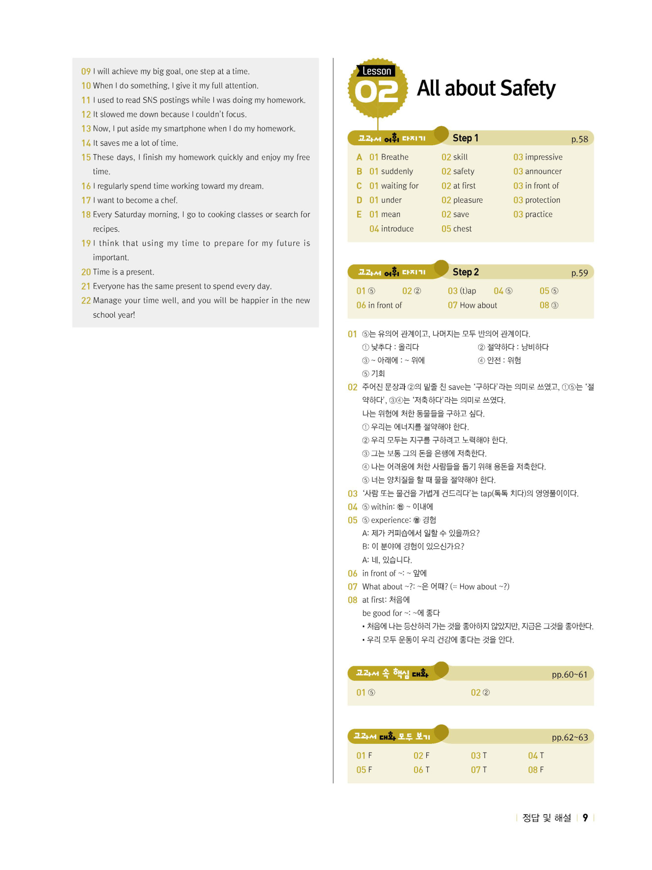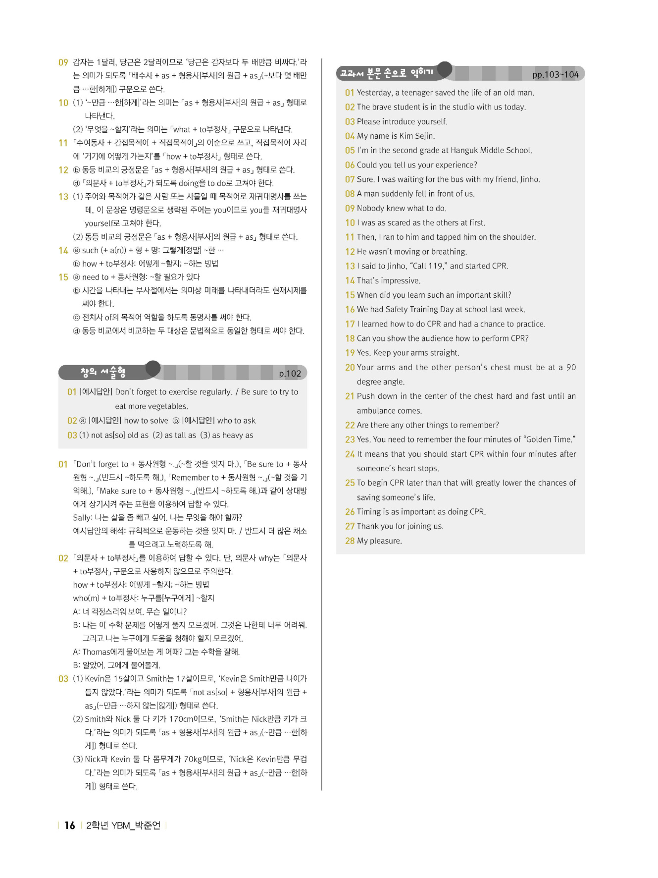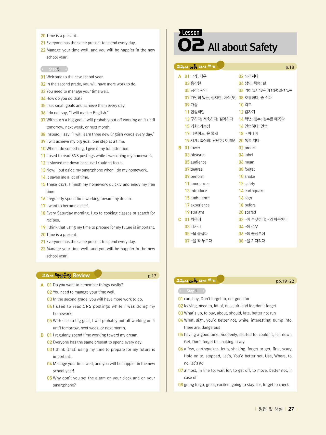 - 시험에 나올 만한 교과서 핵심 문장 복습 코너 수록