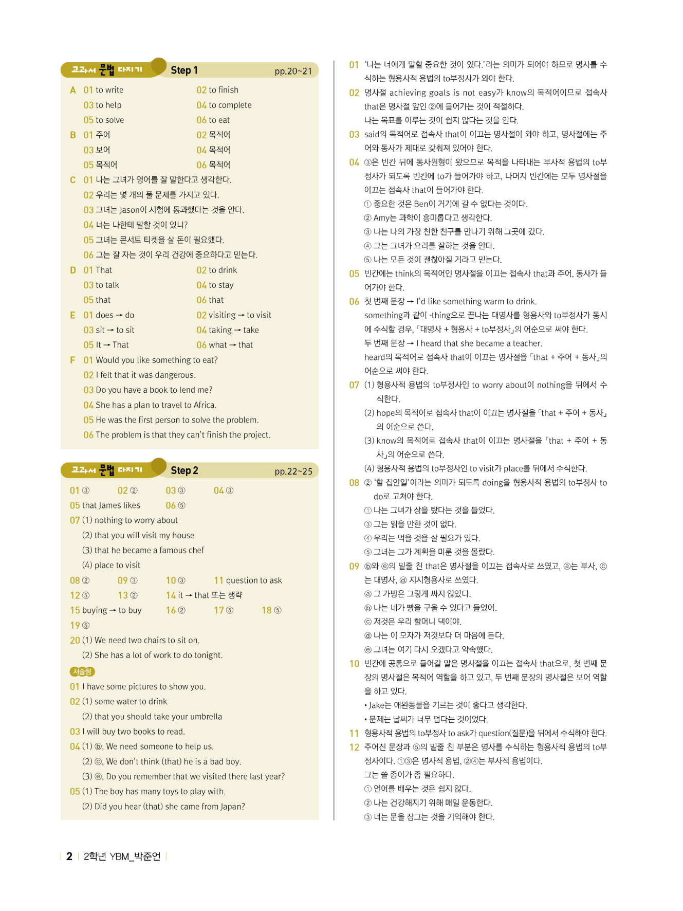 - 교과서 문법 다지기 : STEP 1 & 2 & 서술형