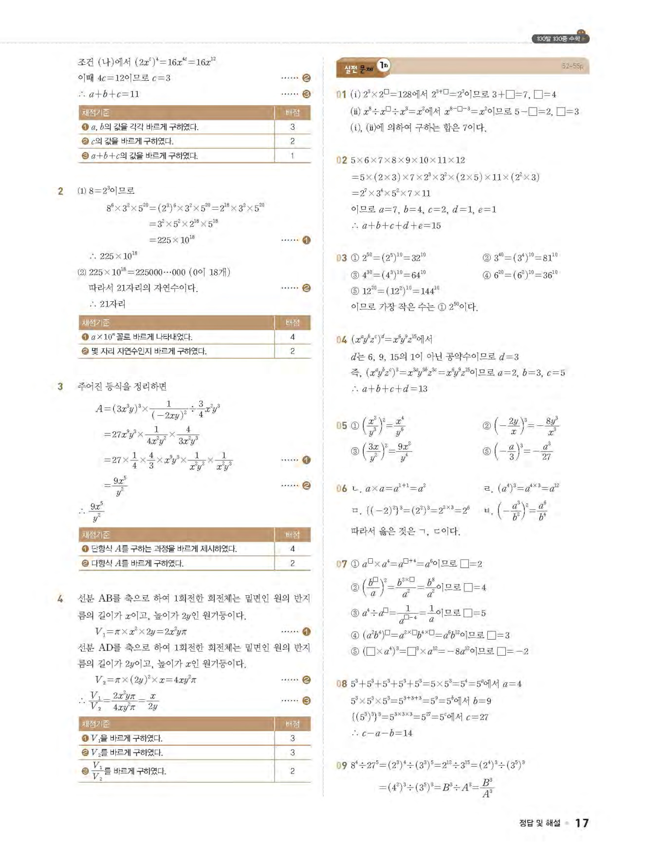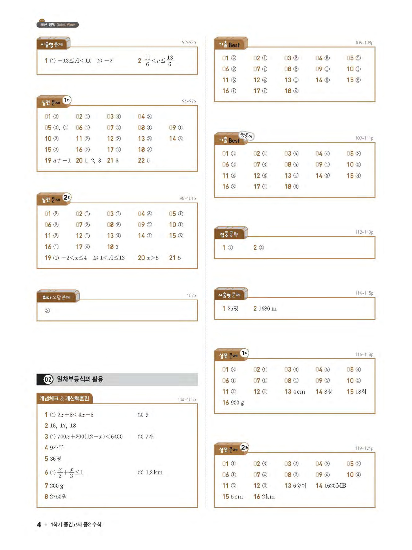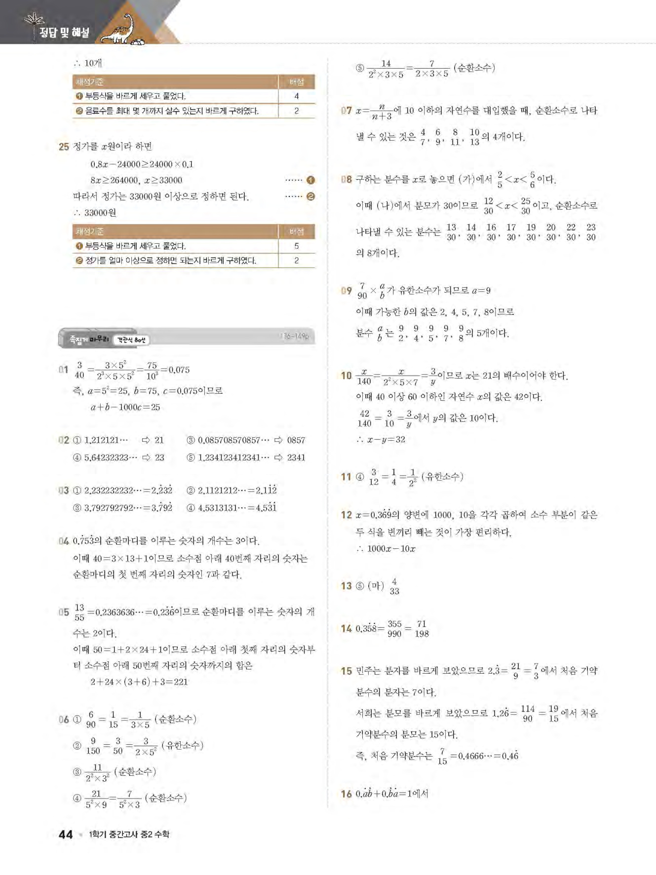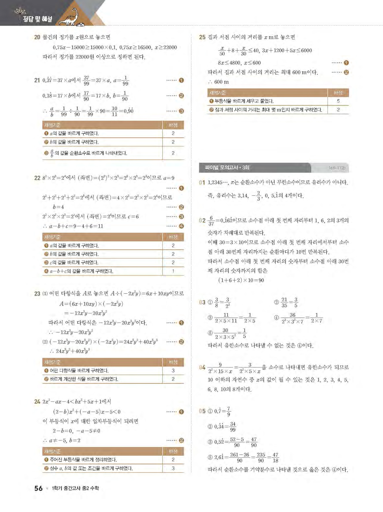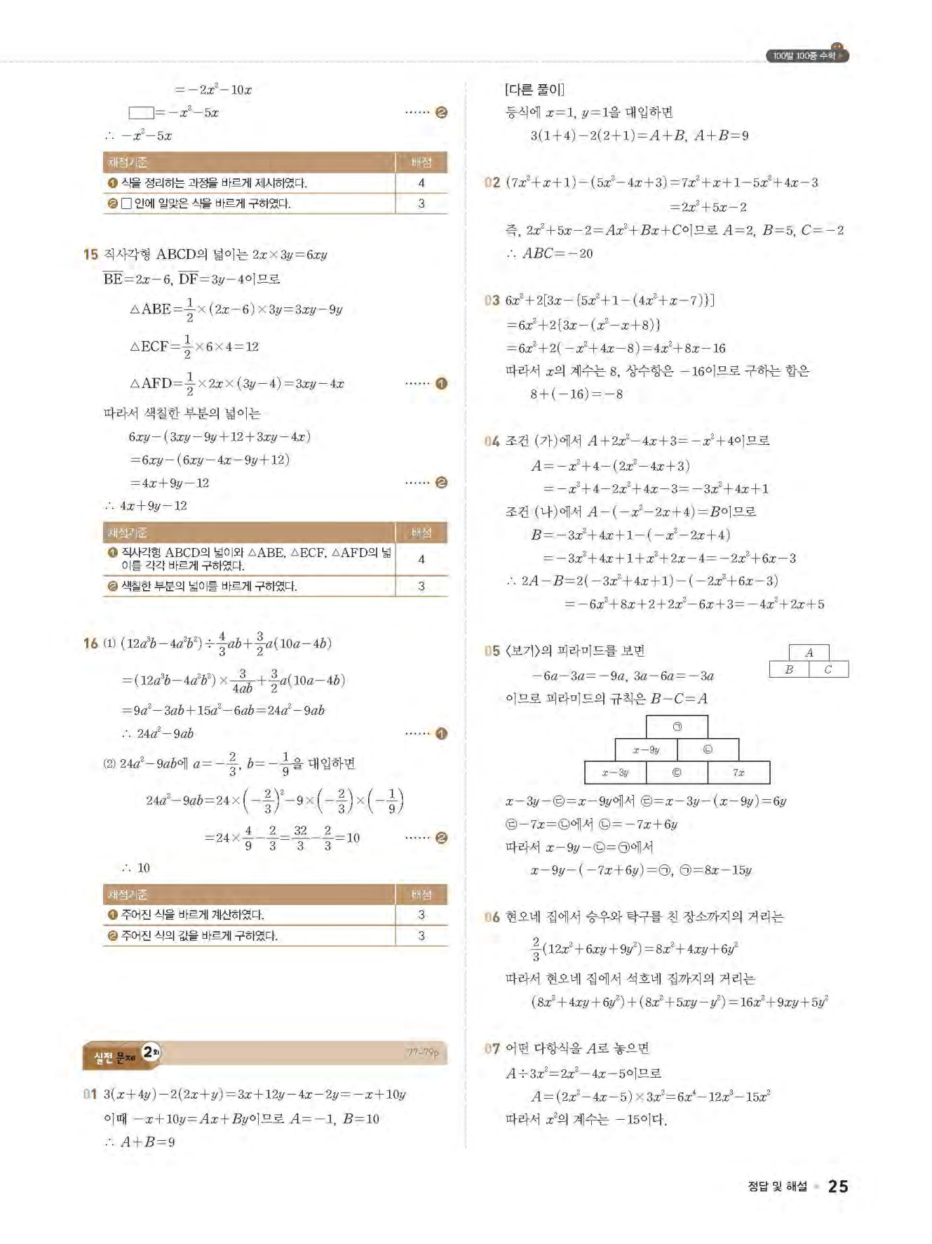 2025 100발100중 중등기출 수학 2-1 중간 정답 및 해설.pdf