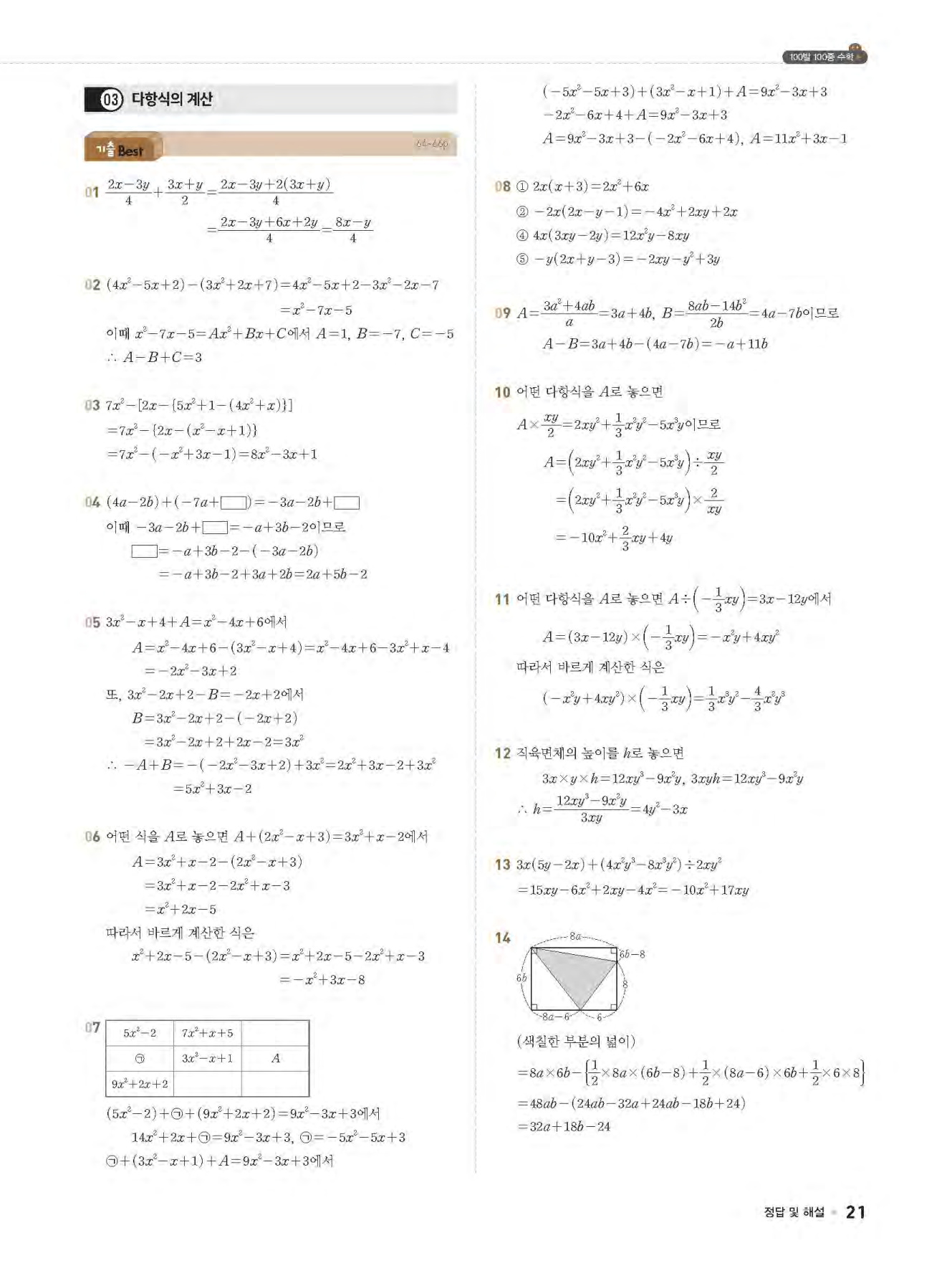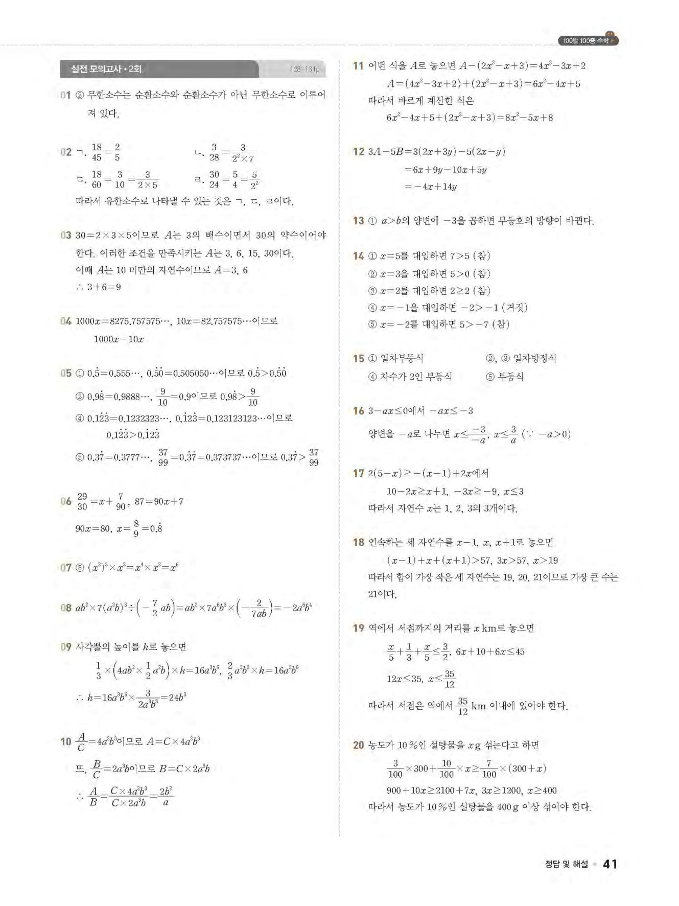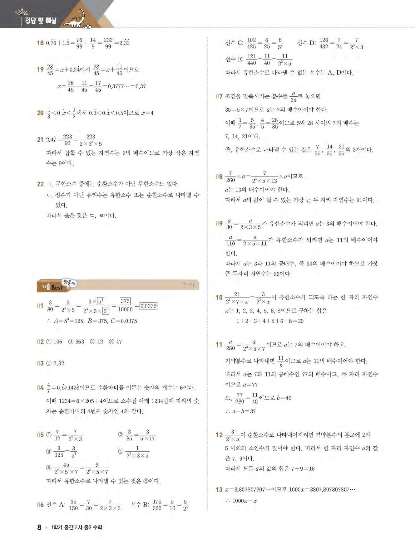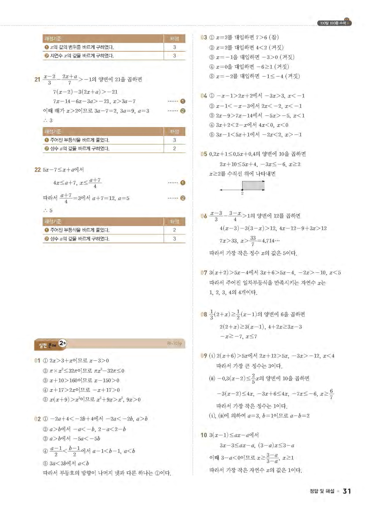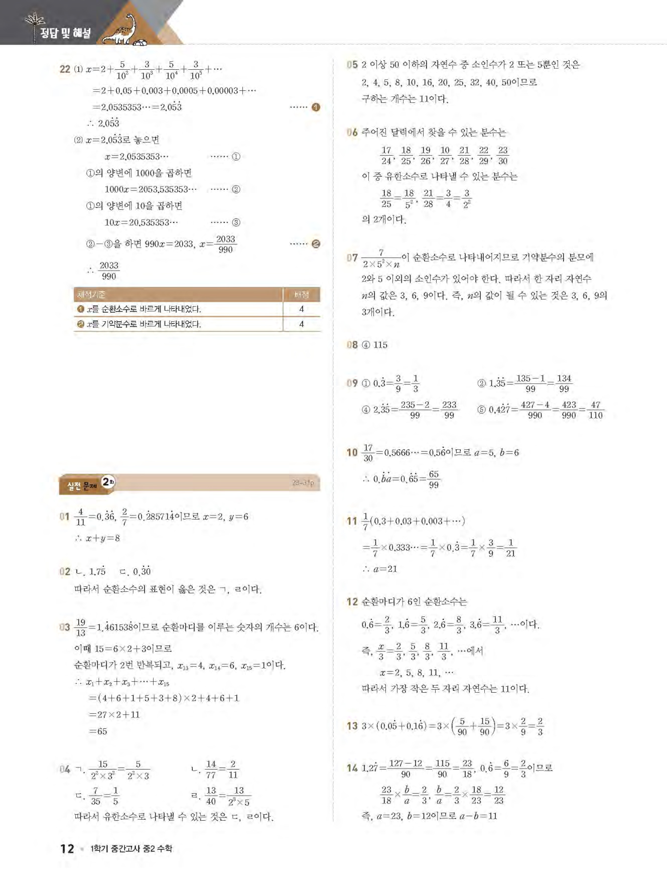 2025 100발100중 중등기출 수학 2-1 중간 정답 및 해설.pdf