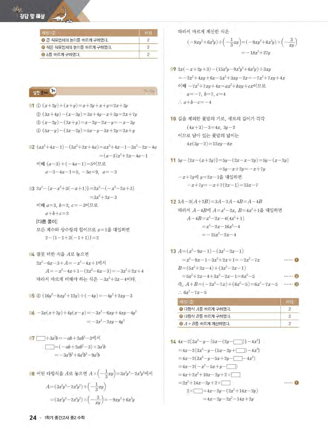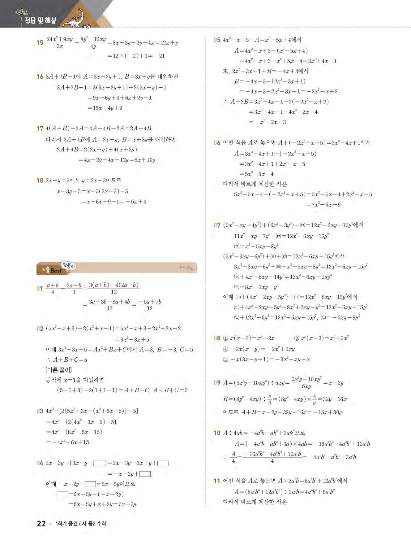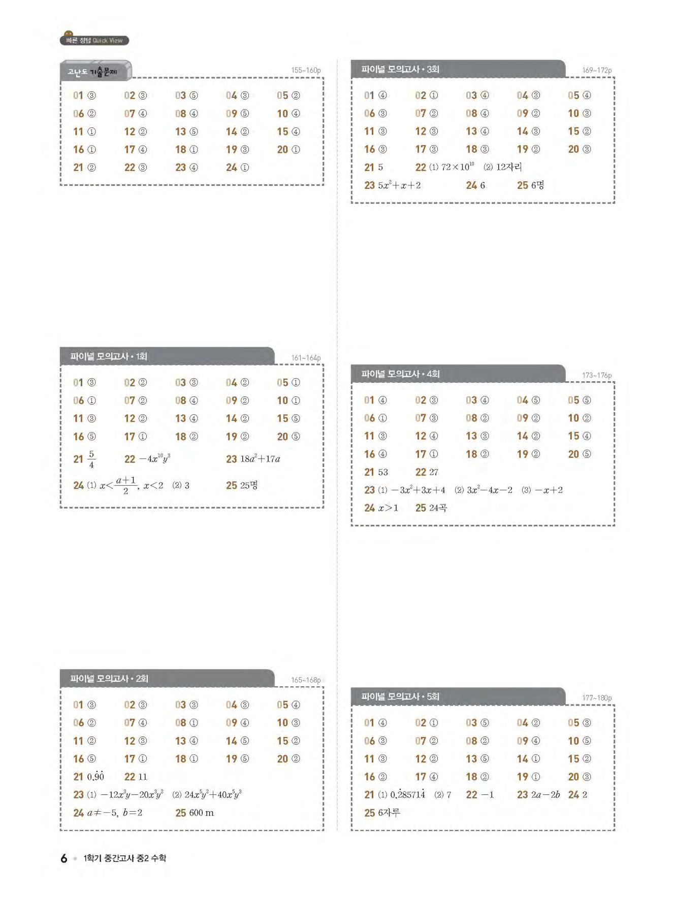 2025 백발백중 중등 수학 2-1 중간고사 답지 해설 PDF 사진답지