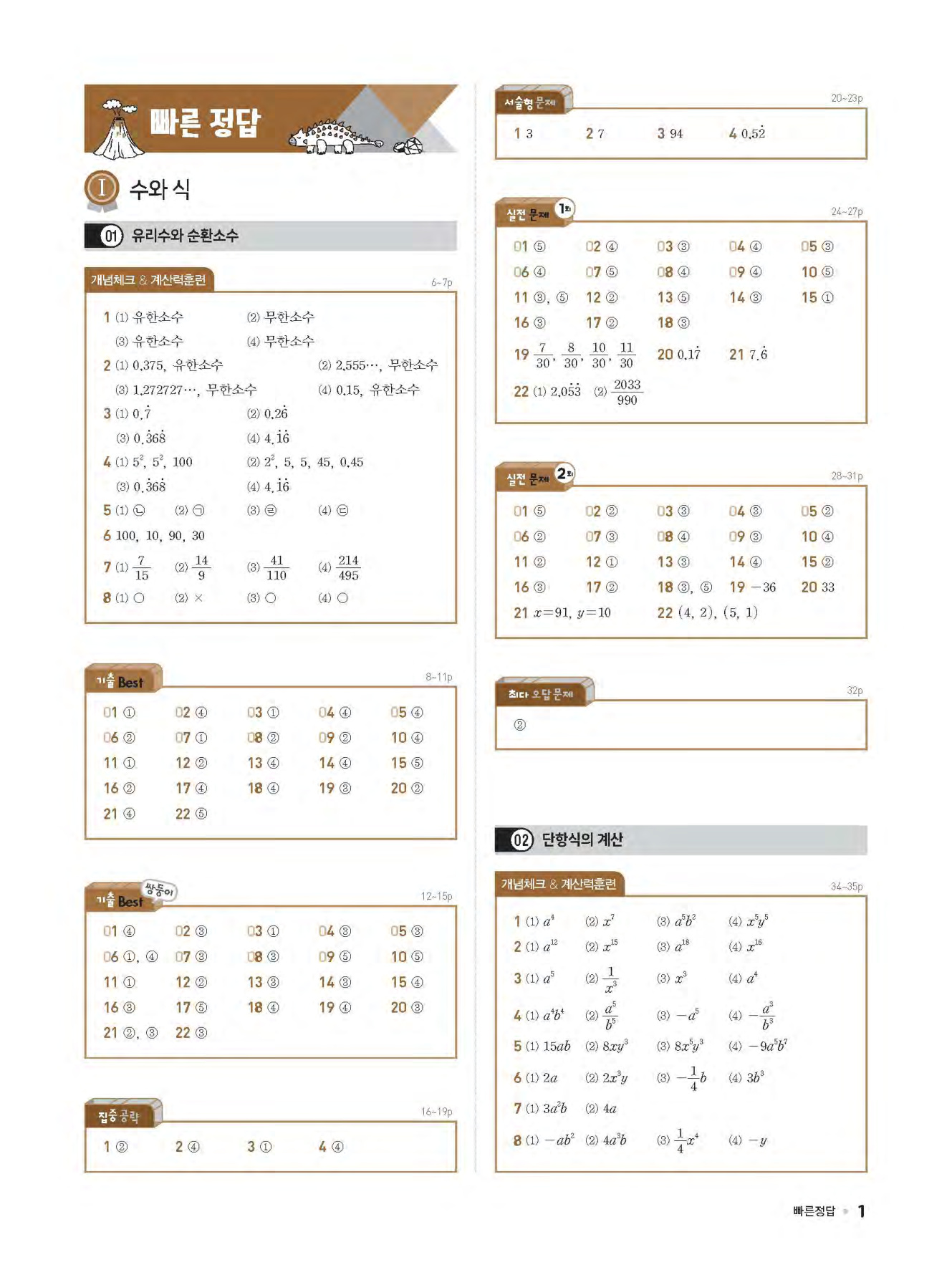 교과서 핵심 개념 정리(핵심 개념 정리+개념체크 & 계산력훈련)