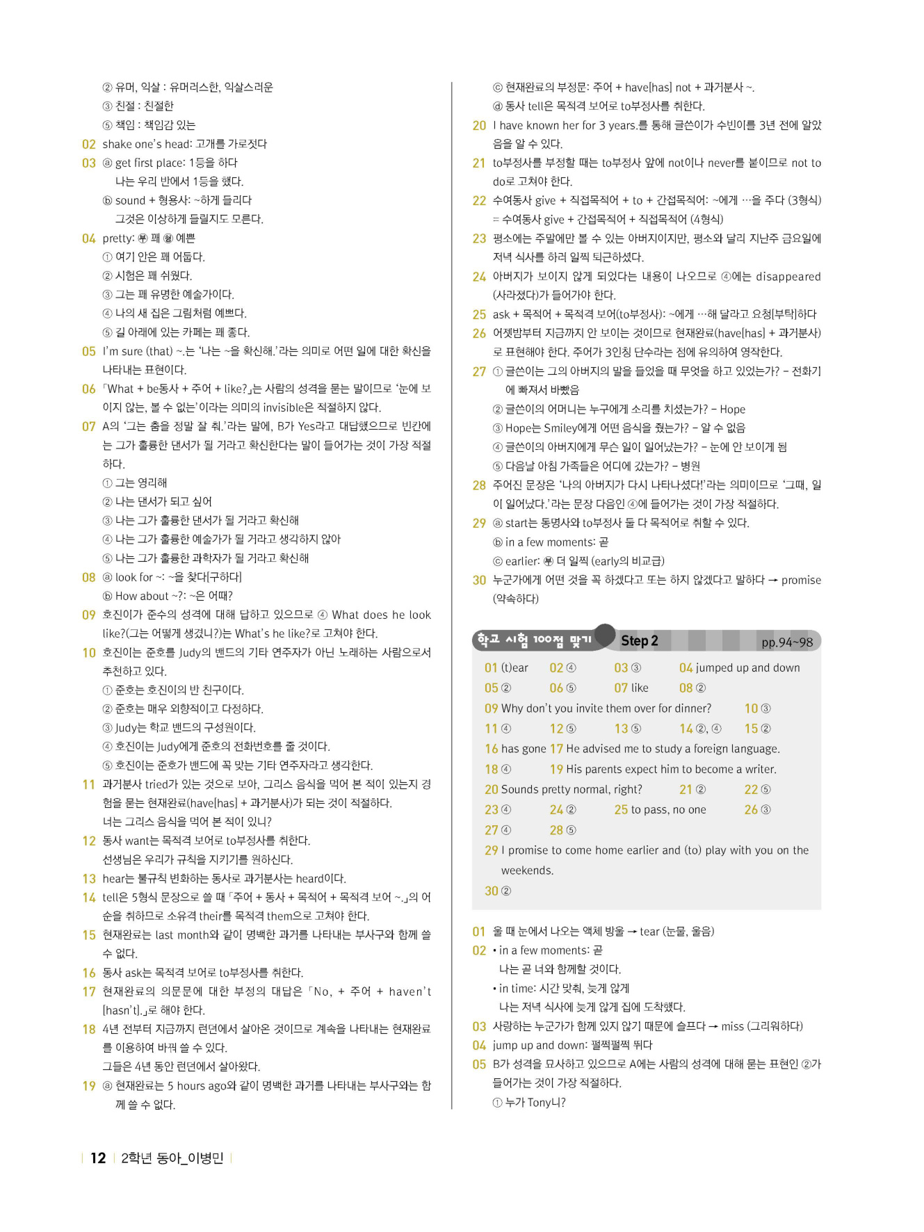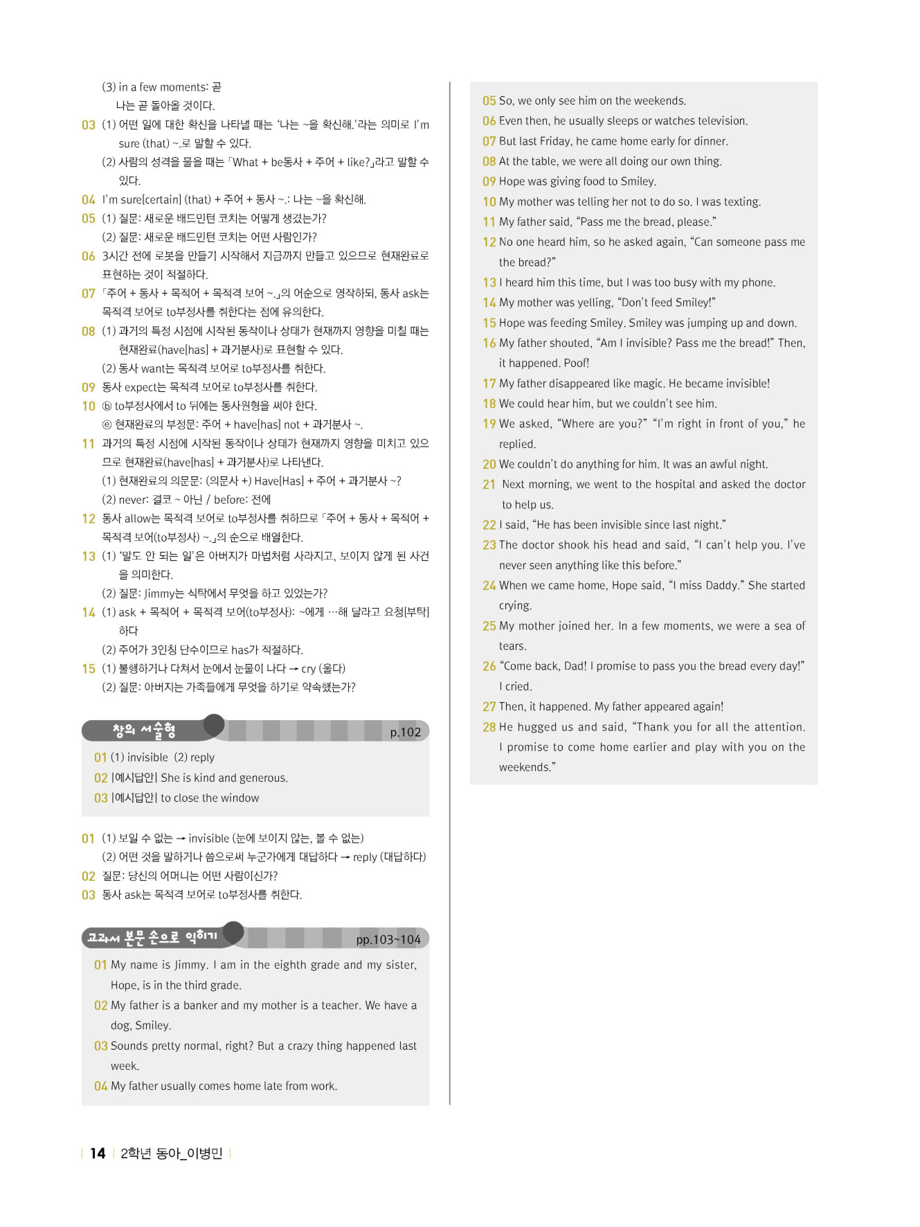 - 시험에 나올 만한 교과서 핵심 문장 복습 코너 수록