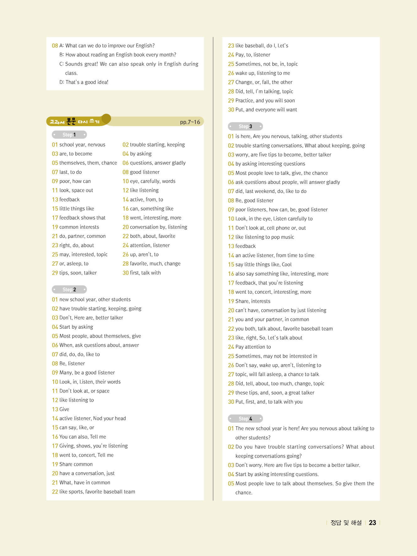 - 교과서 대화 다지기 : STEP 1 & 2