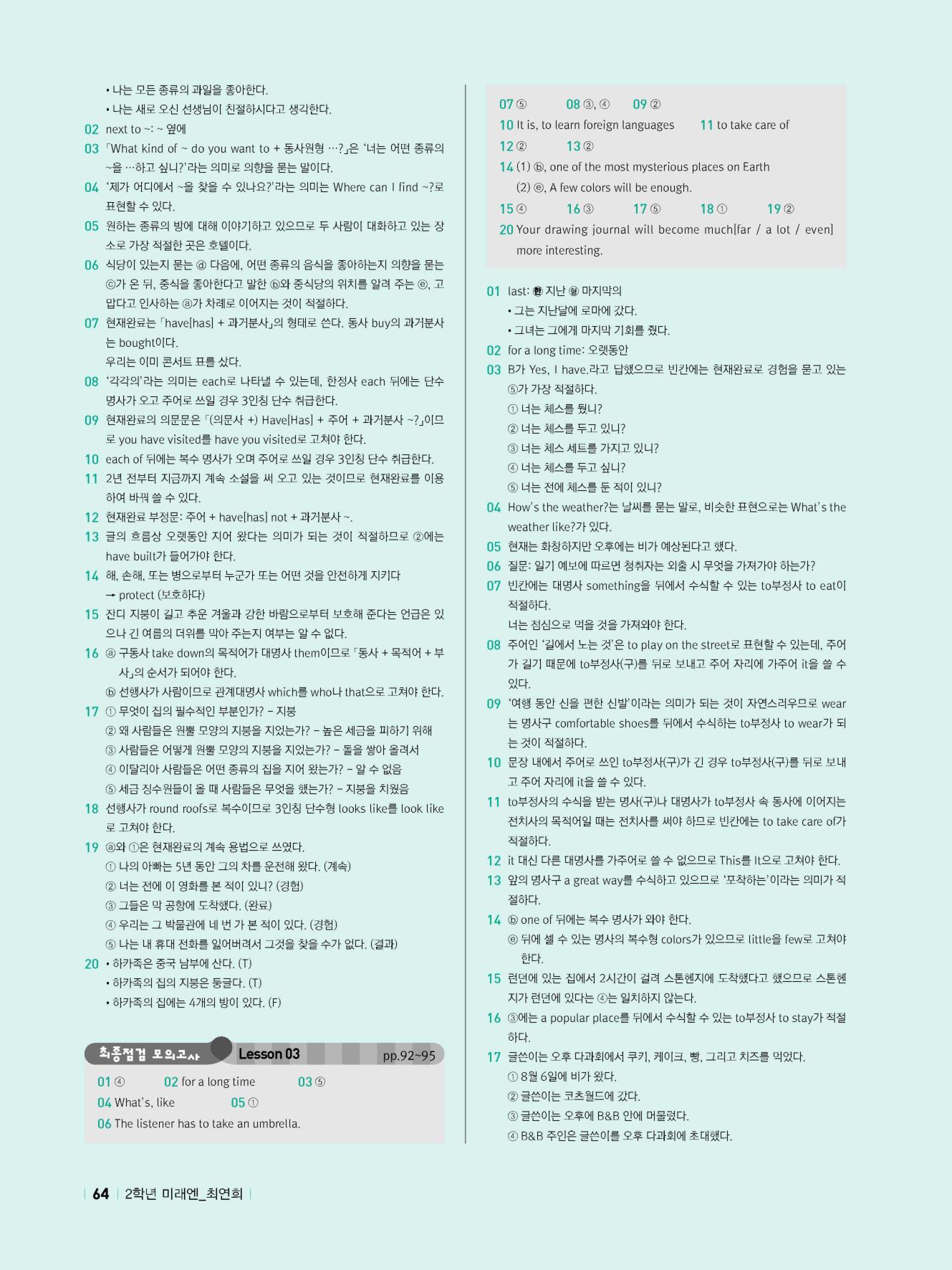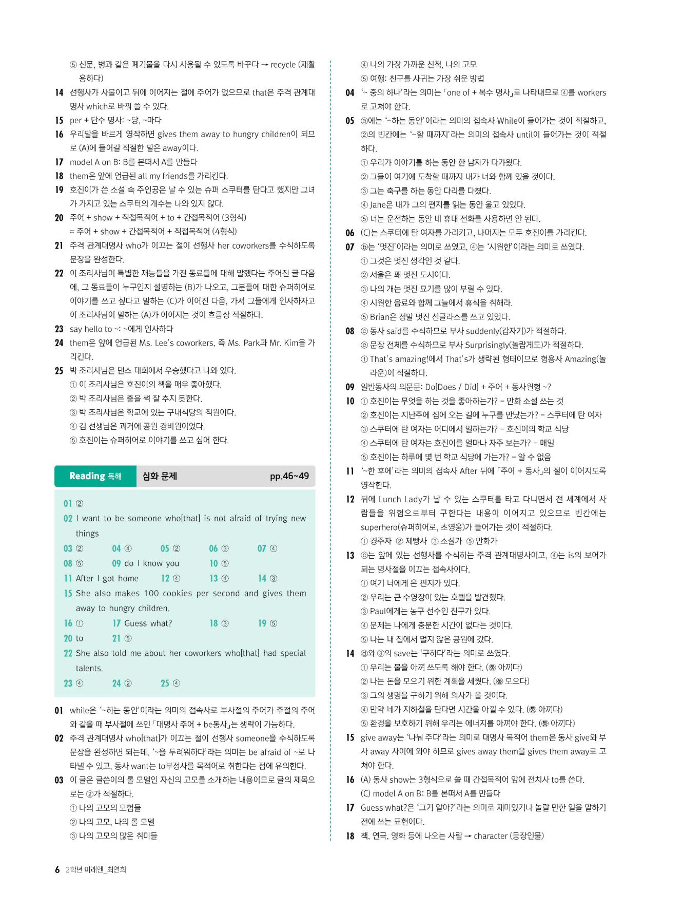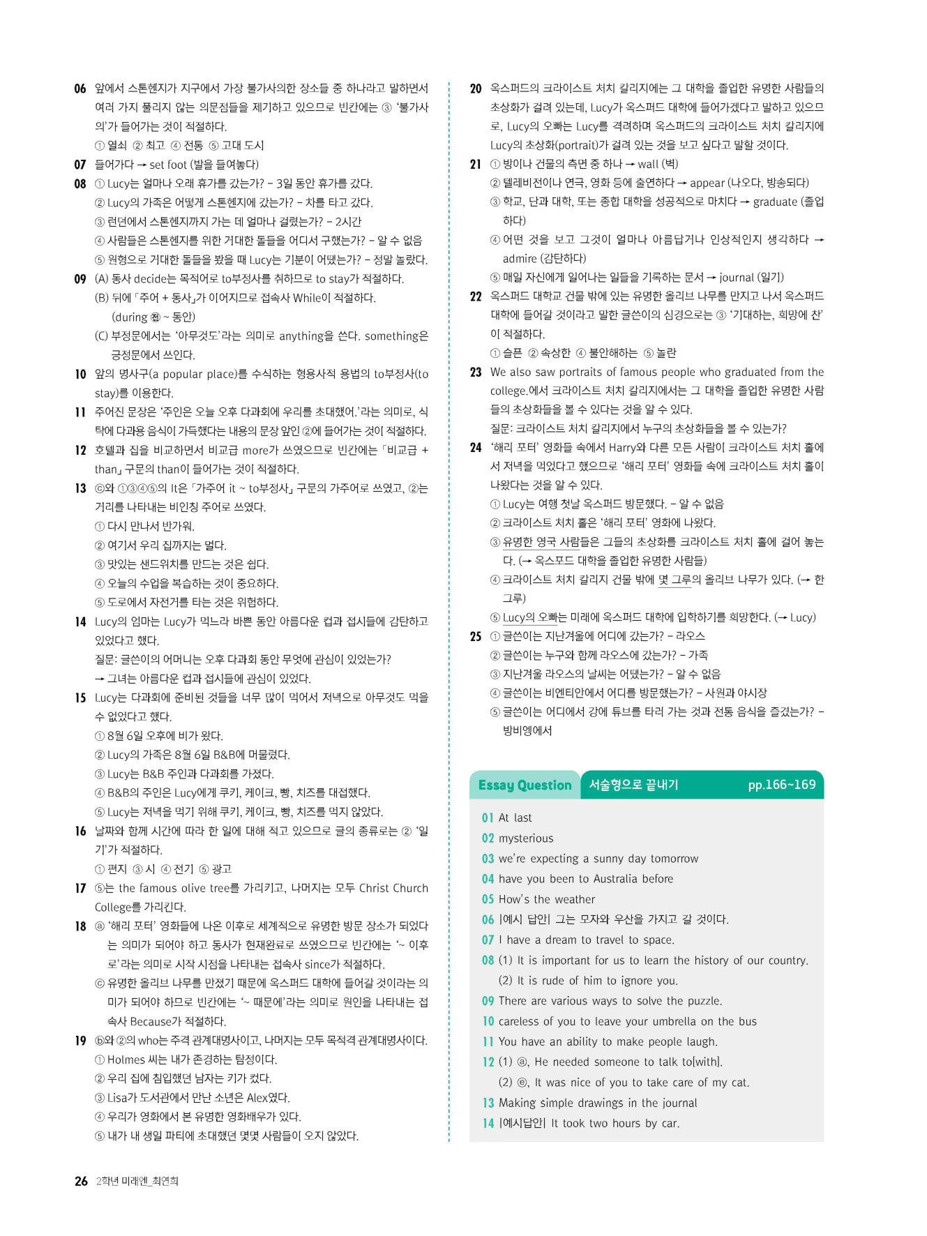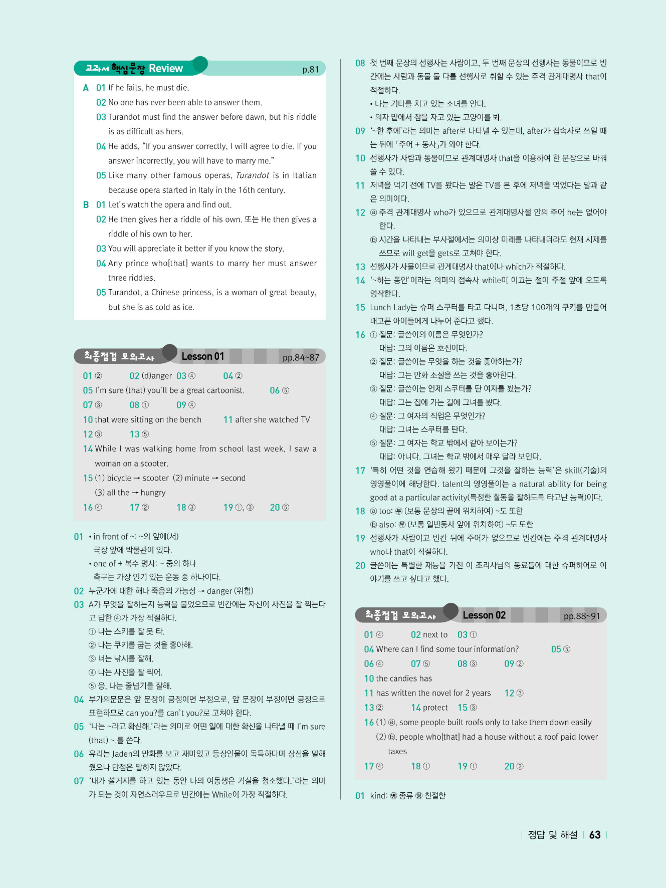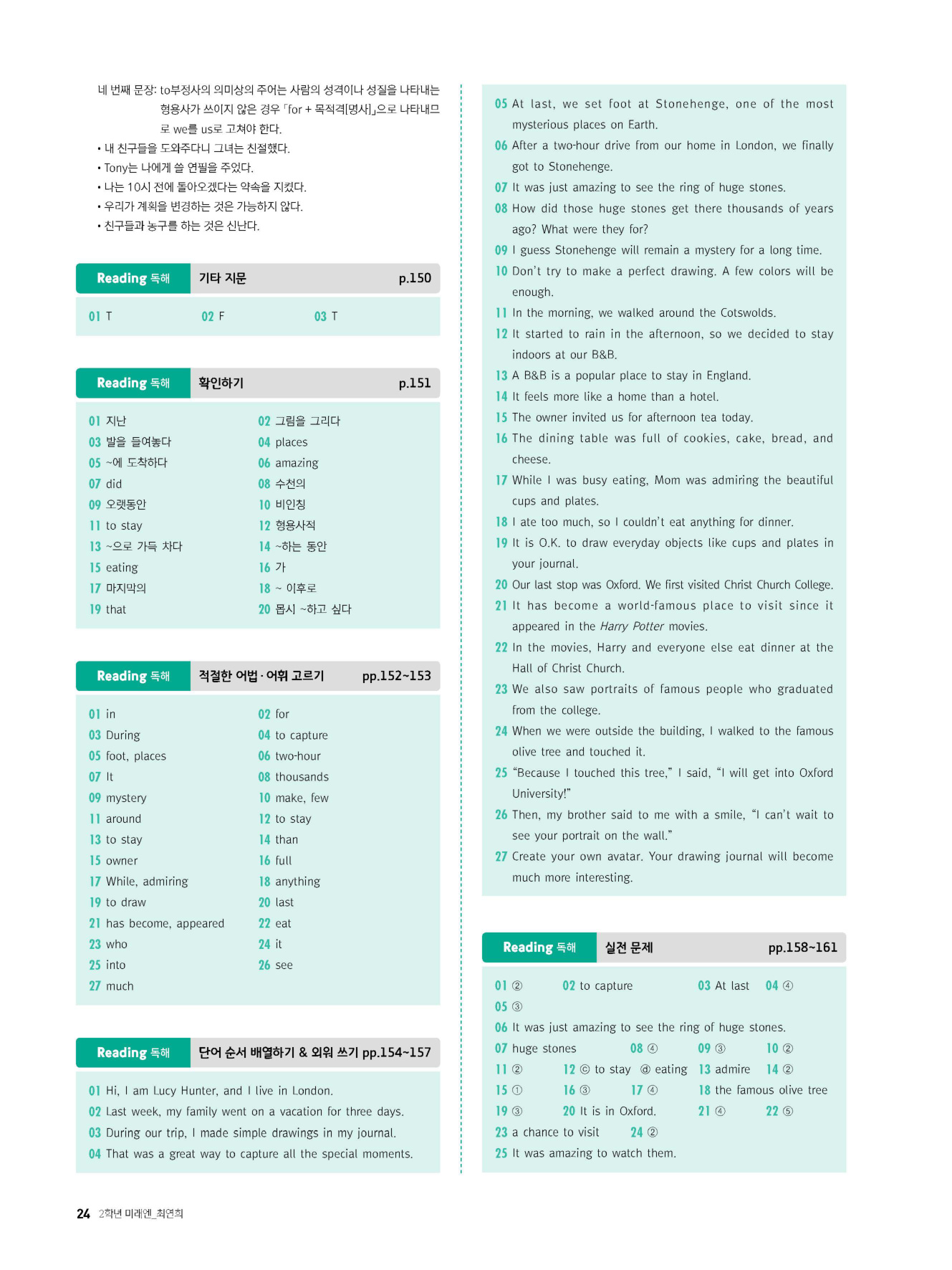 - 시험에 나올 만한 교과서 핵심 문장 복습 코너 수록