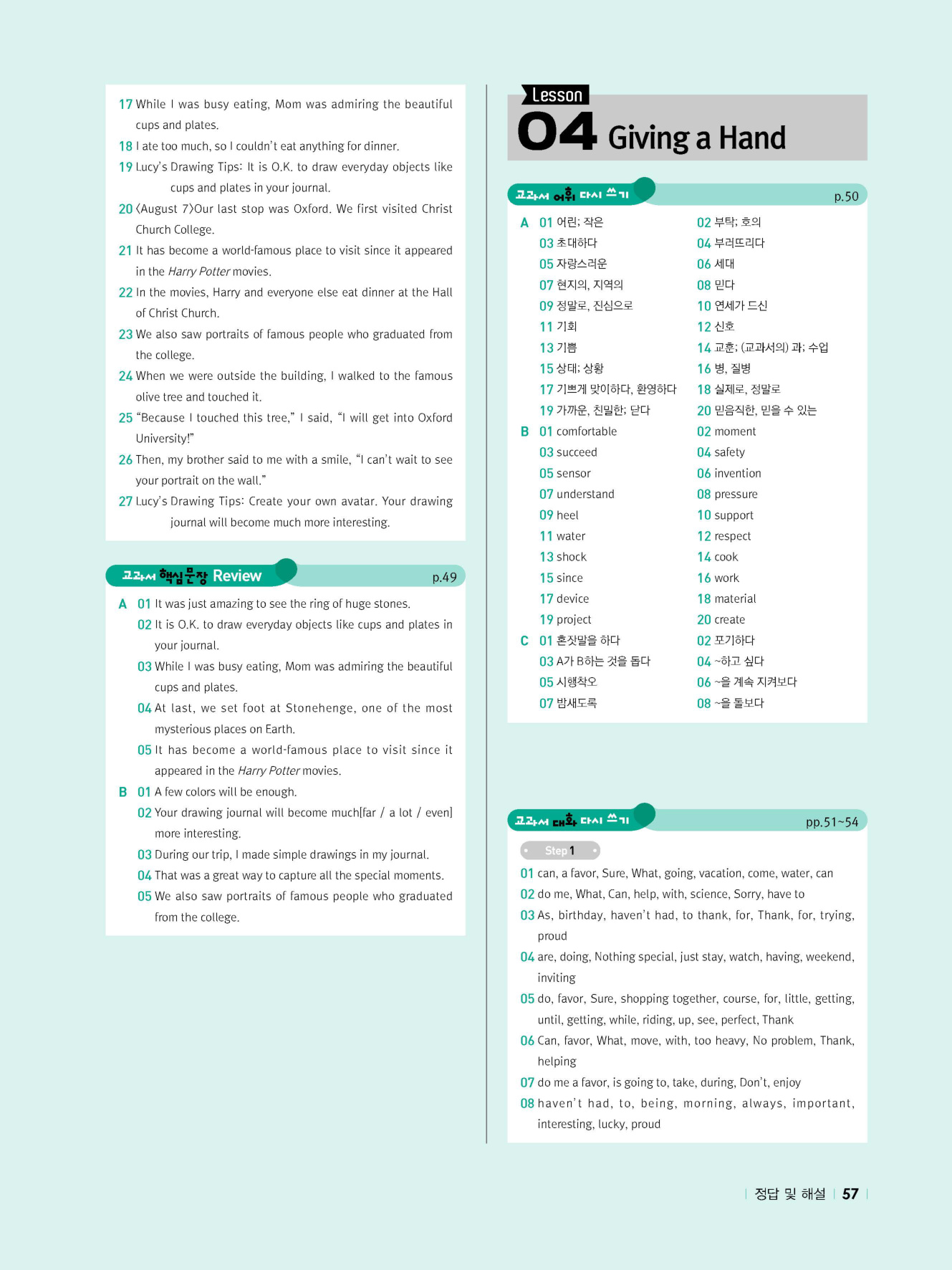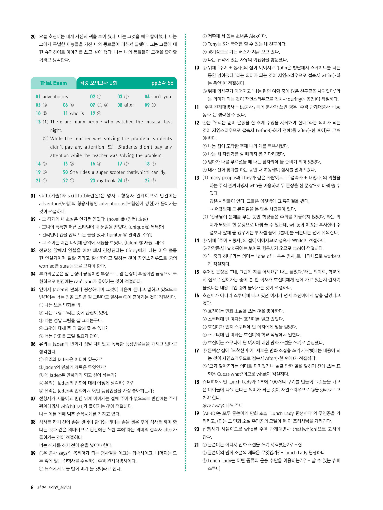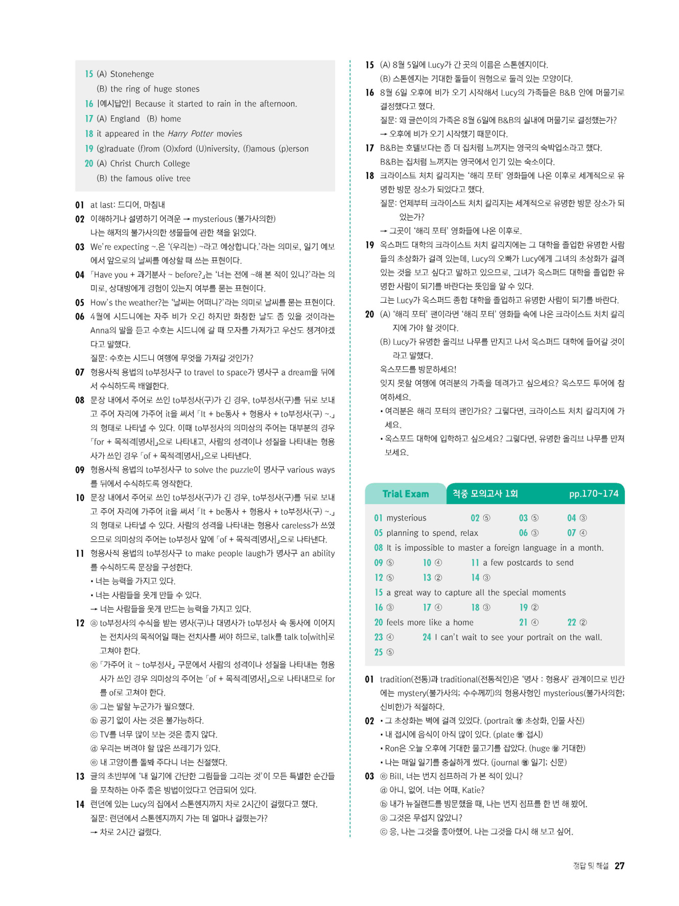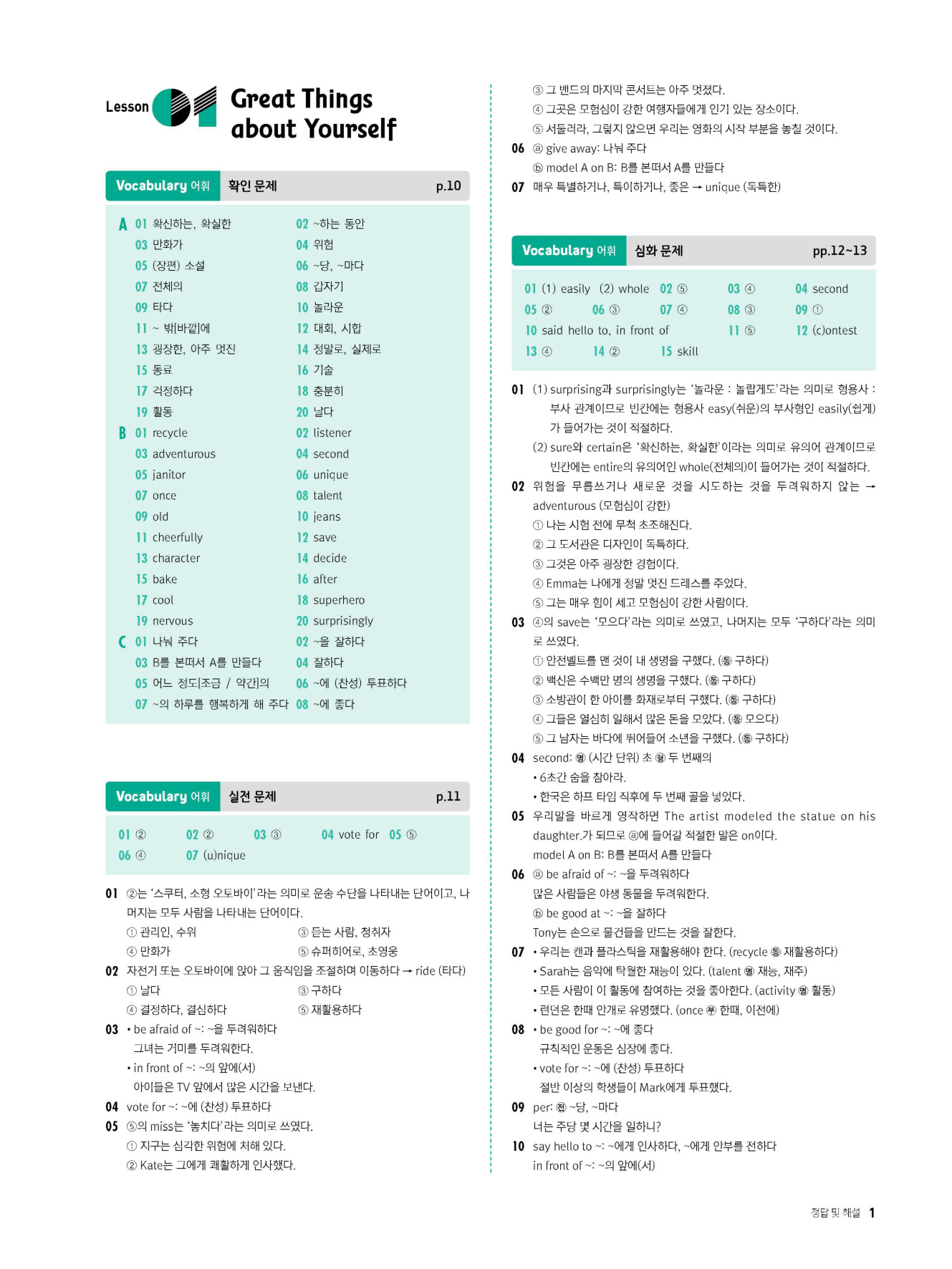 - 시험에 나올 만한 교과서 핵심 문장 복습 코너 수록