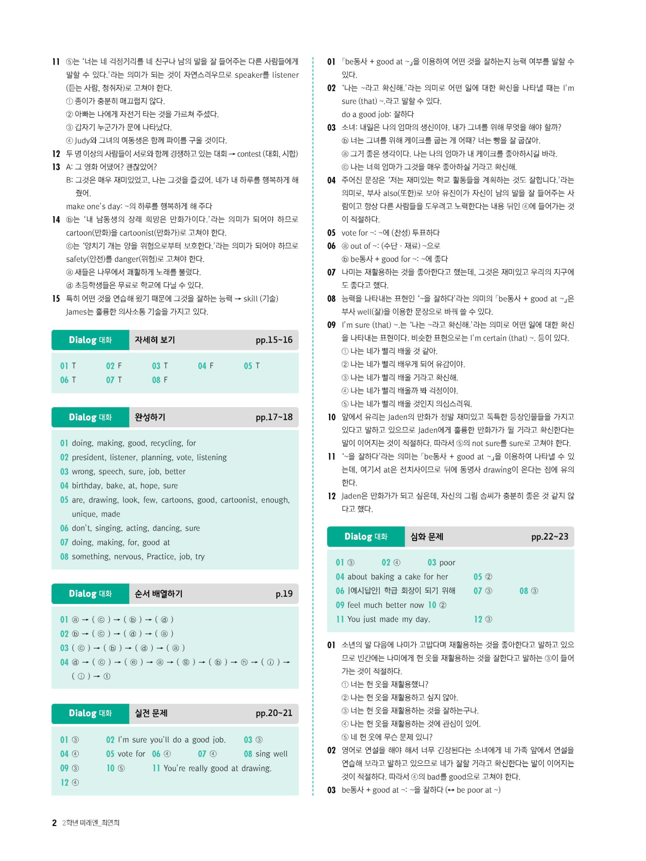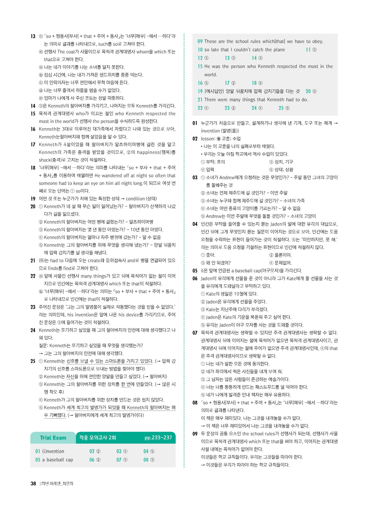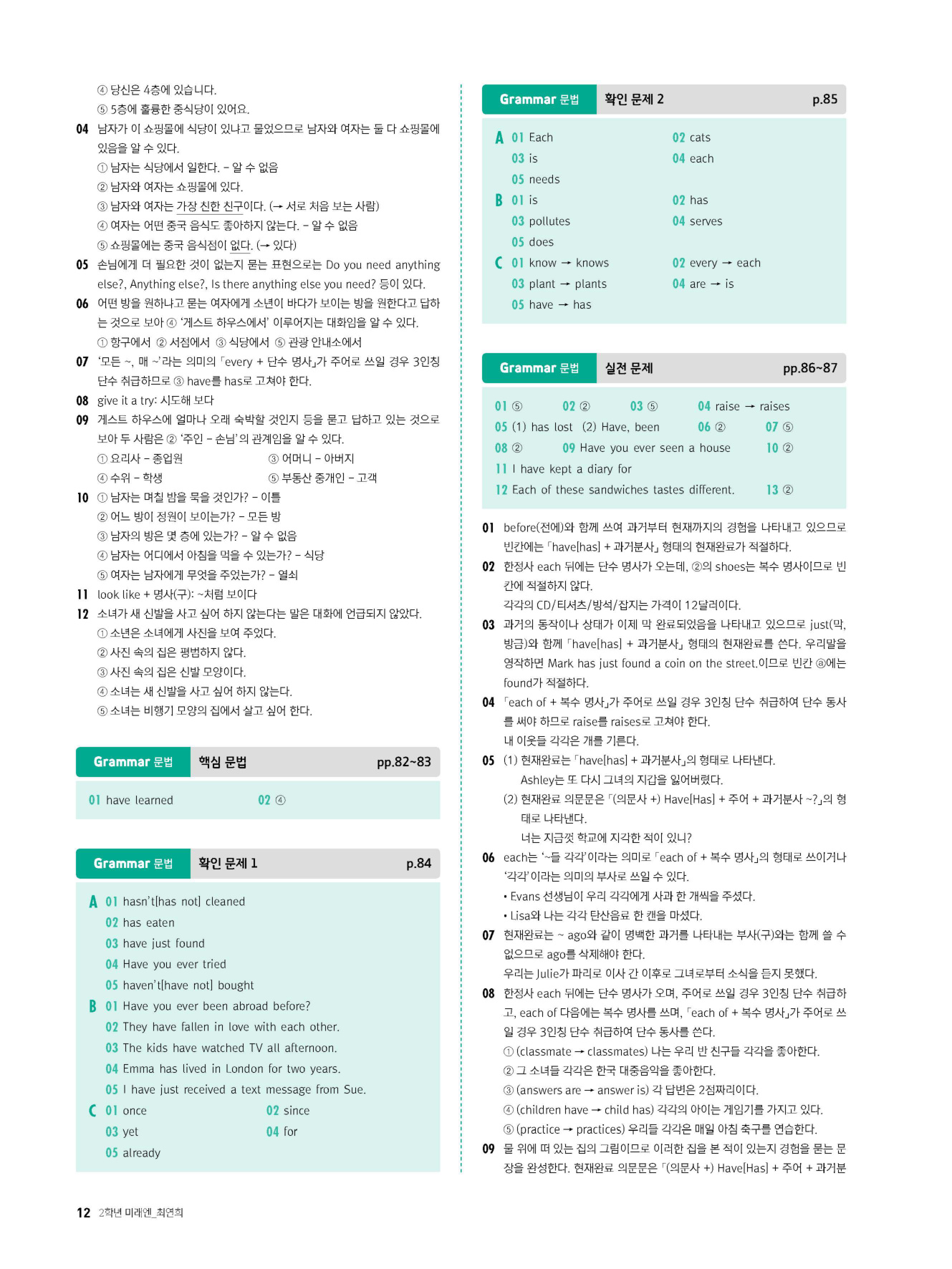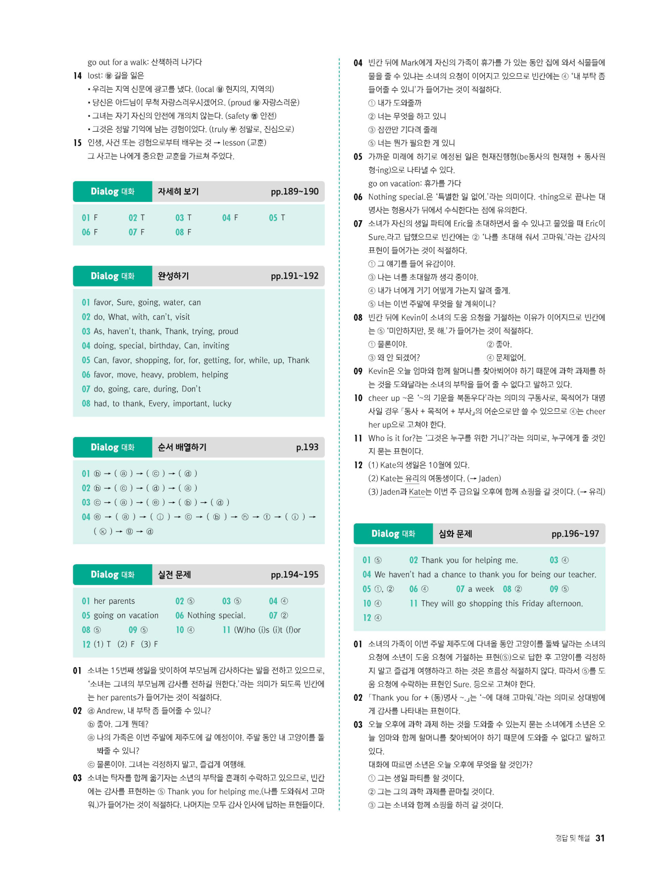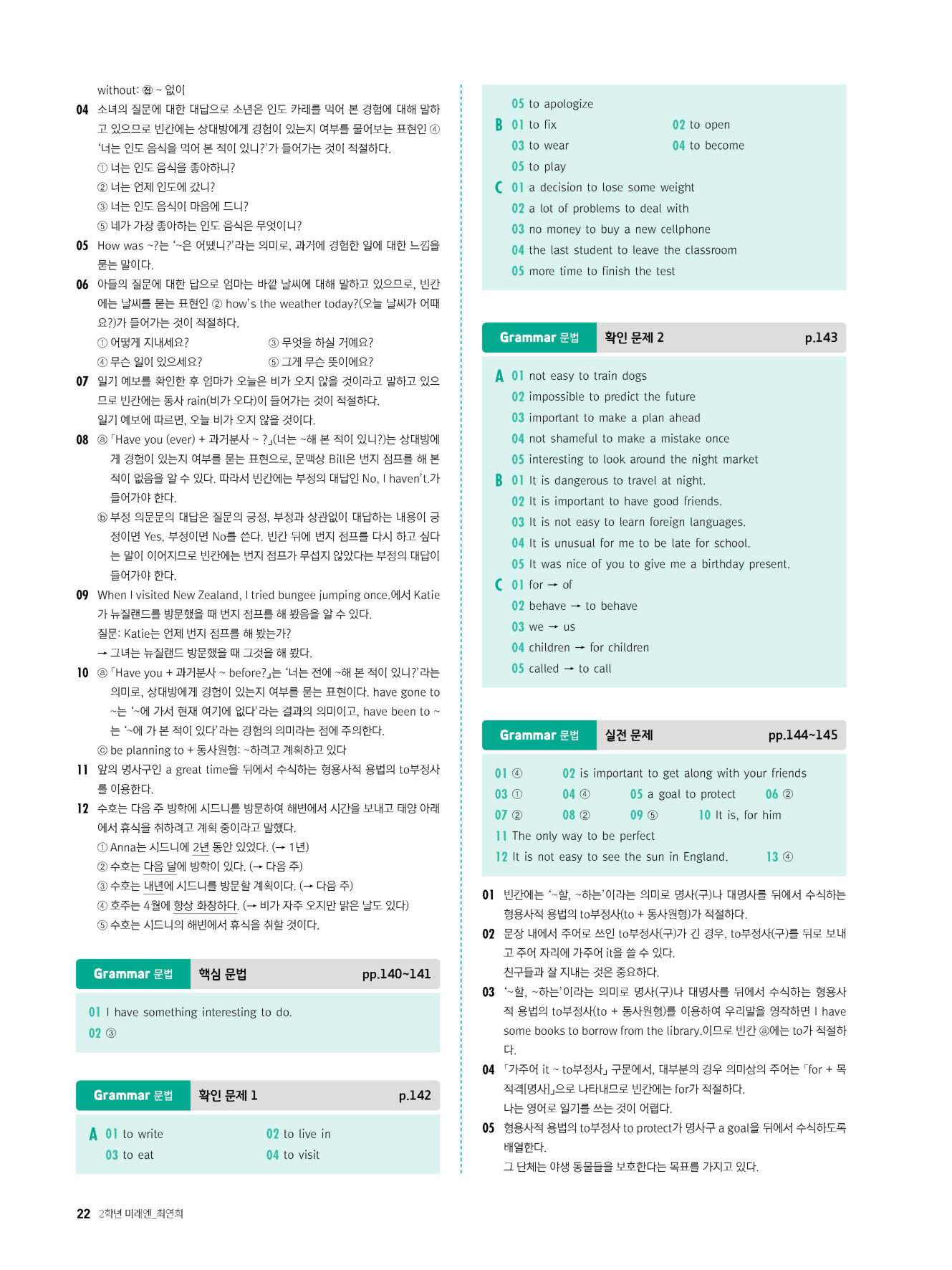 - 시험에 나올 만한 교과서 핵심 문장 복습 코너 수록