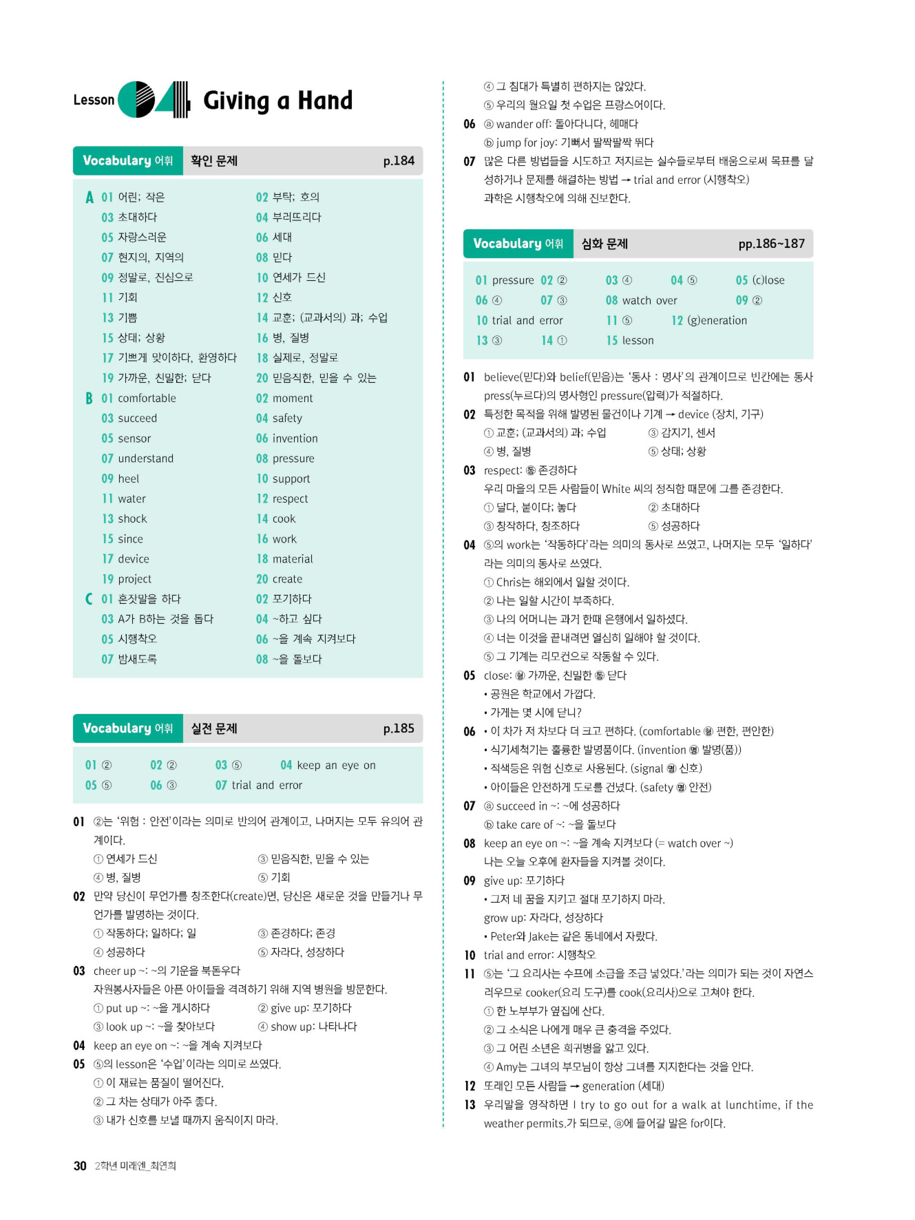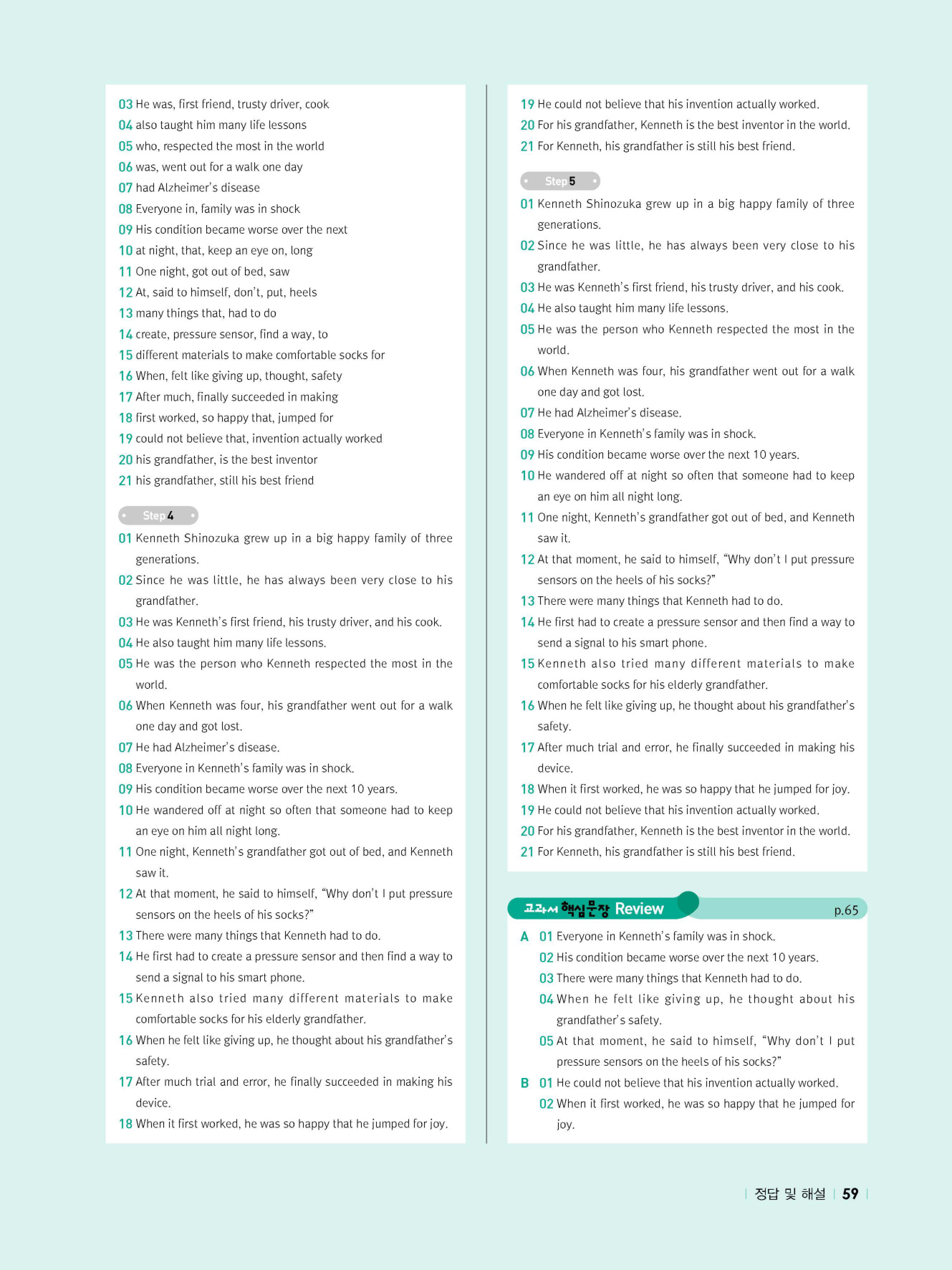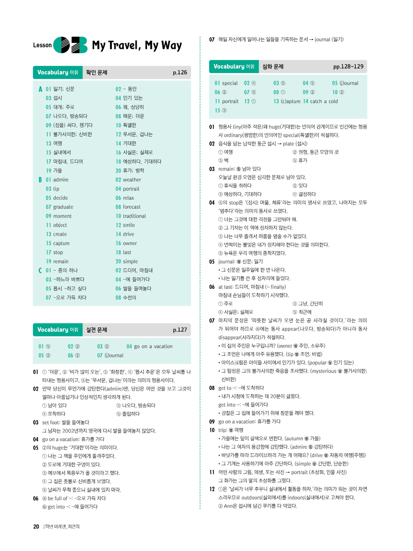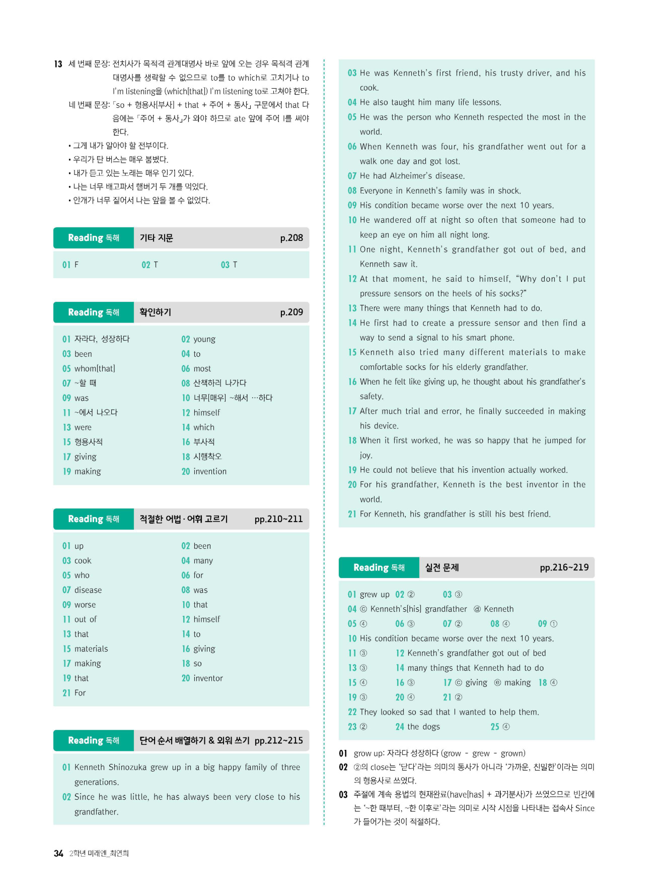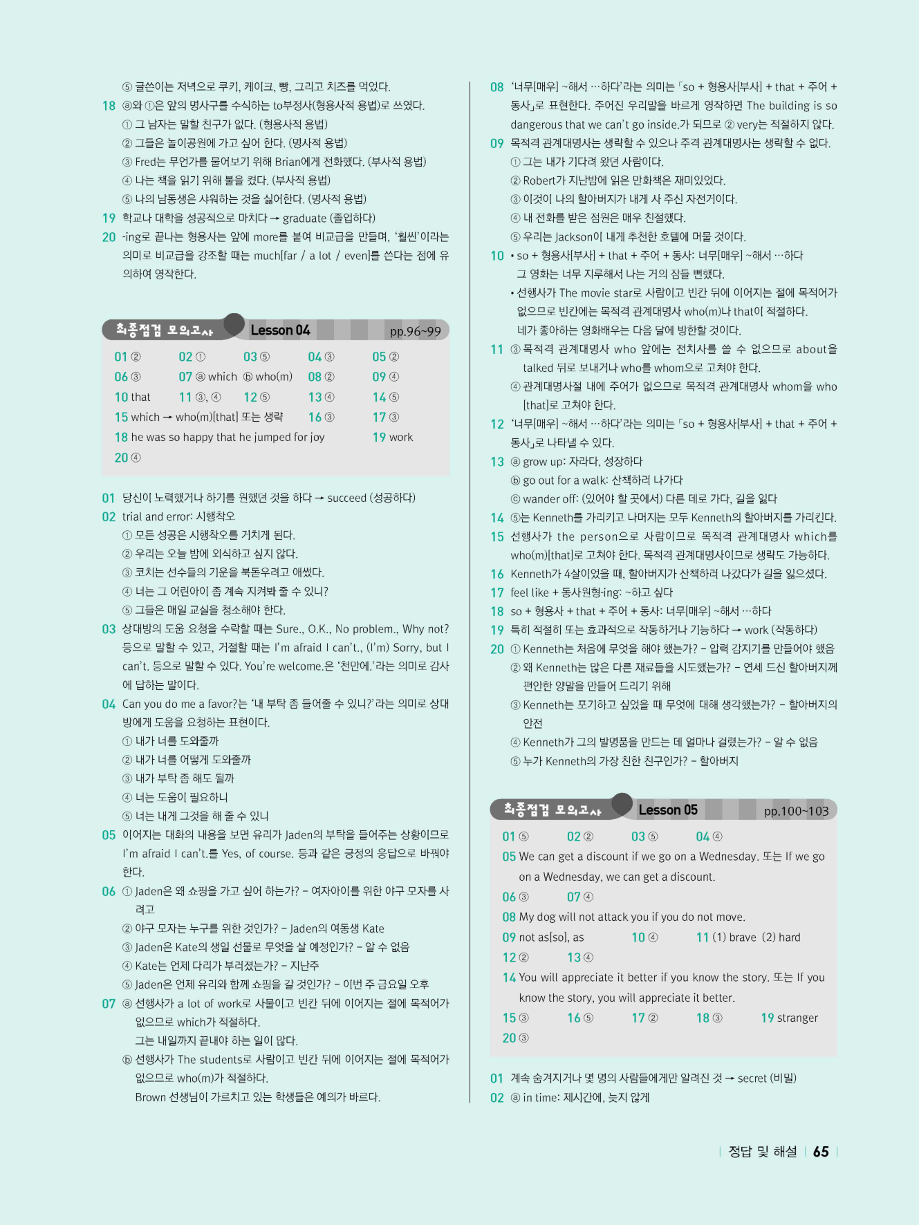 - 시험에 나올 만한 교과서 핵심 문장 복습 코너 수록