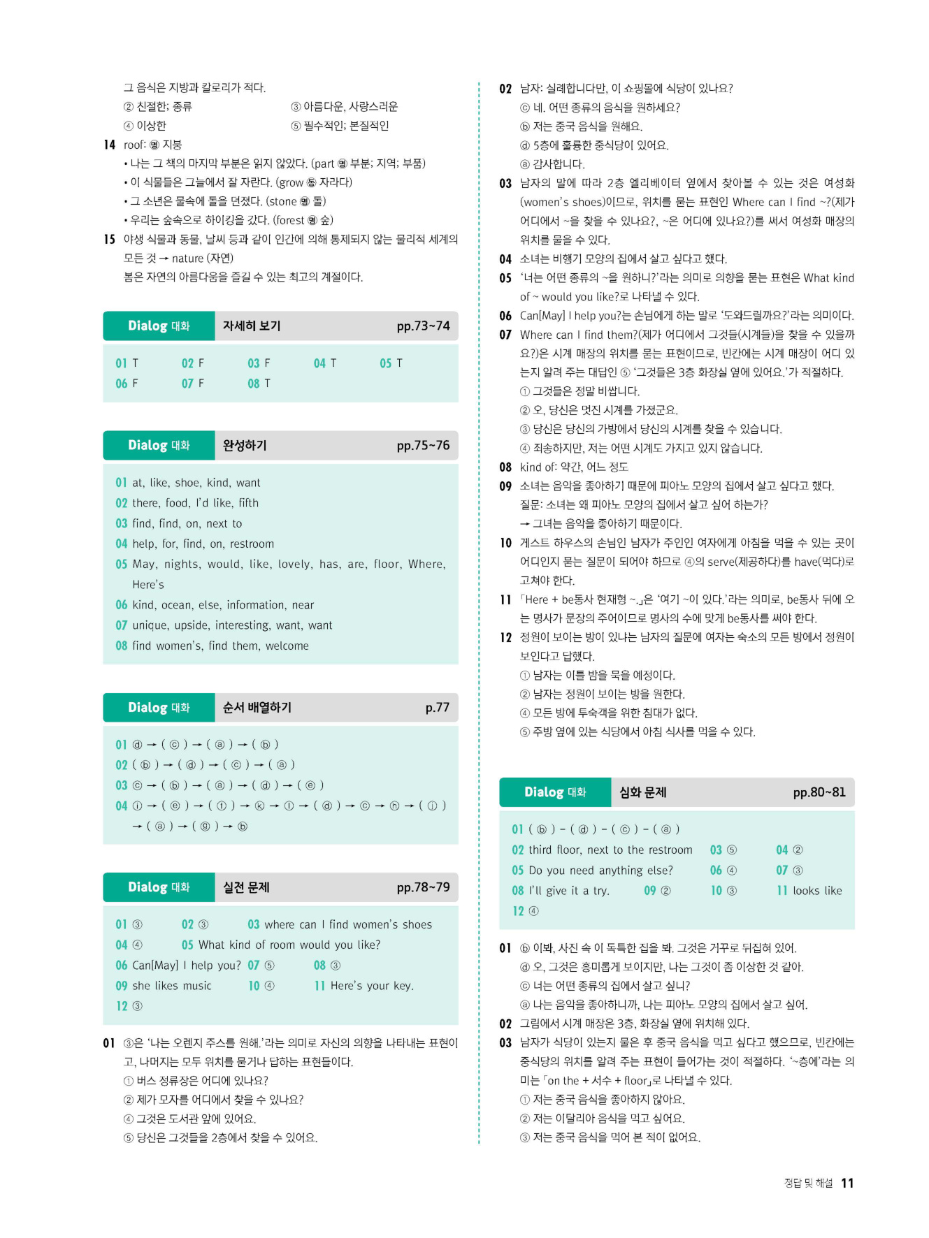 - 핵심 대화, 자세히 보기, 완성하기, 순서 배열하기