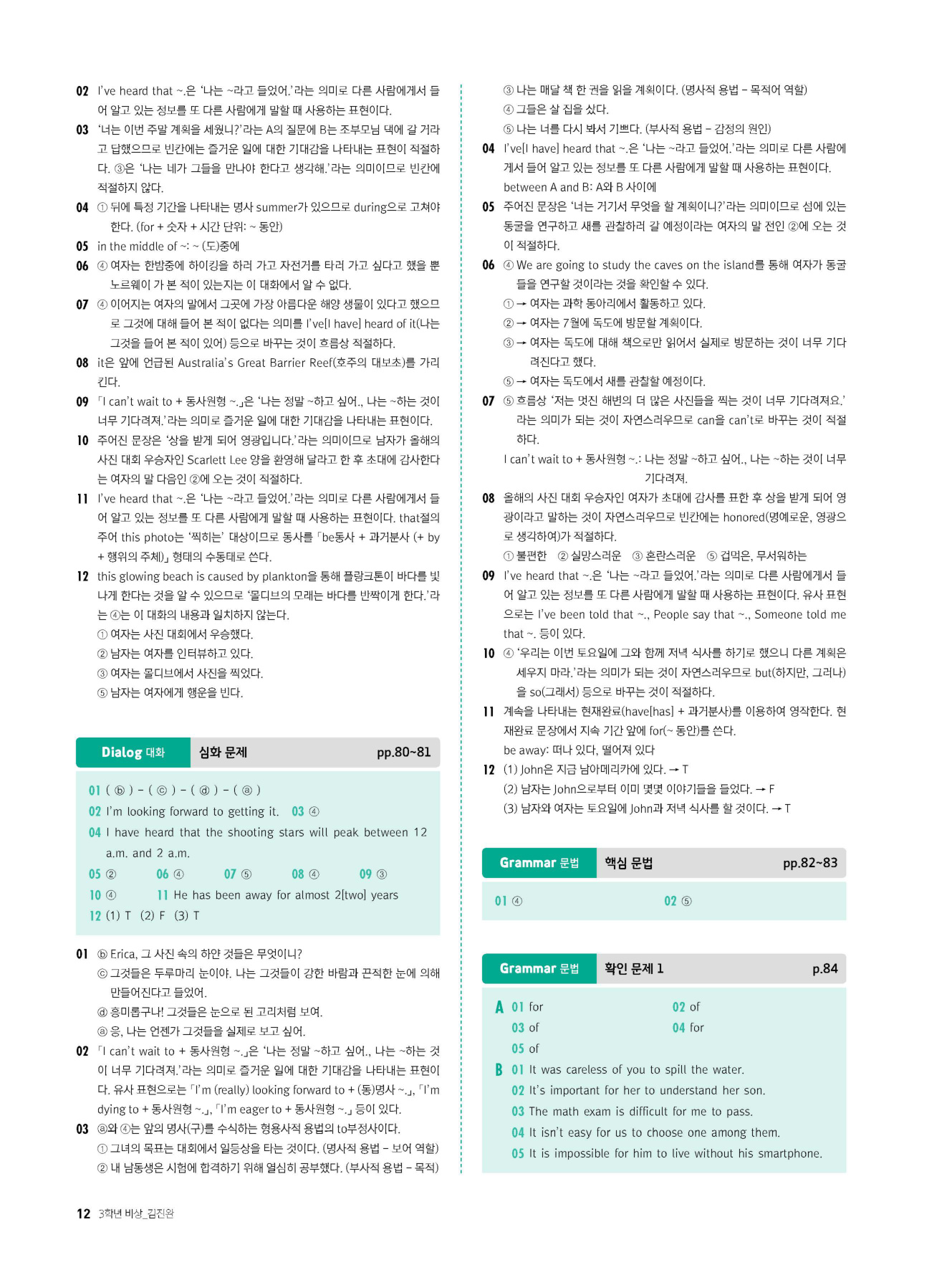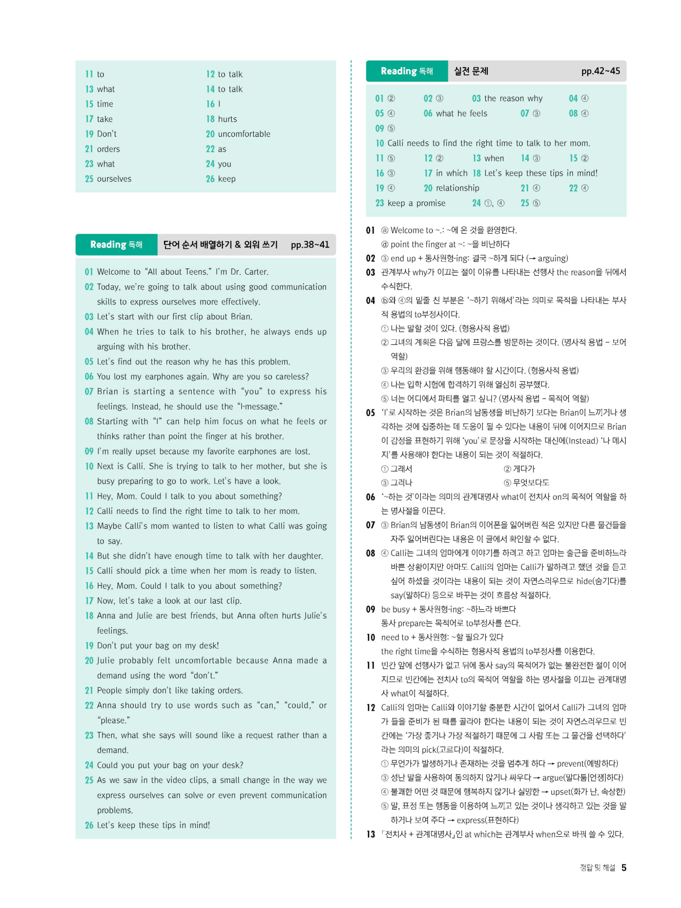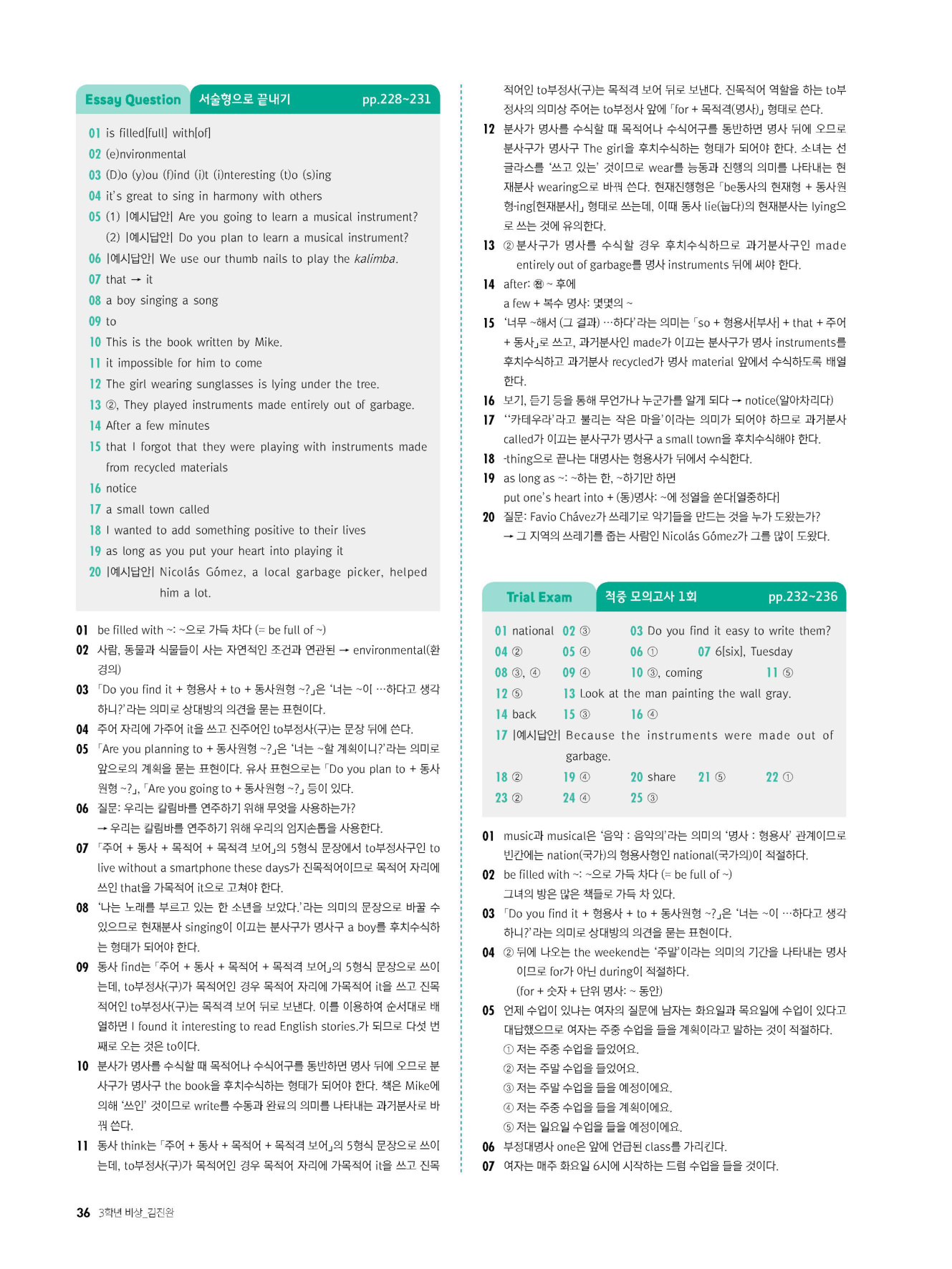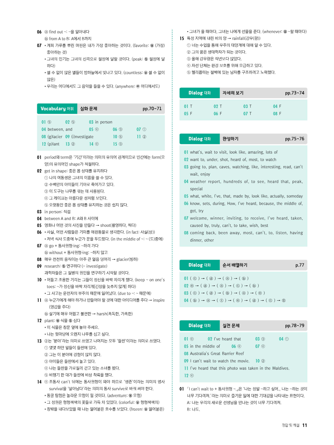 - 시험에 나올 만한 교과서 핵심 문장 복습 코너 수록