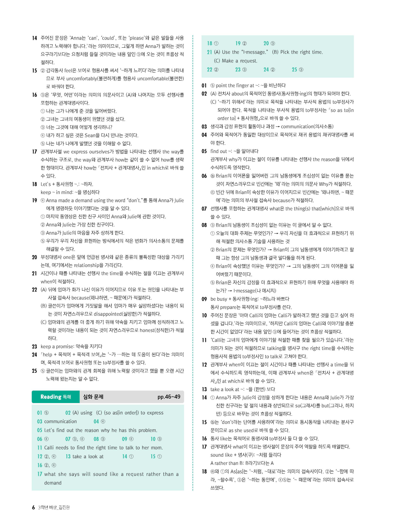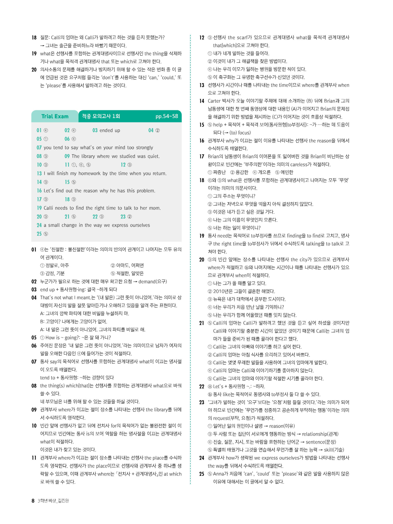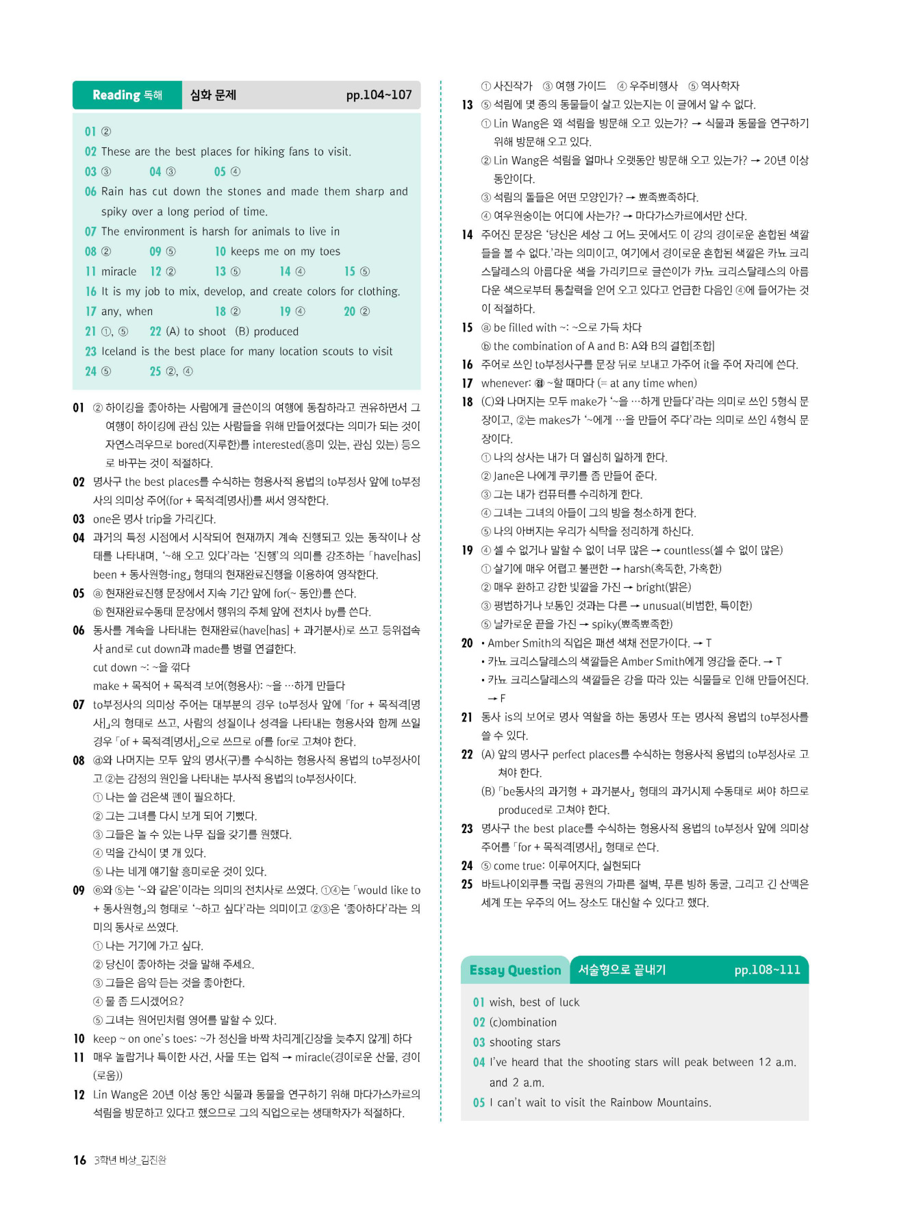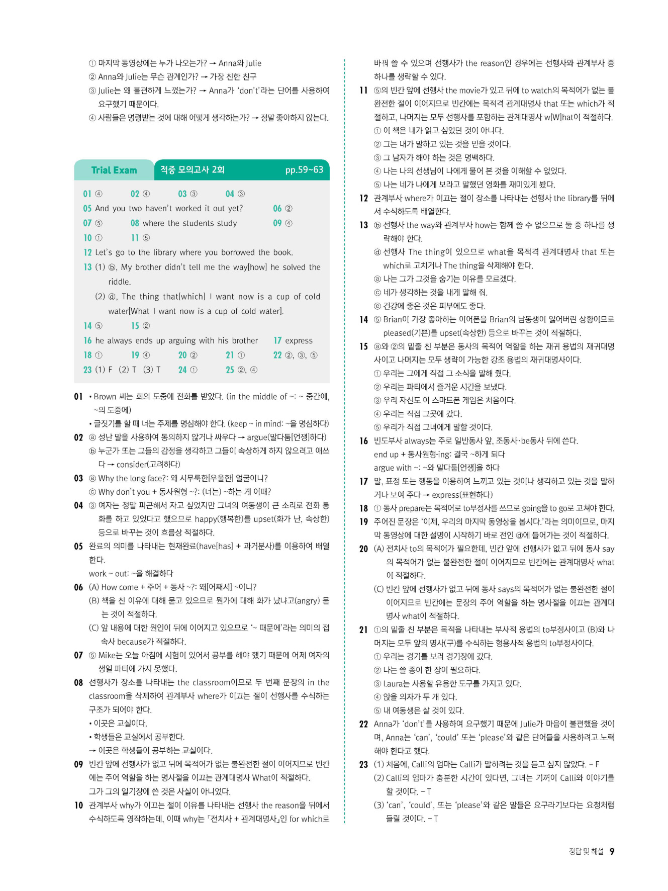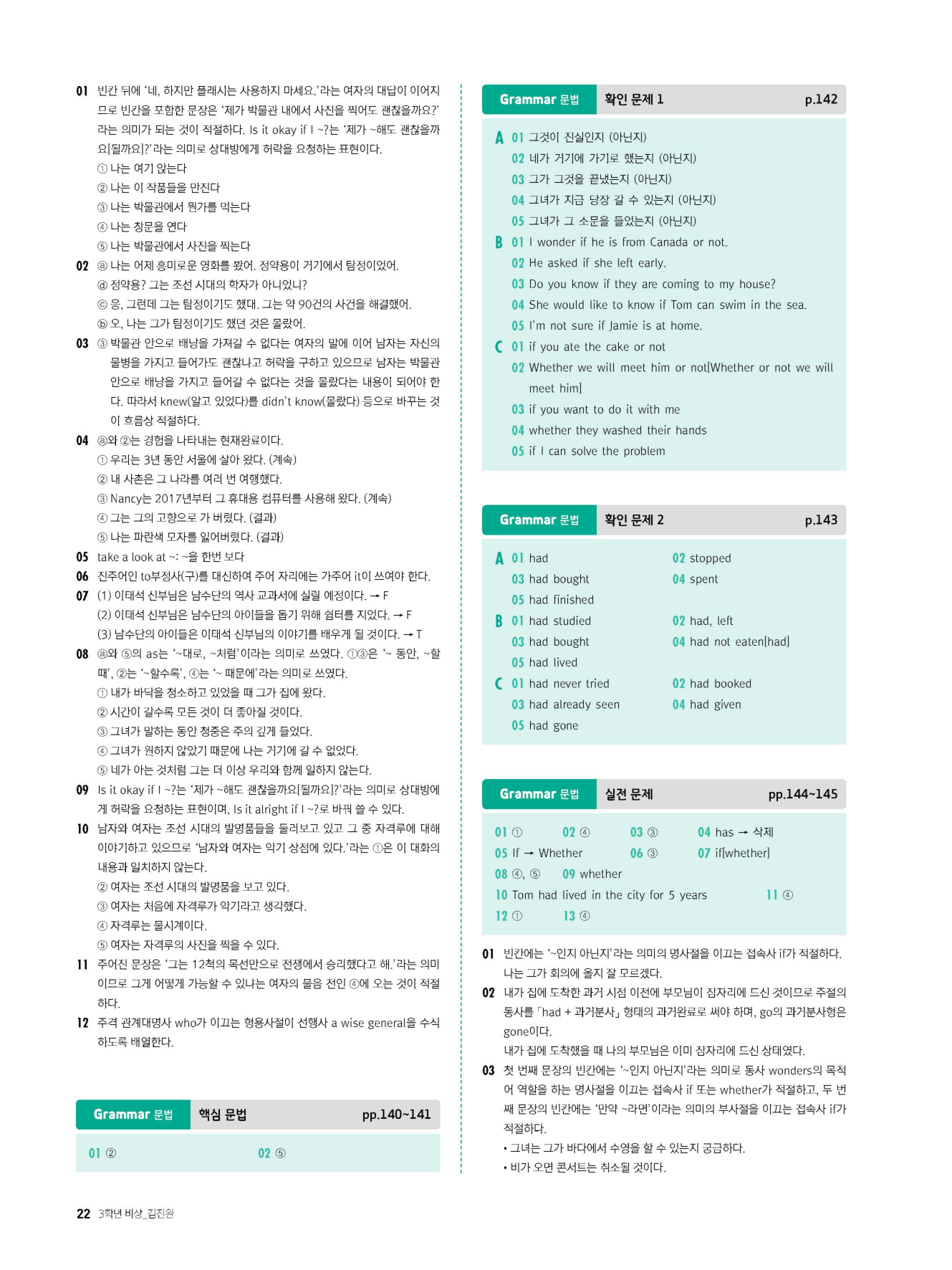 - 시험에 나올 만한 교과서 핵심 문장 복습 코너 수록