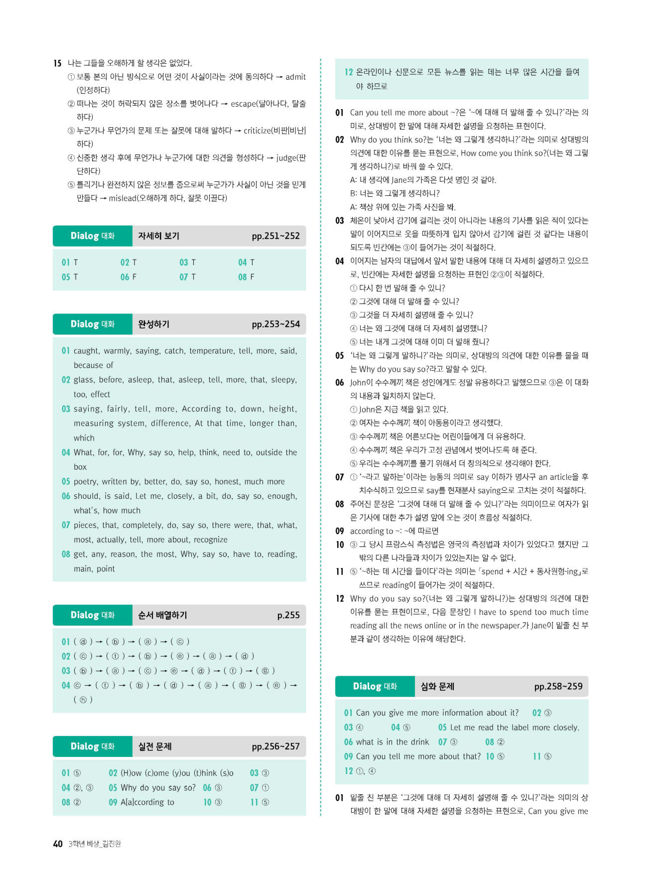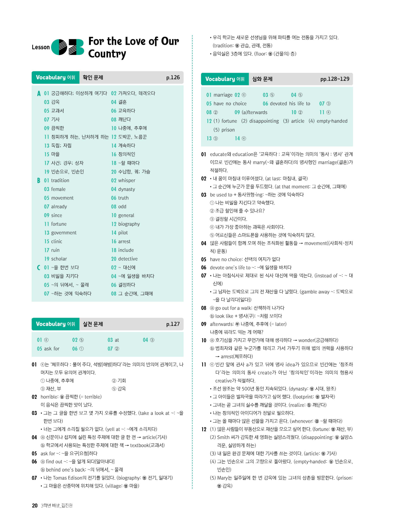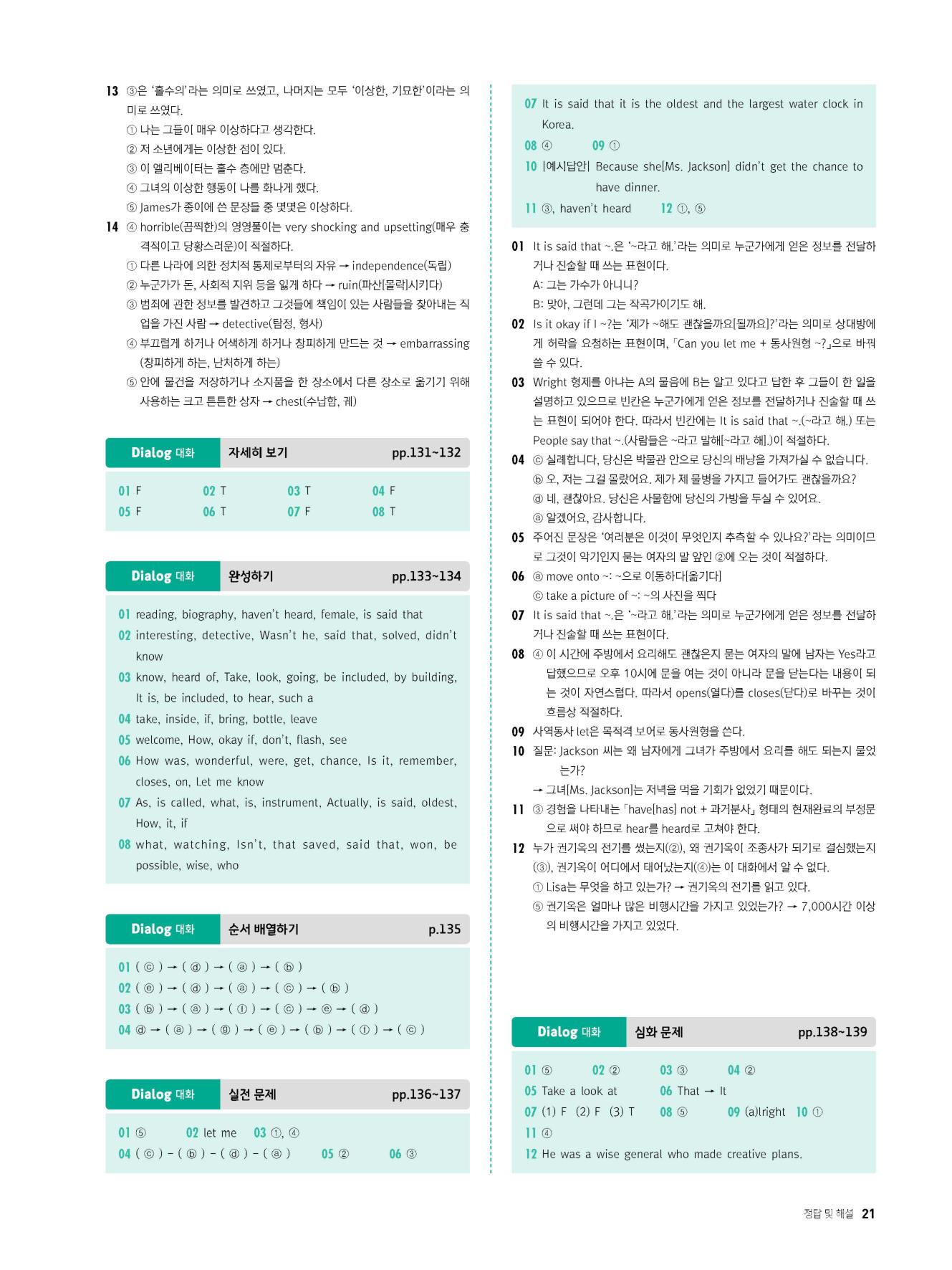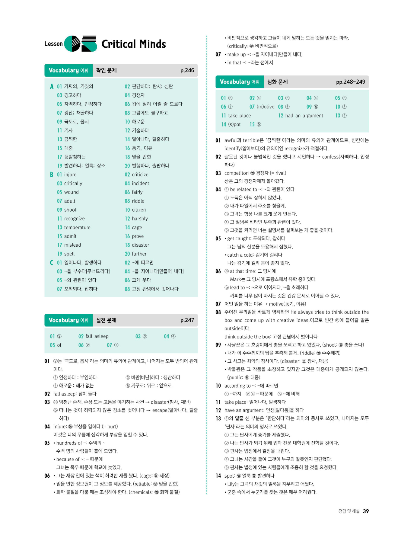 - 시험에 나올 만한 교과서 핵심 문장 복습 코너 수록
