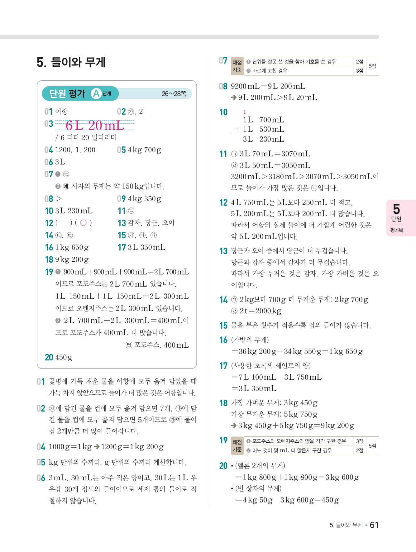 - ( 마무리 평가 ) 한 단원을 마무리하며 실력을 점검하고, 수행 평가 문제로 학교 수행 평가에 대비할 수 있습니다.