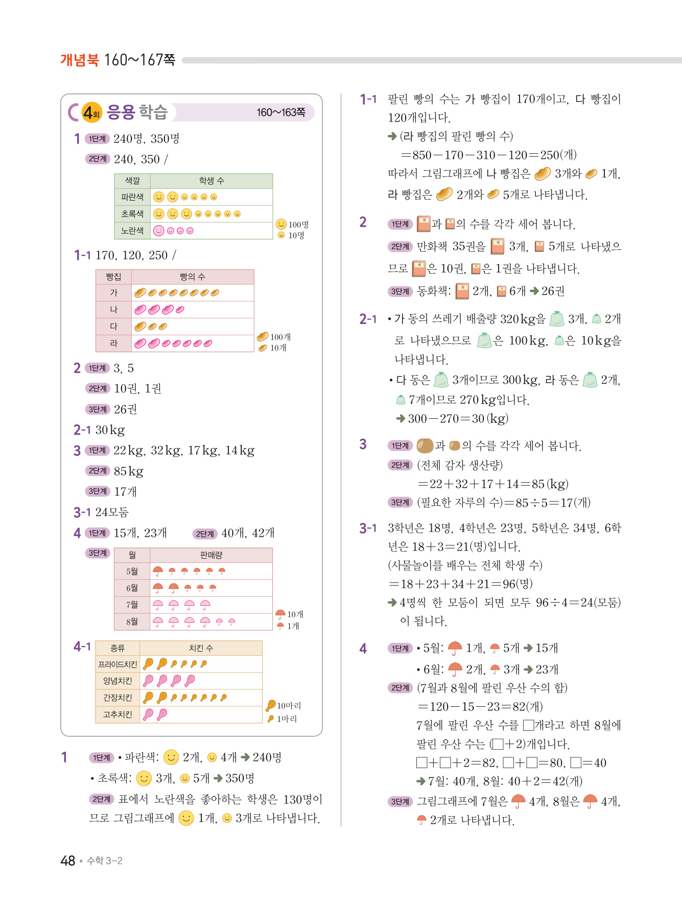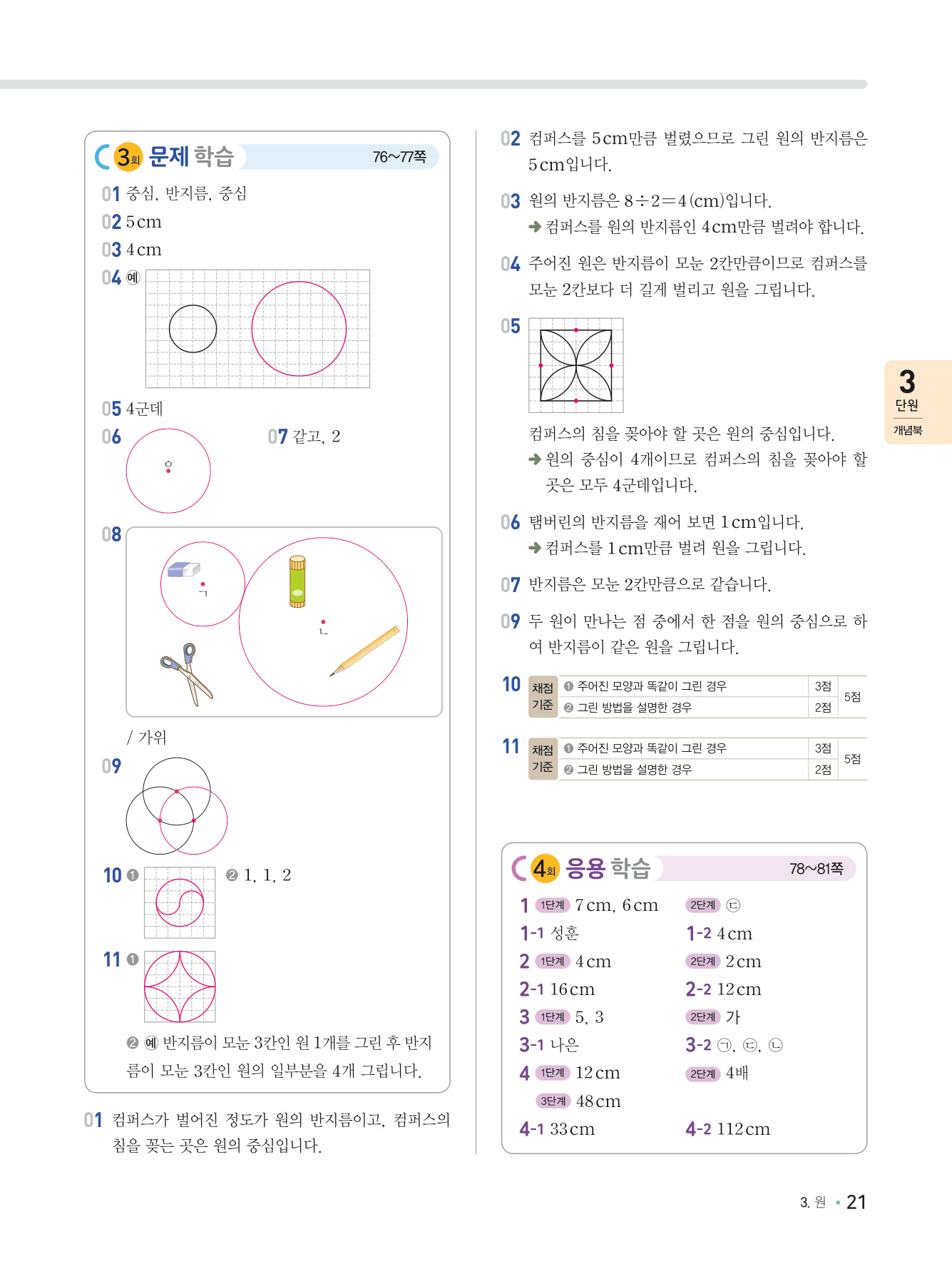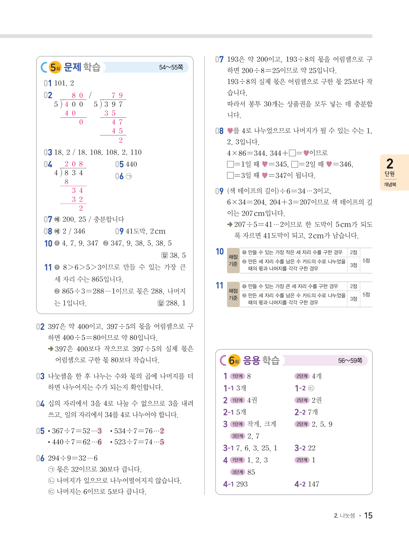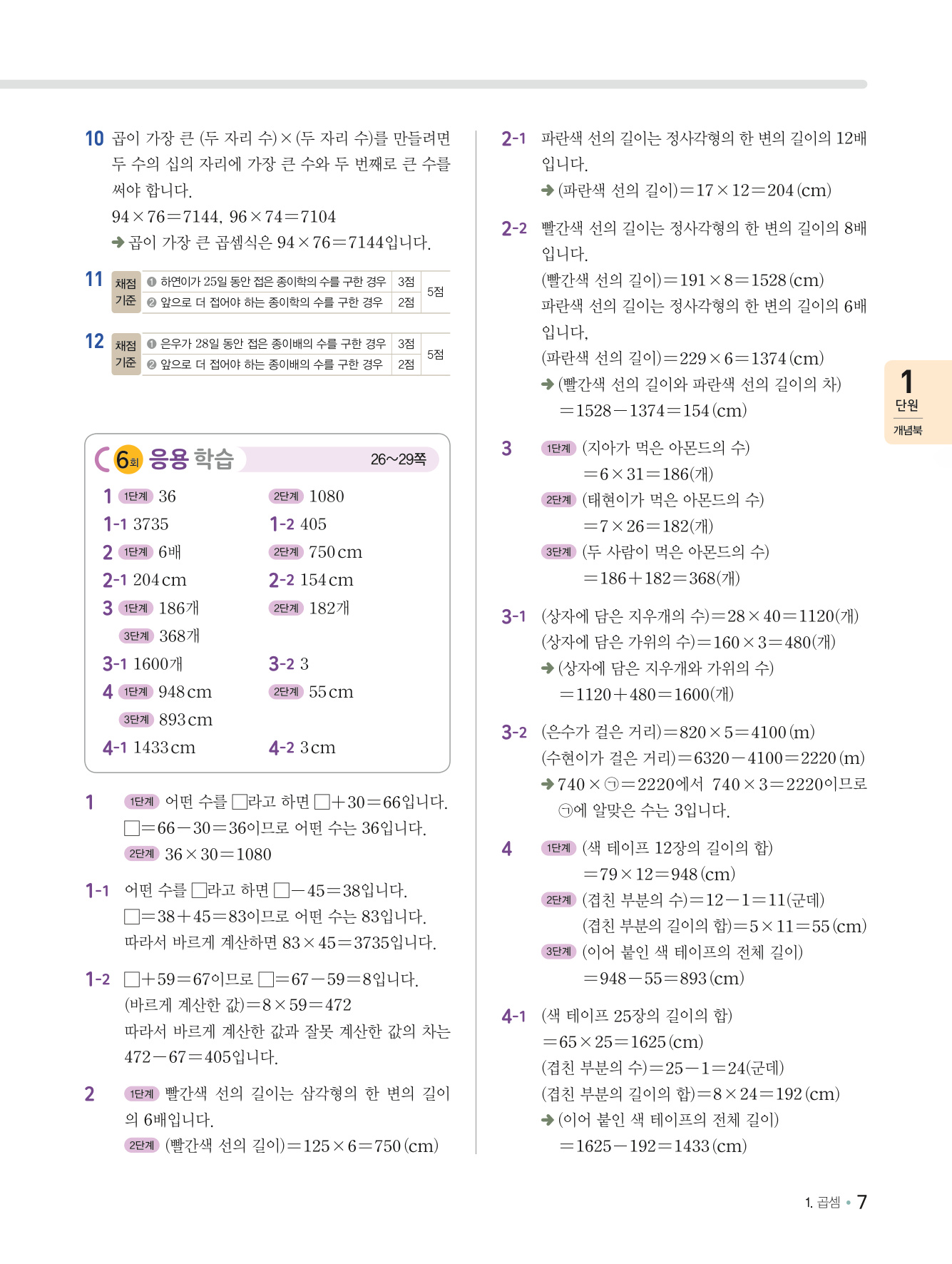 - ( 응용 학습 ) 응용 유형의 문제를 단계별 해결 순서와 문제해결 TIP을 이용하여 해결하며 응용력을 높일 수 있습니다.