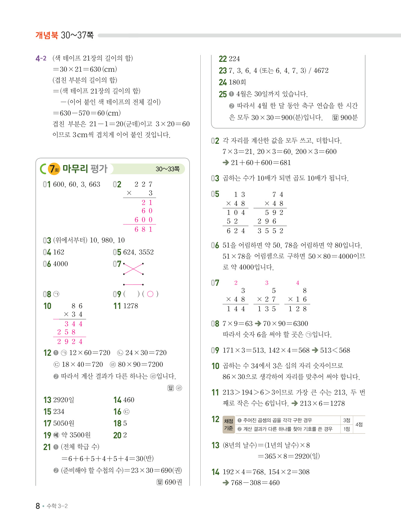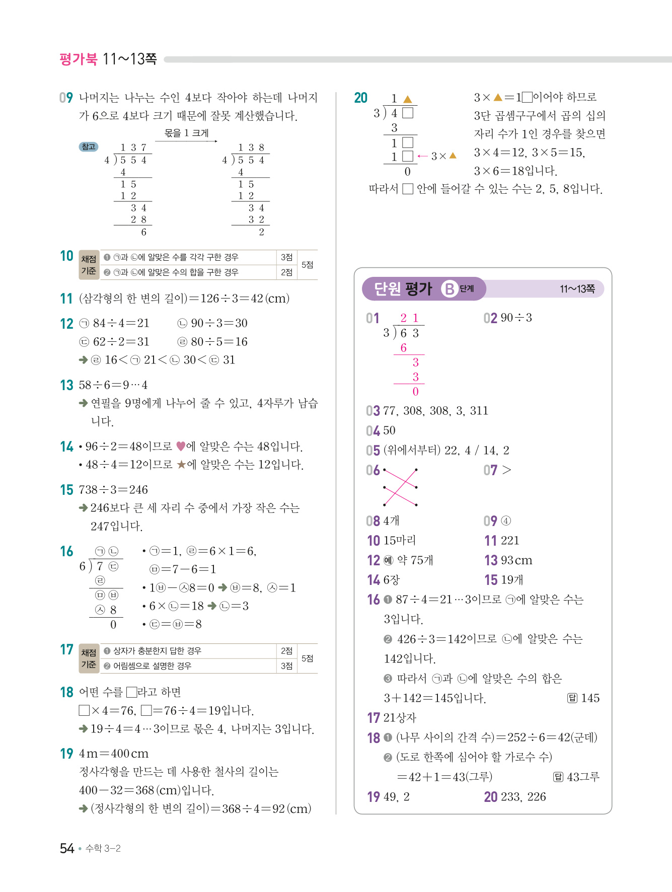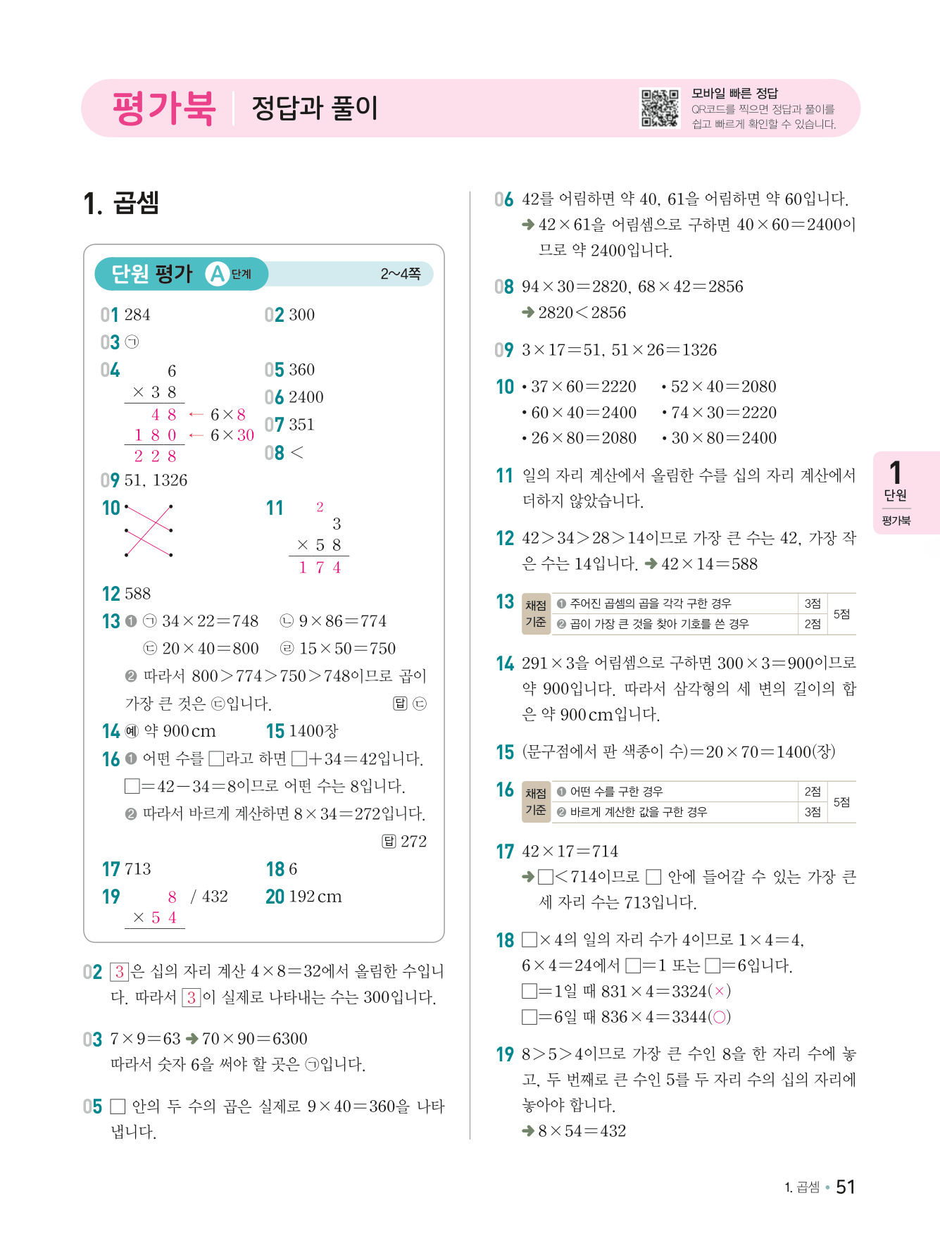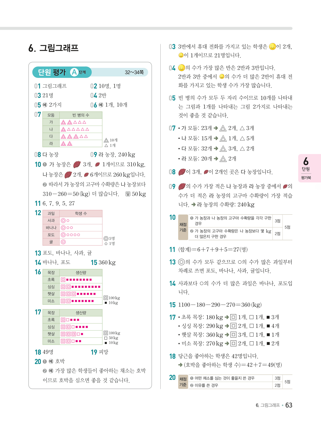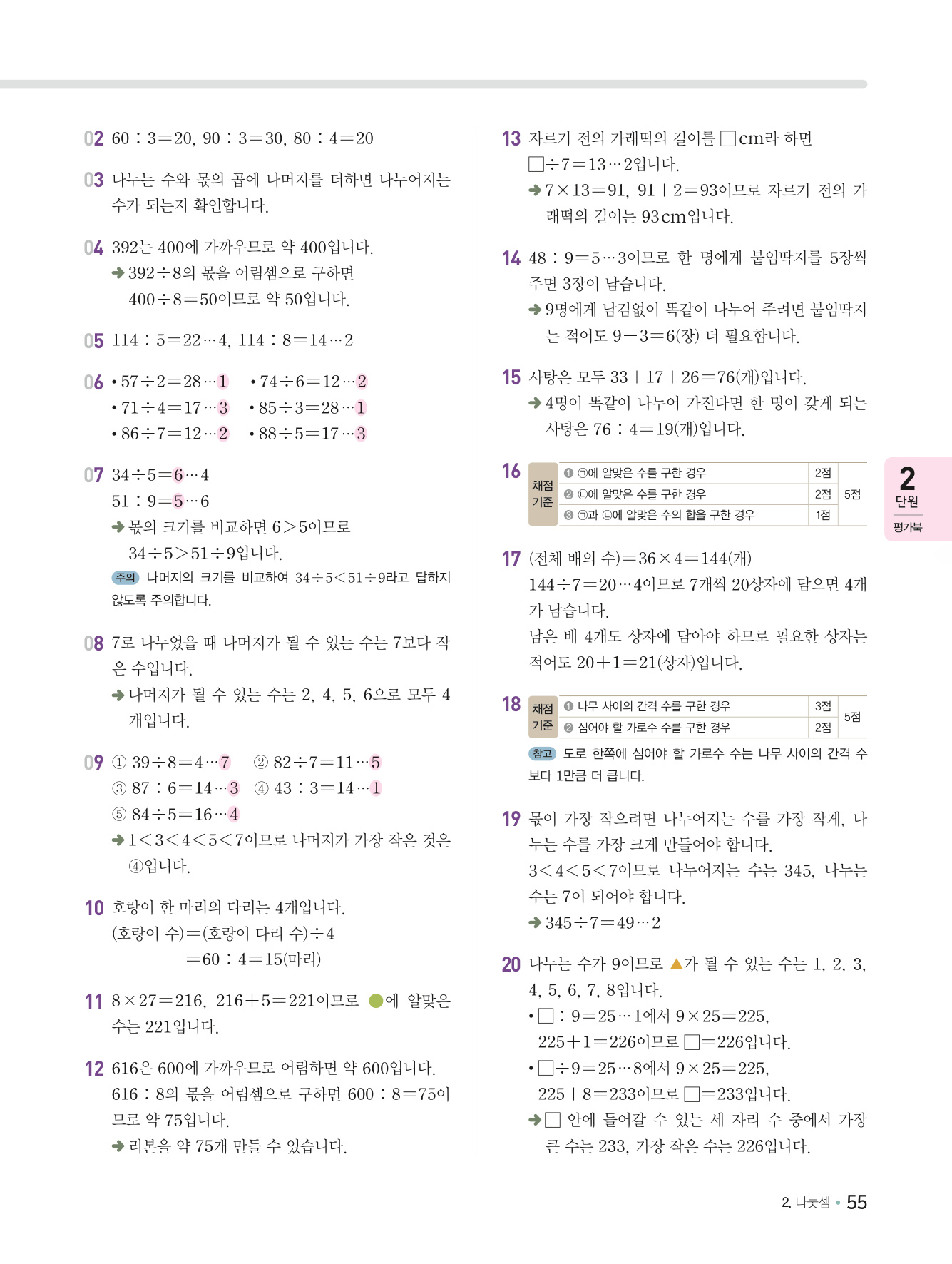 - ( 마무리 평가 ) 한 단원을 마무리하며 실력을 점검하고, 수행 평가 문제로 학교 수행 평가에 대비할 수 있습니다.