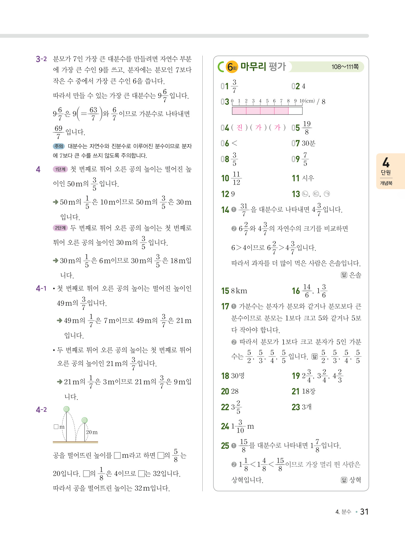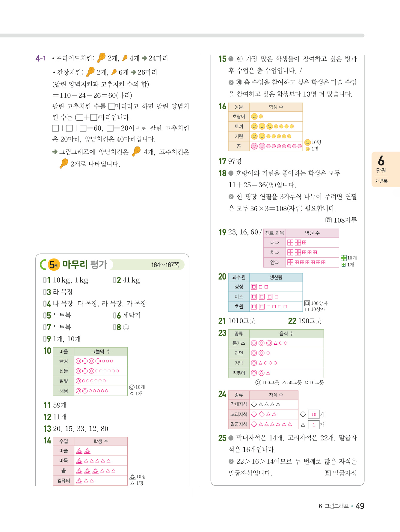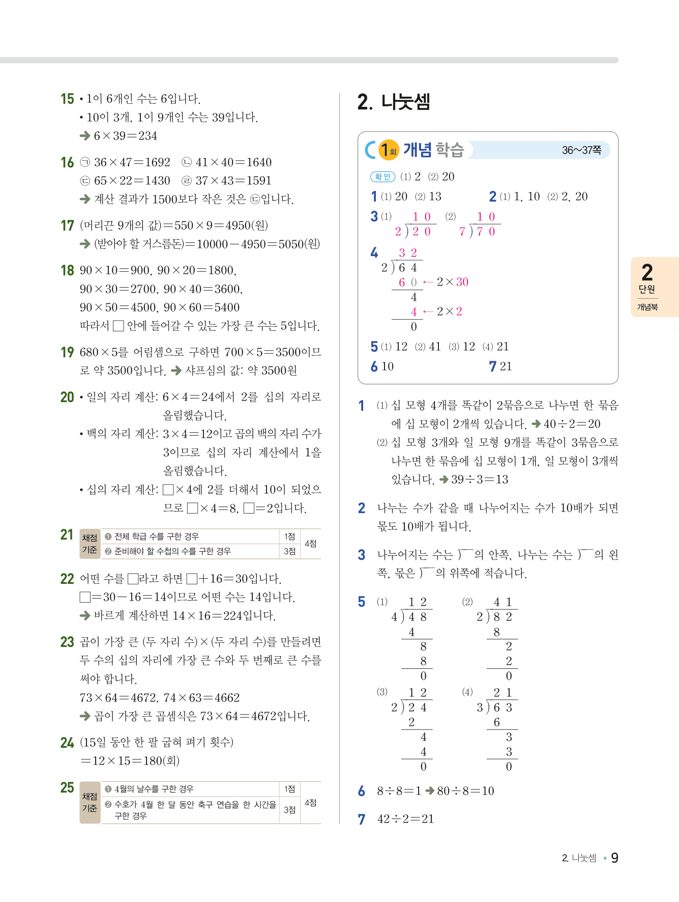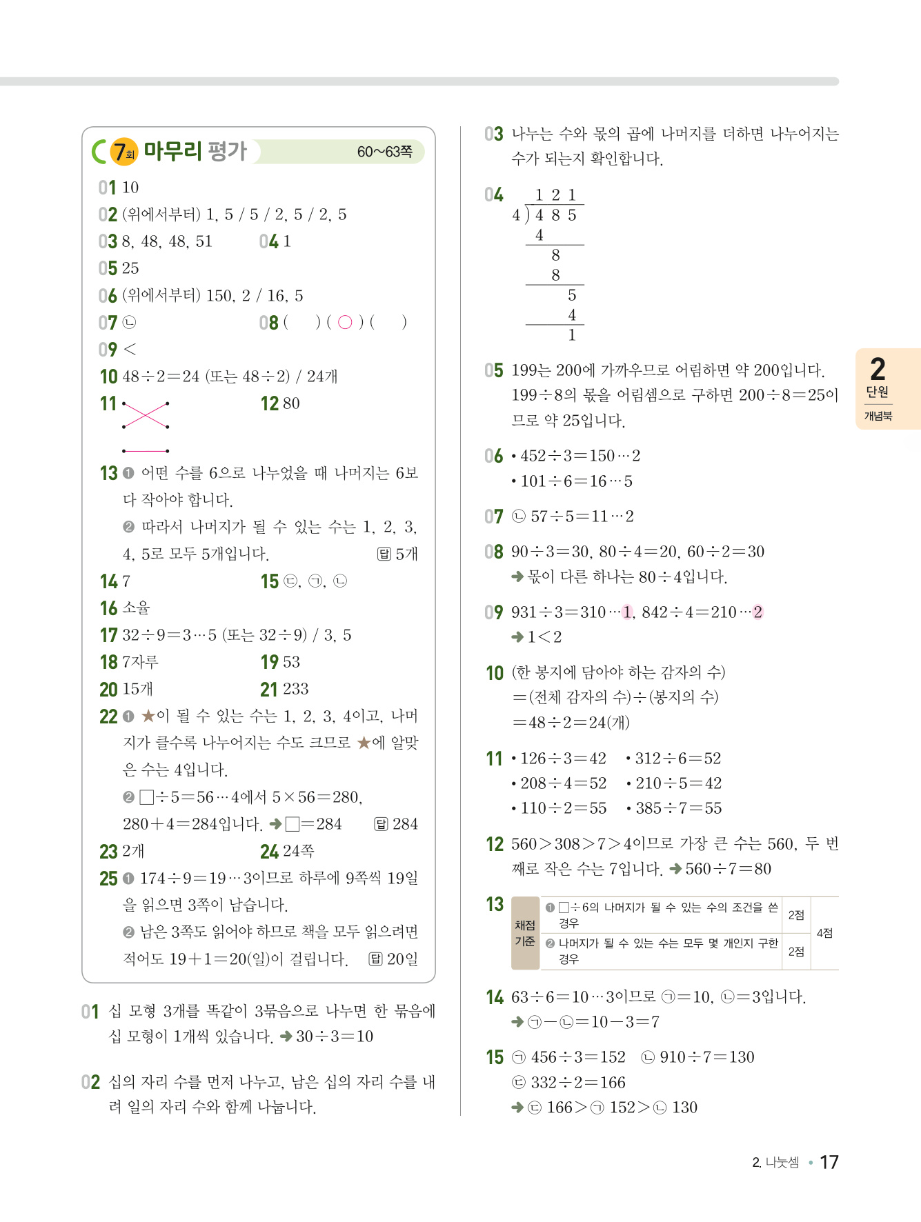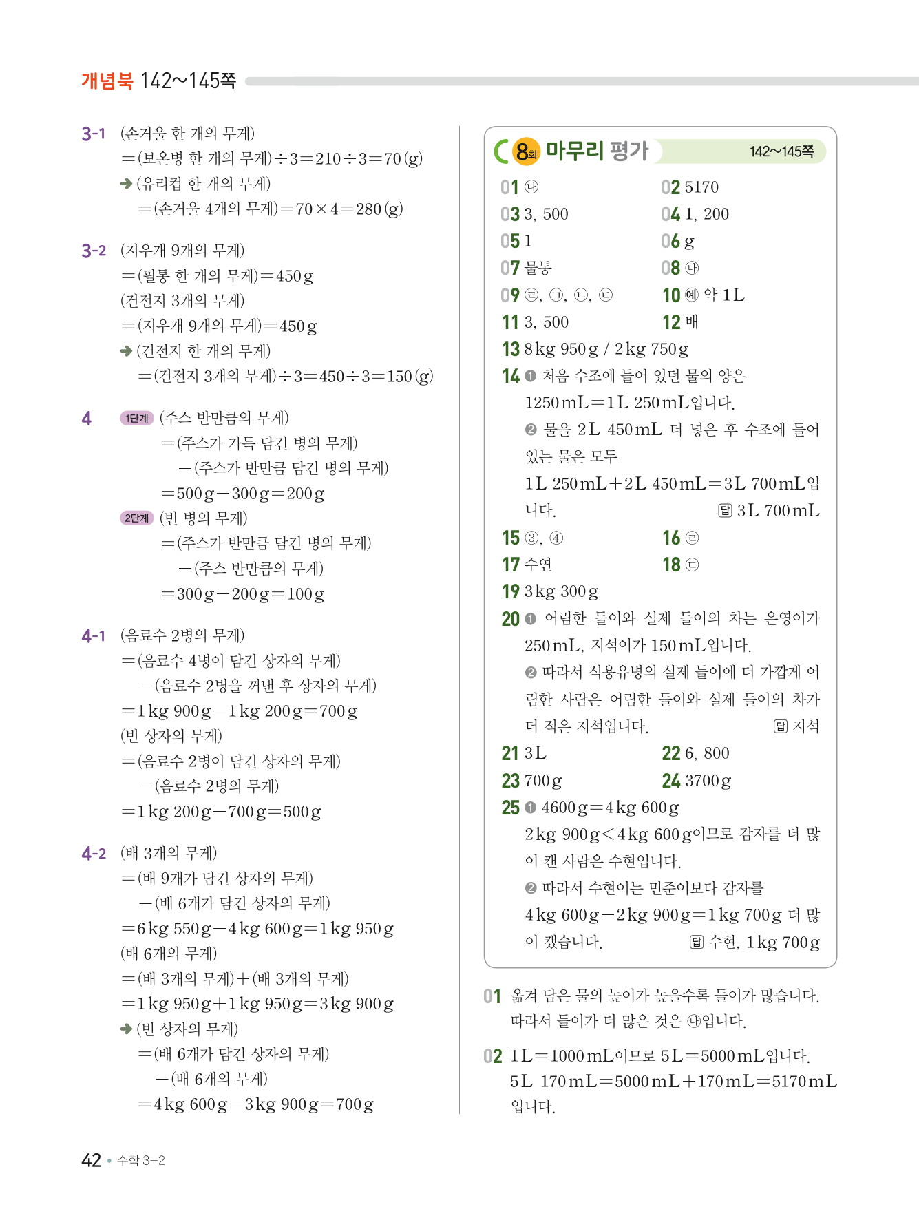 - ( 마무리 평가 ) 한 단원을 마무리하며 실력을 점검하고, 수행 평가 문제로 학교 수행 평가에 대비할 수 있습니다.