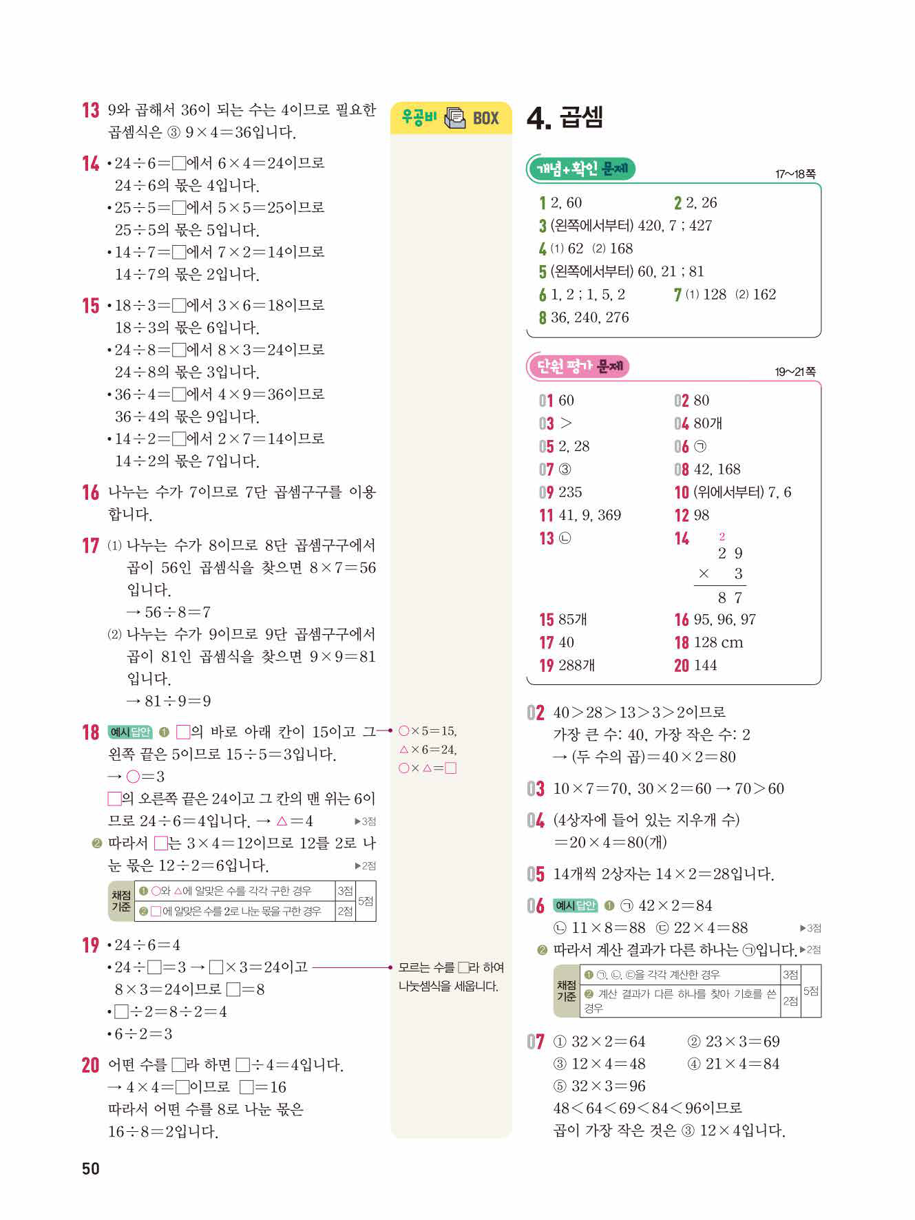 정답과 함께 자세한 풀이를 담았으며 우공비 BOX를 별도로 구성하여 풍부한 보충 설명을 제공합니다.