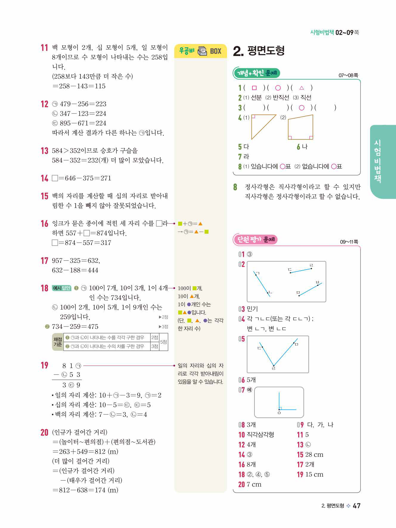 2. 실력 쌓는 비법 : 익힘책 수준의 문제와 학교 시험 문제를 집중적으로 풀면서 수학 실력을 키웁니다.