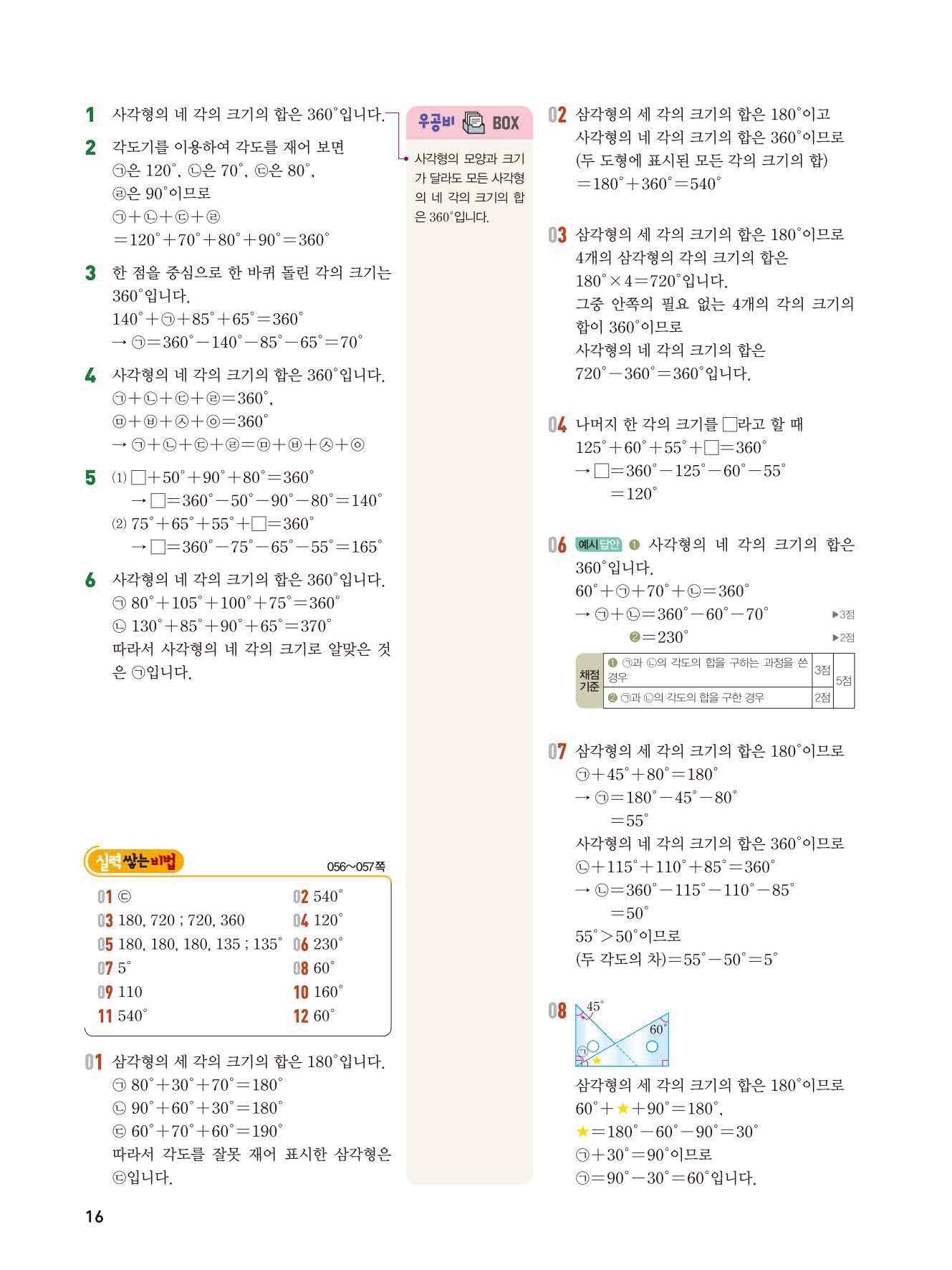 2. 실력 쌓는 비법 : 익힘책 수준의 문제와 학교 시험 문제를 집중적으로 풀면서 수학 실력을 키웁니다.