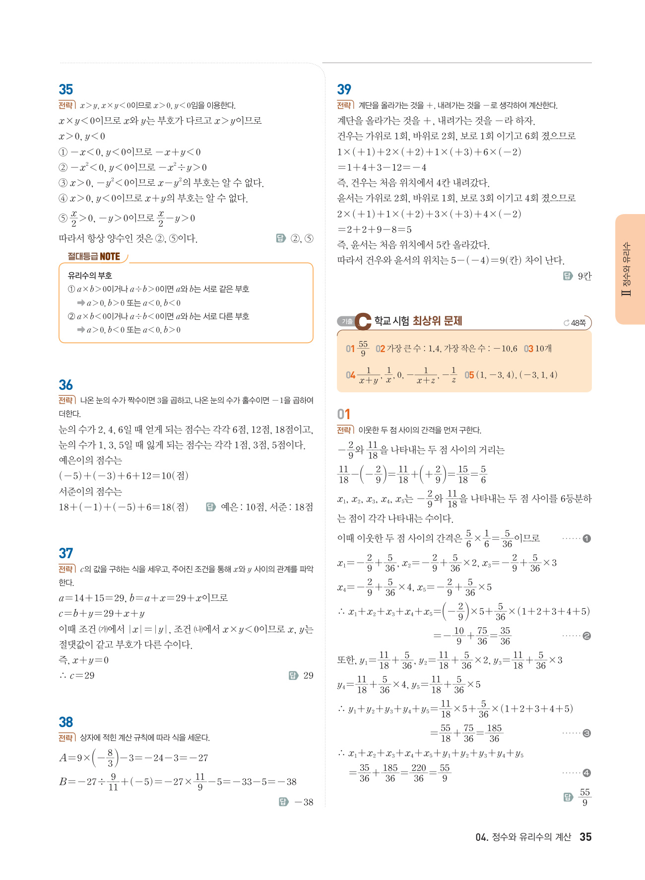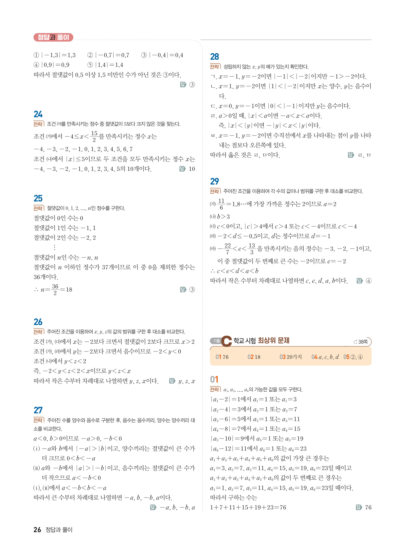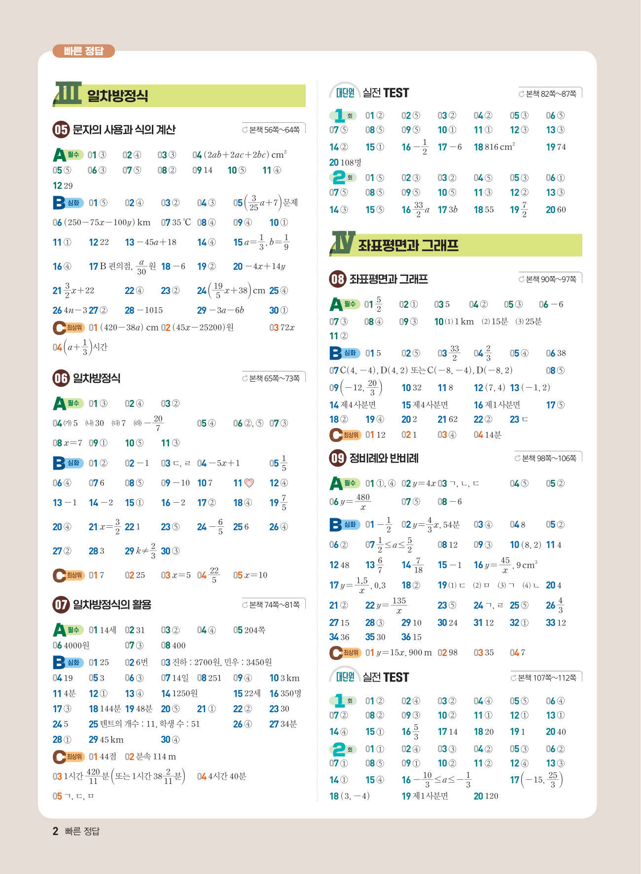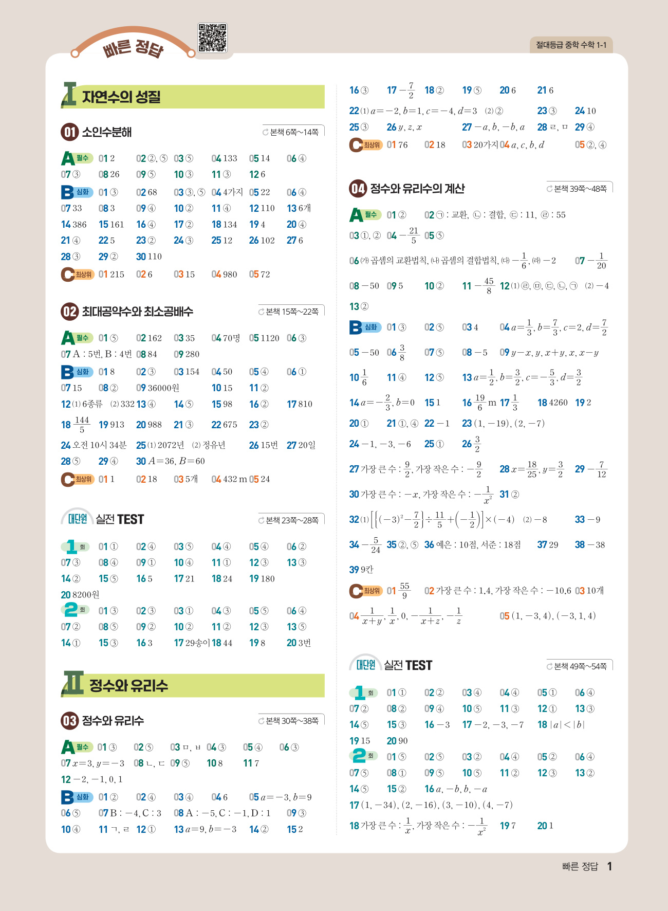 중단원별로 꼭 알아야 할 핵심 개념과 전국 중학교 시험 문제 중에서 개념별 필수 문제를 선별하였습니다.