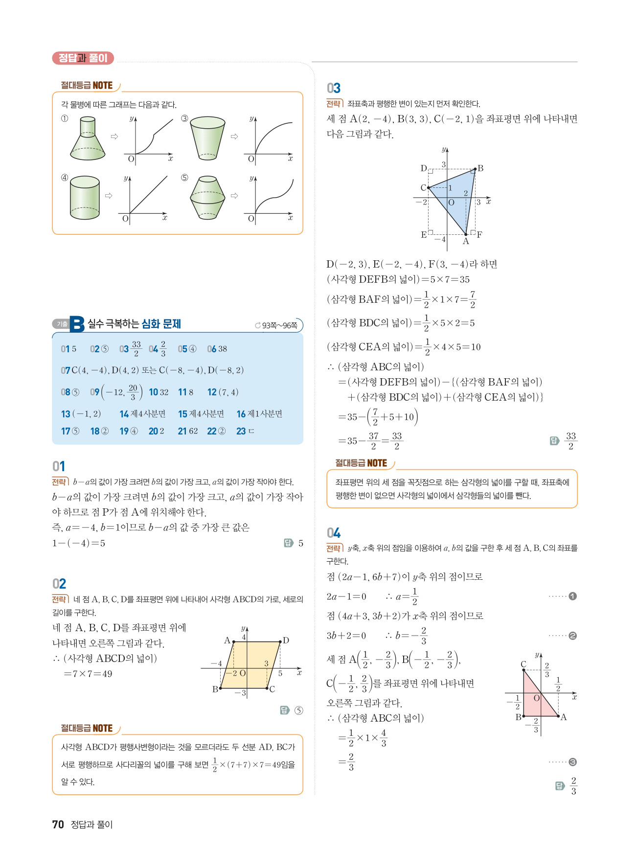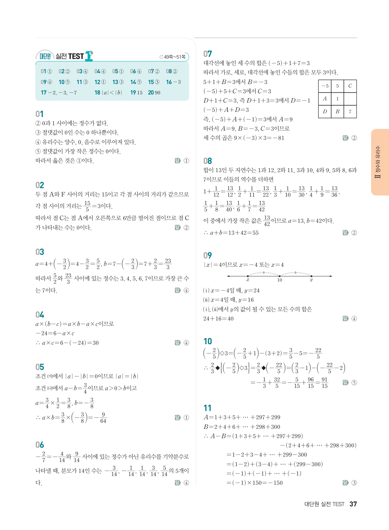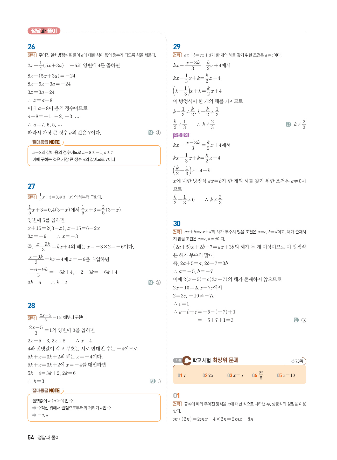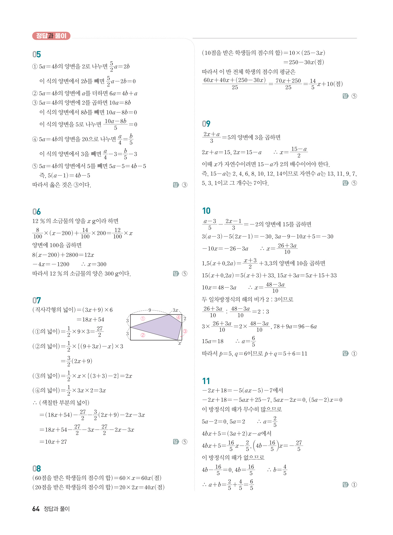 중단원별로 꼭 알아야 할 핵심 개념과 전국 중학교 시험 문제 중에서 개념별 필수 문제를 선별하였습니다.